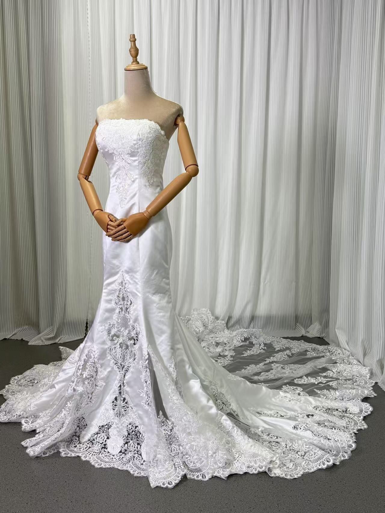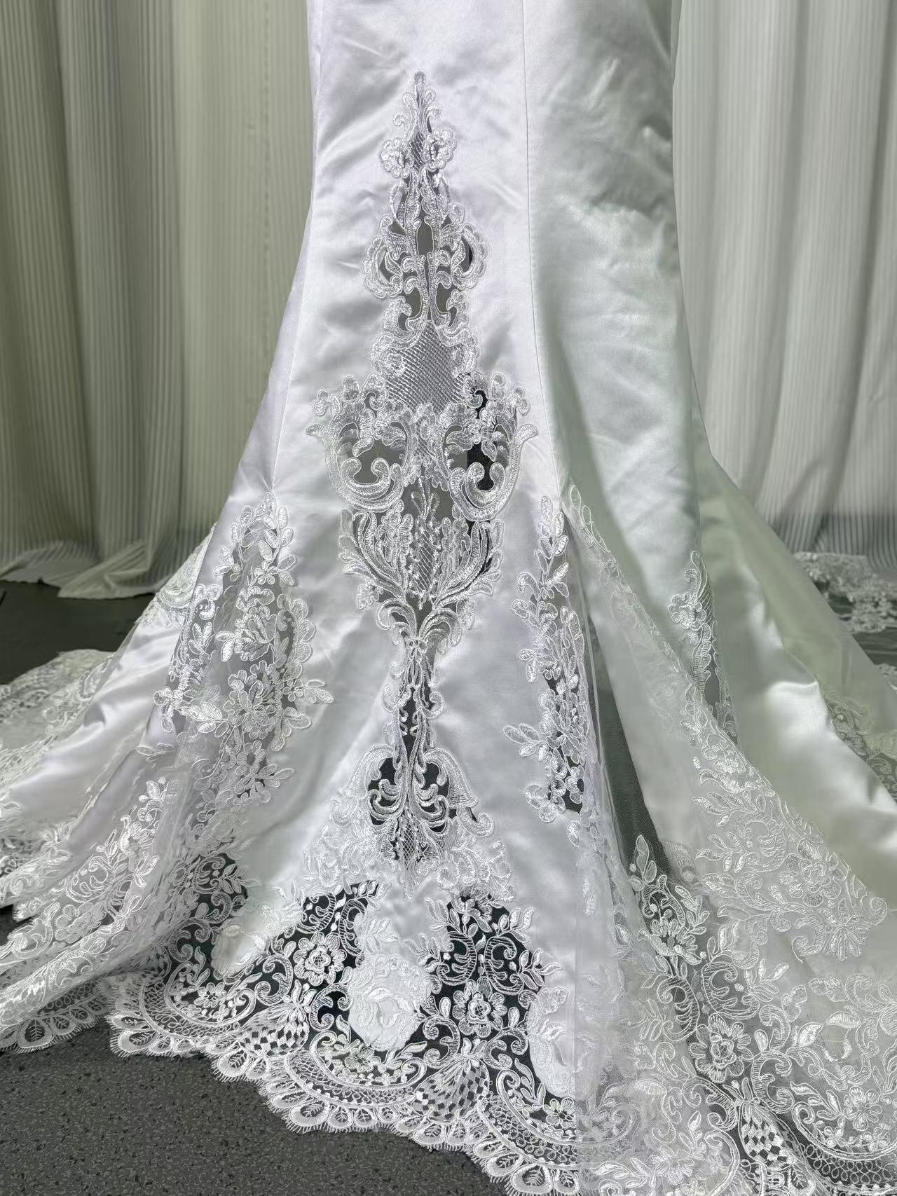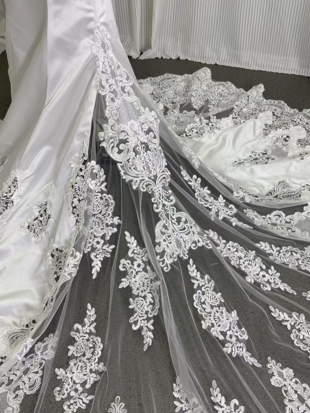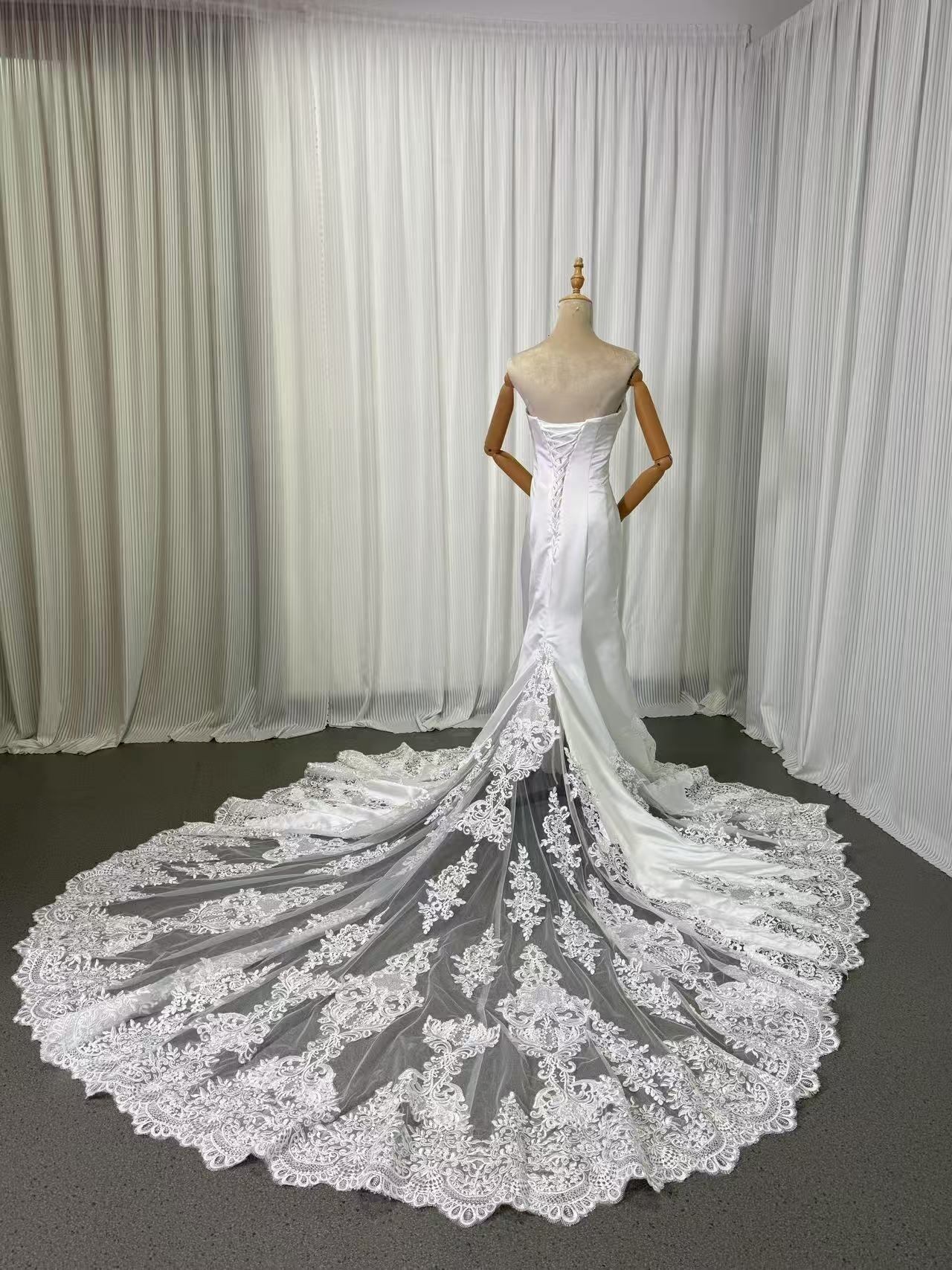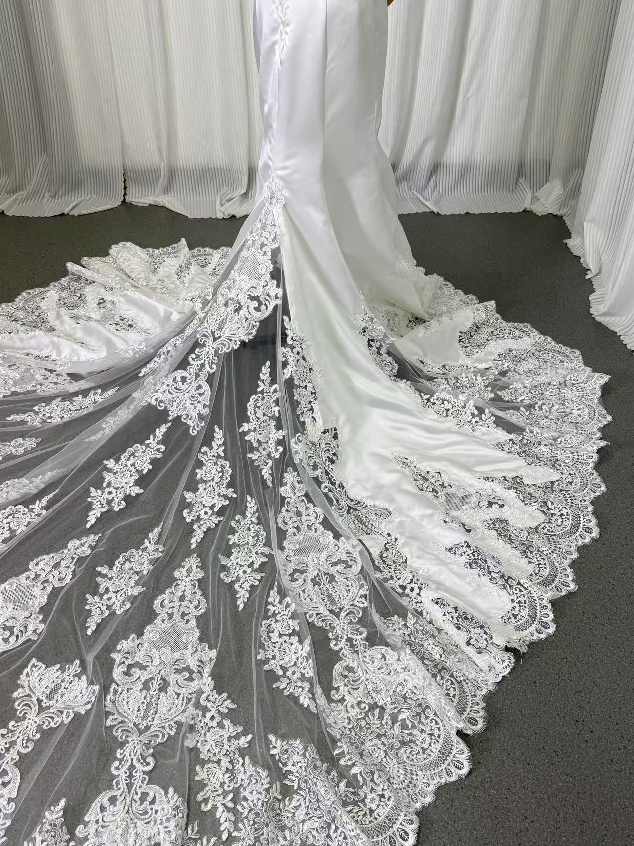 実例写真 ! 輝きな光彩を放つ 咲き誇る透け花レース ウエディングドレス ソフトマーメイドライン 華やかなトレーンビジュードレス 結婚式 前撮り 披露宴