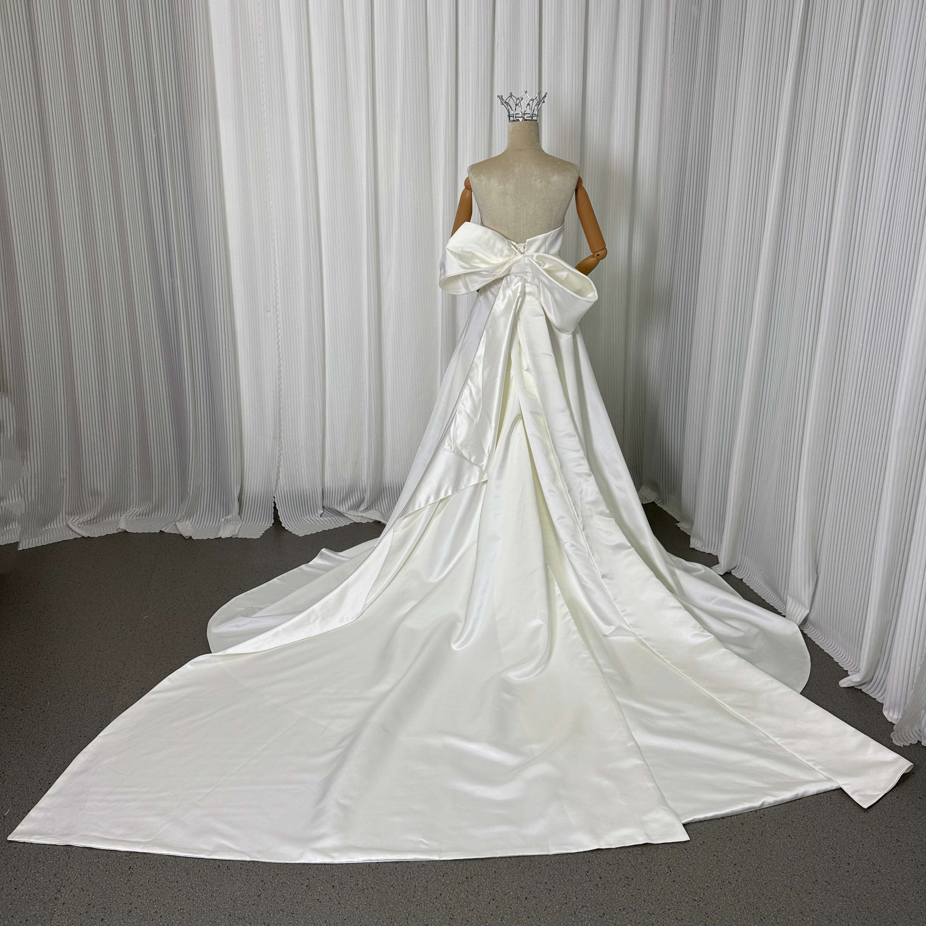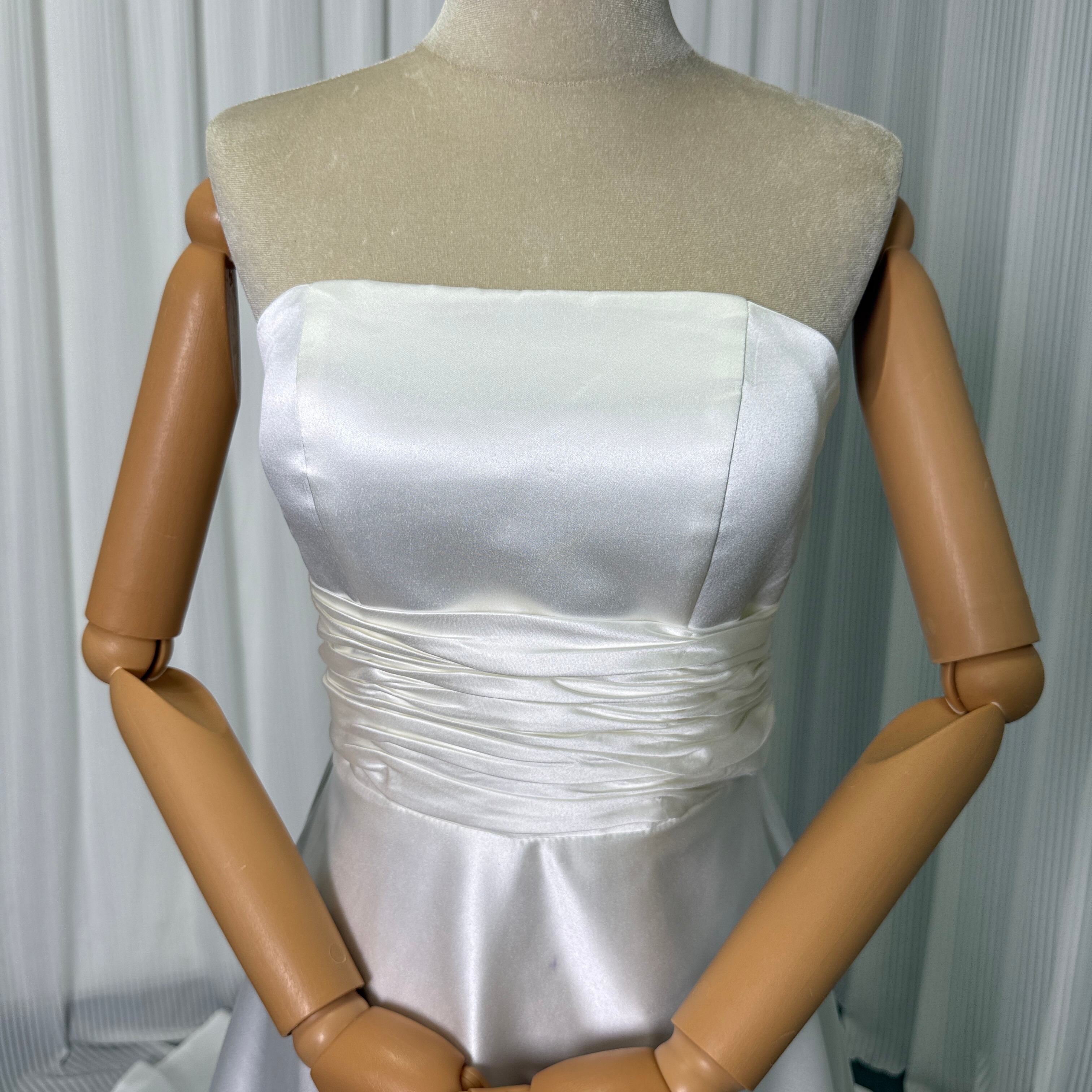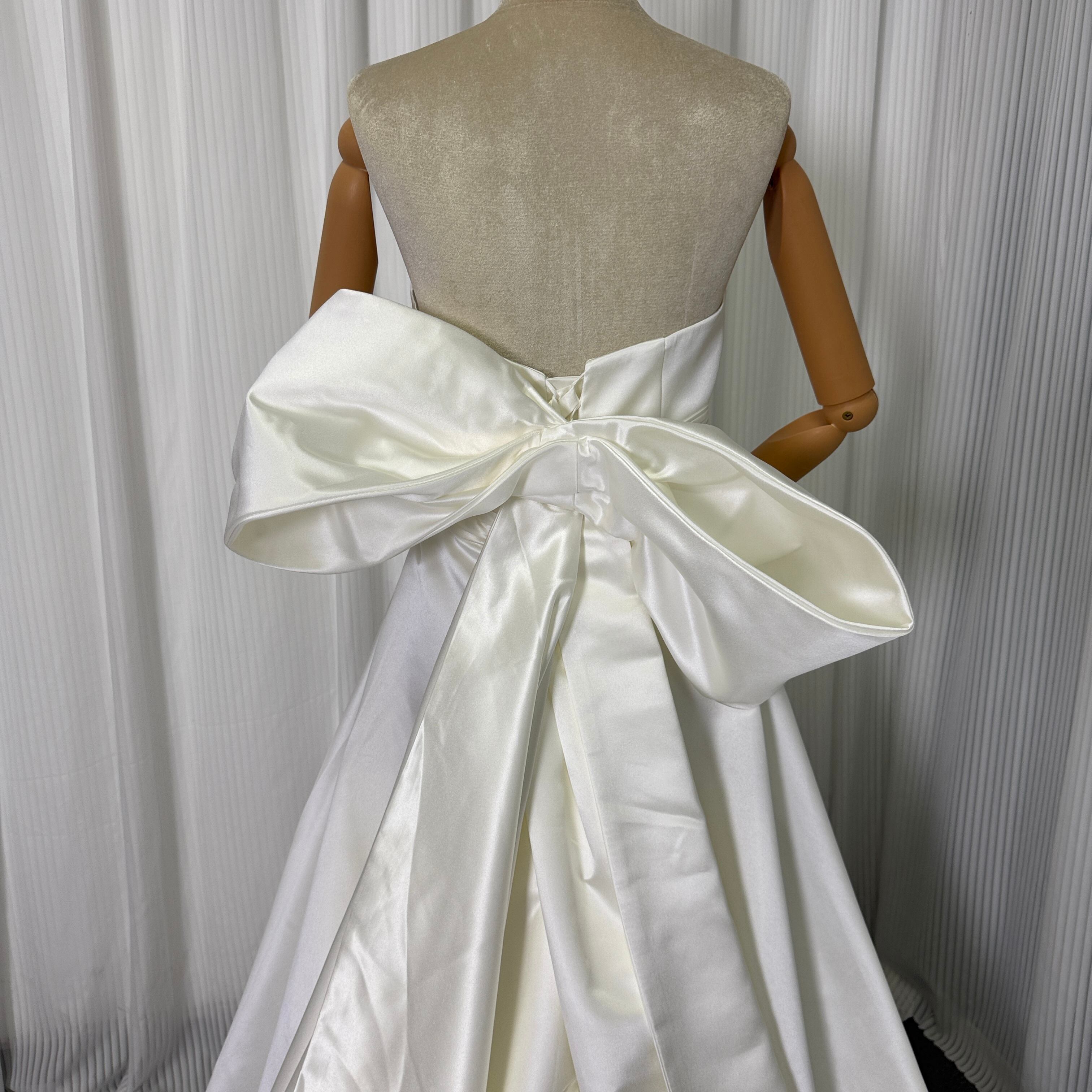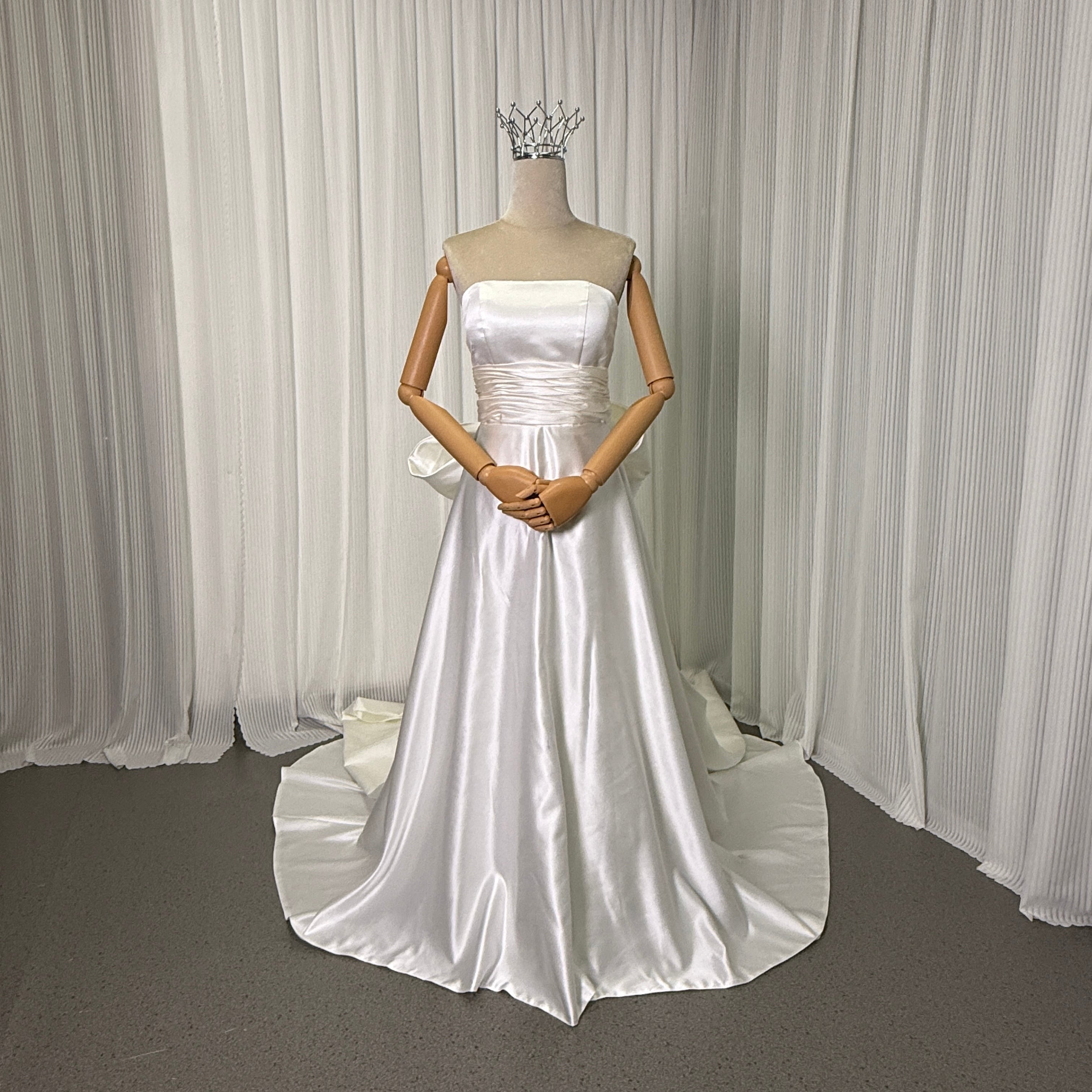 豪華! ベアトップ ウエディングドレス ふっくら柔らかなバックリボン 華やかなトレーン 花嫁/結婚式/披露宴/