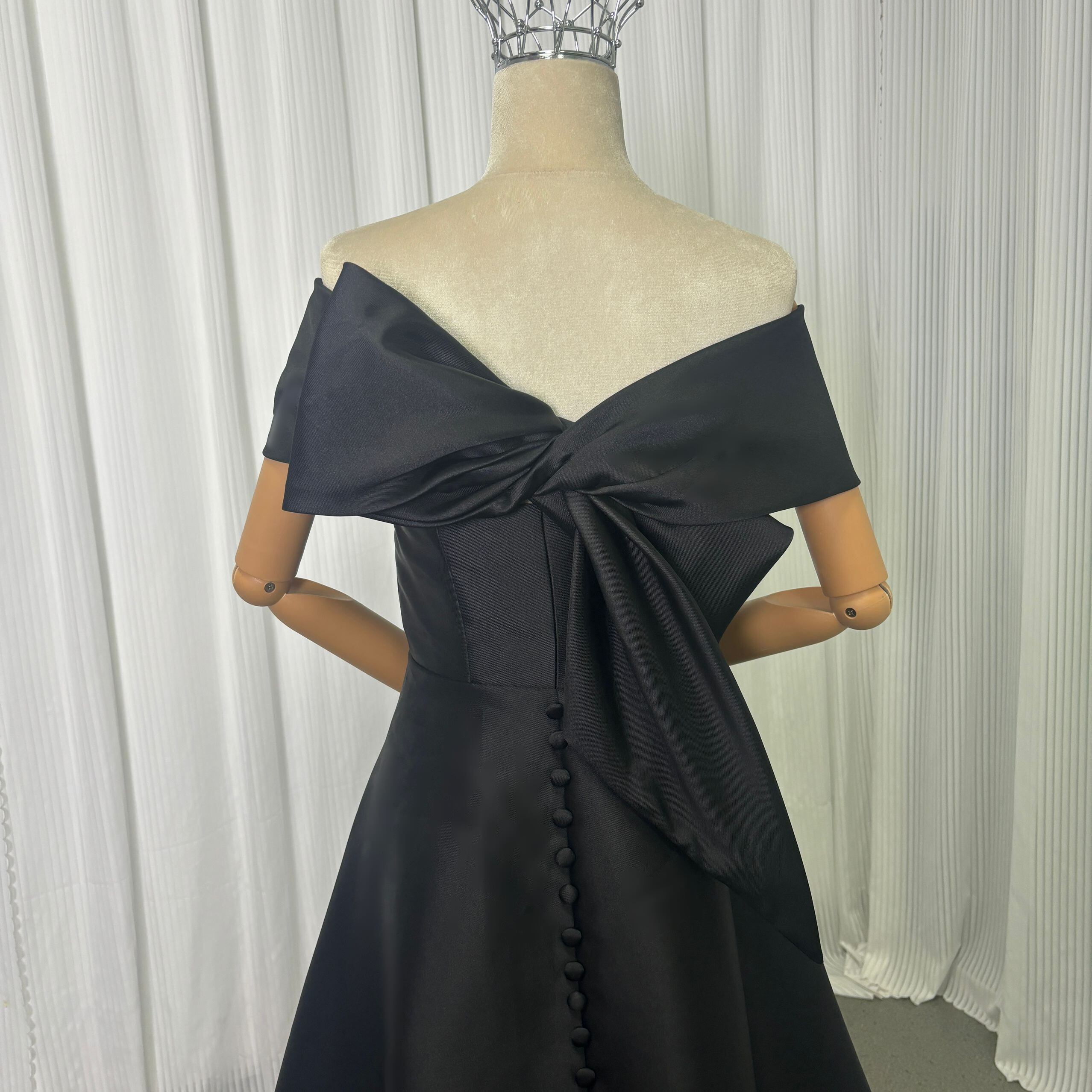 豪華! 黒 カラードレス ミカドサテン ふっくら柔らかなバックリボン 華やかなトレーン 花嫁/結婚式/披露宴/