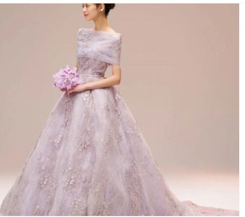 上品 紫 取り外しオフショルダー カラードレス ソフトチュール プリンセスライン 2次会 花嫁 挙式