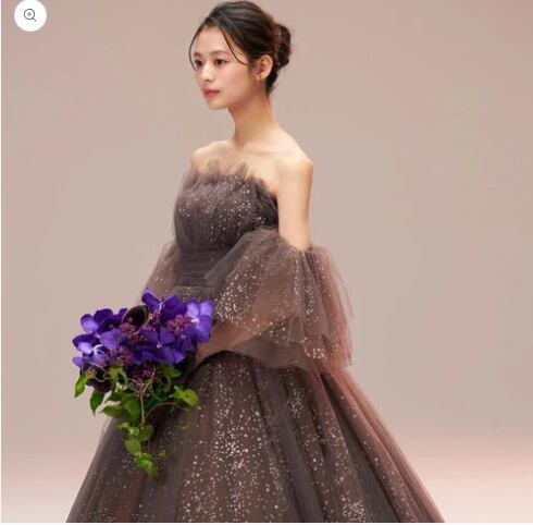 上品 コーヒーの色 取り外しオフショルダー カラードレス ソフトチュール プリンセスライン 2次会 花嫁 挙式