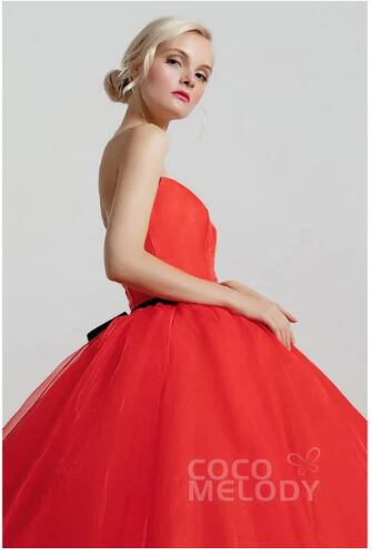人気上昇!赤 ベアトップ 光沢サテン カラードレスふっくら柔らかなバックリボン プリンセスライン 2次会 花嫁 挙式