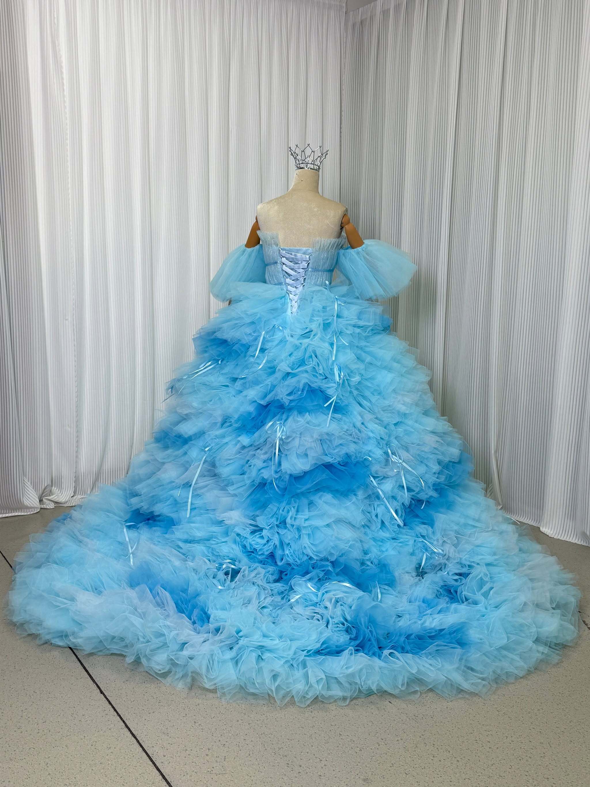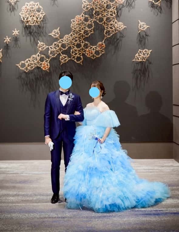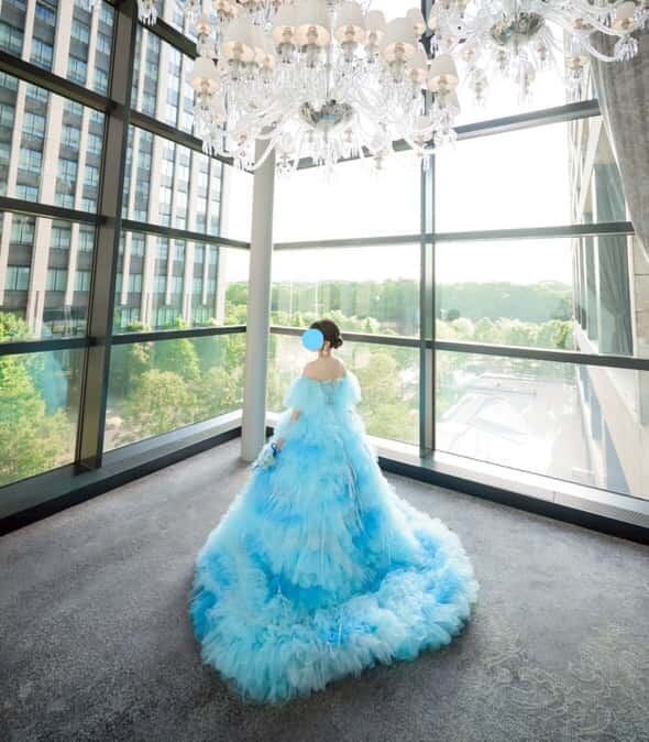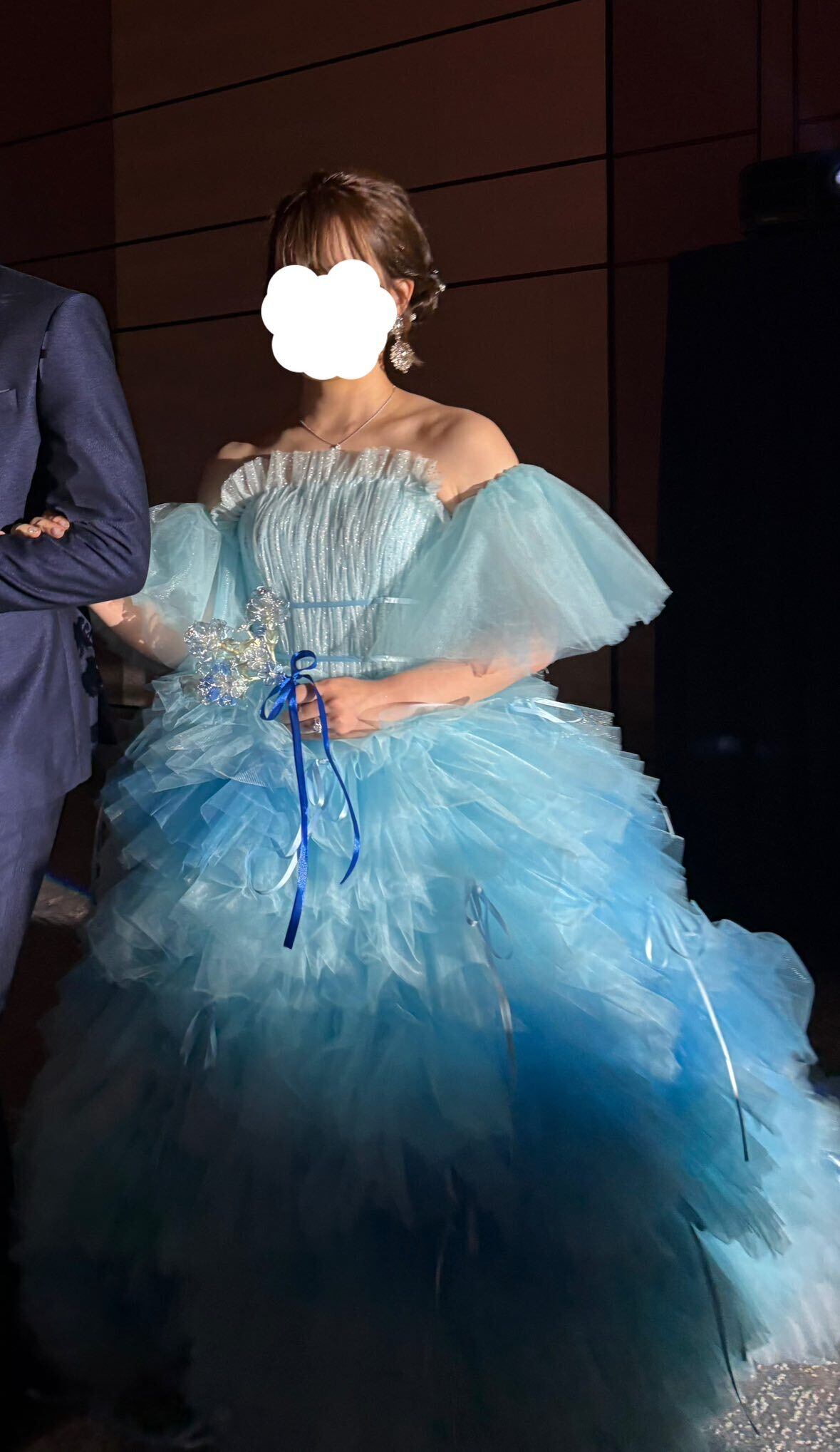 実例写真 !爽やかで優しいブルー カラードレス ソフトチュール もこもこドレス 素チュール/二次会/挙式/前撮り/結婚式2次会 花嫁 挙式