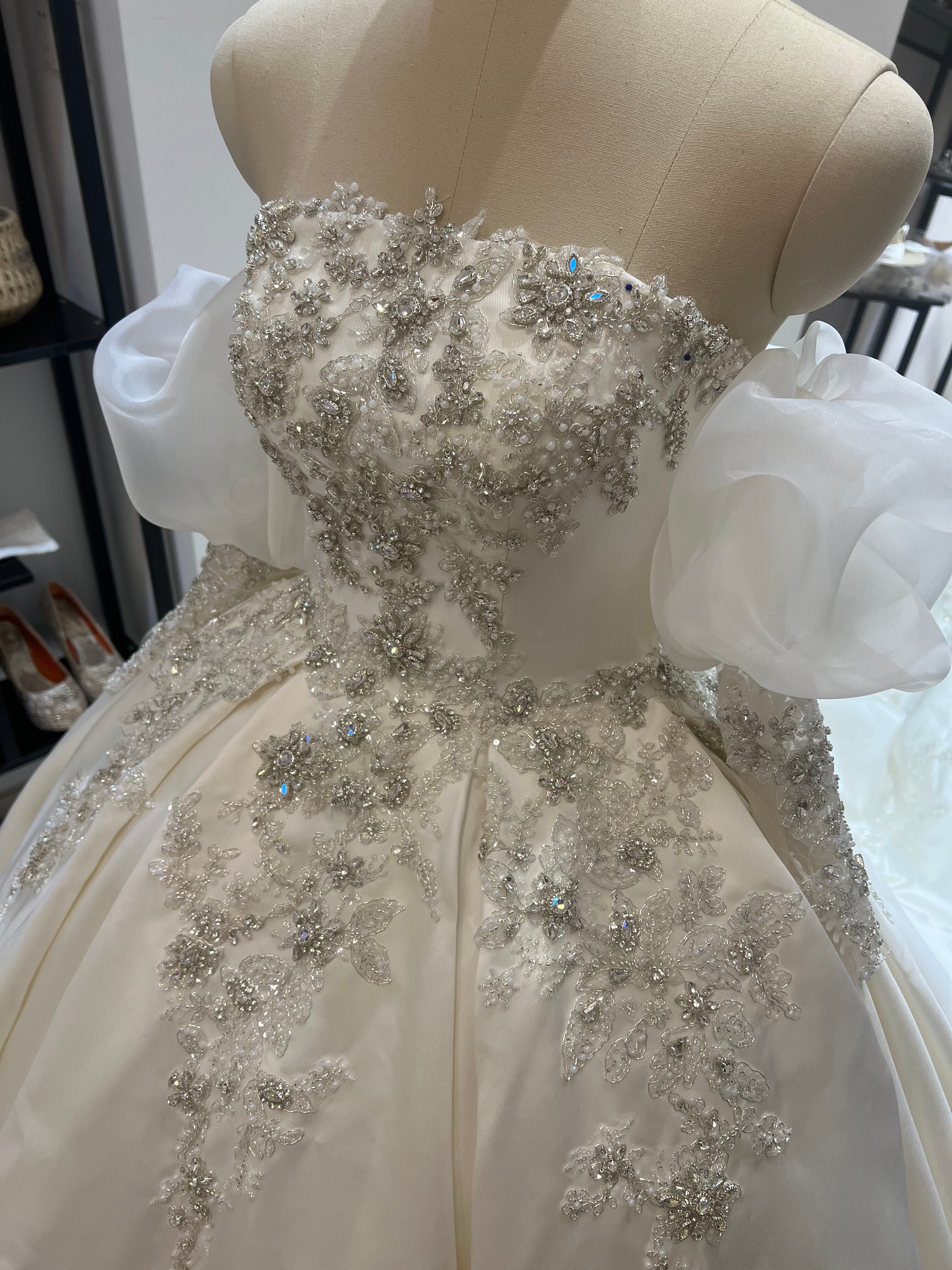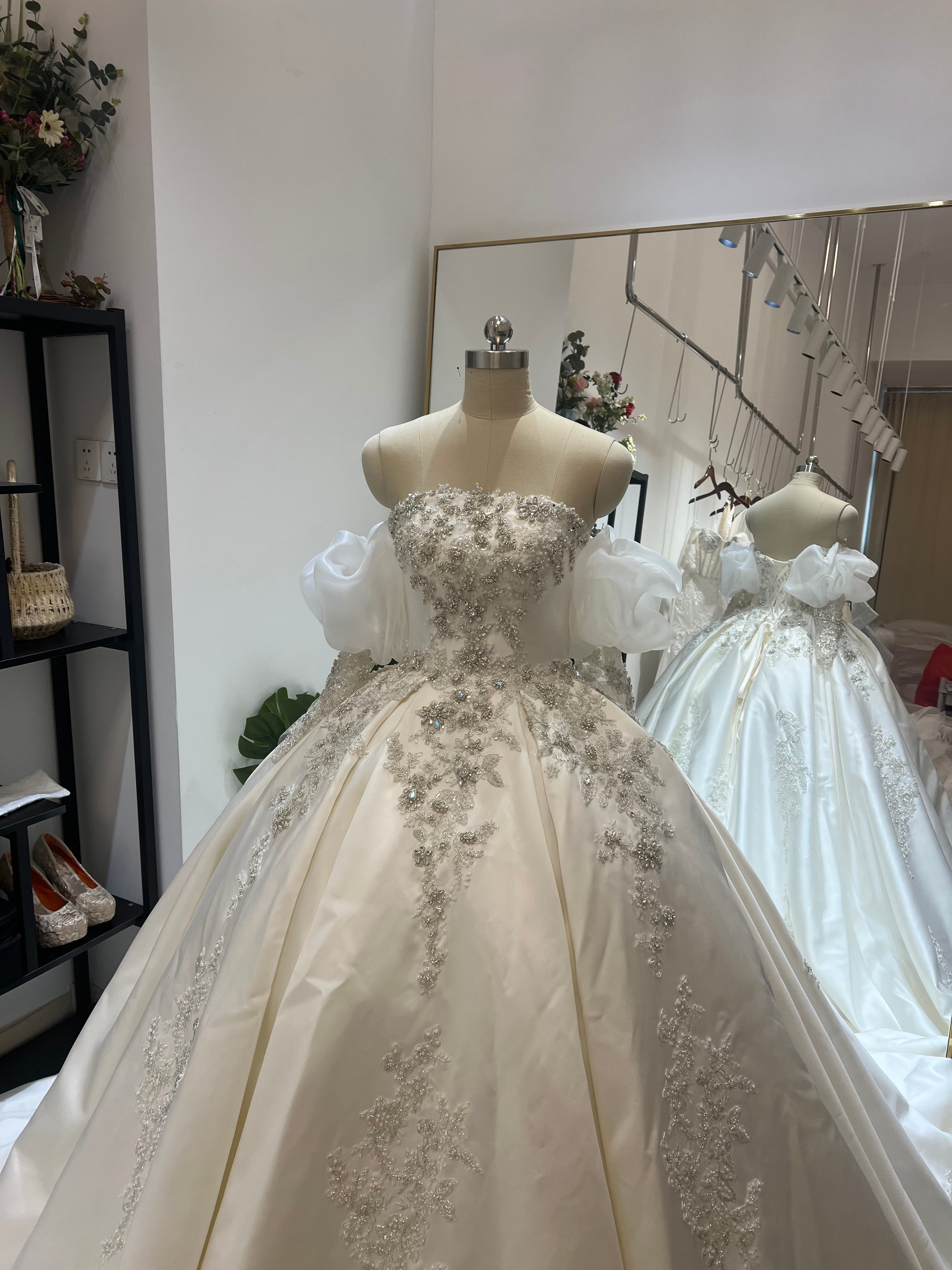 韓国風キラキラウエディングドレス ビジュードレス グリッターチュール キラキラ刺繍 結婚式 前撮り 披露宴