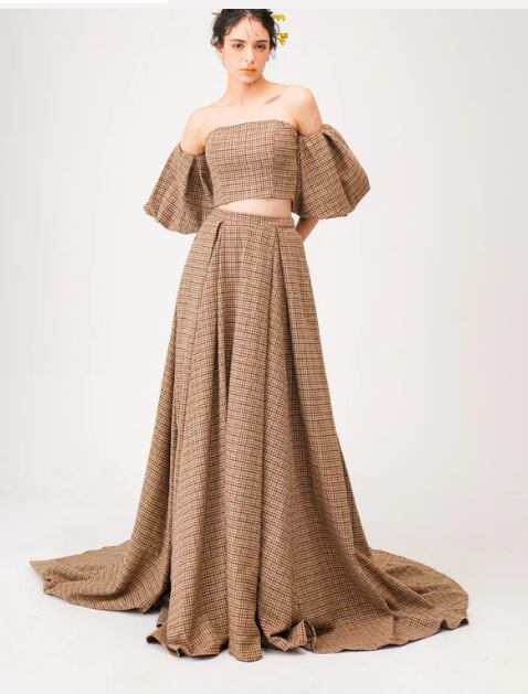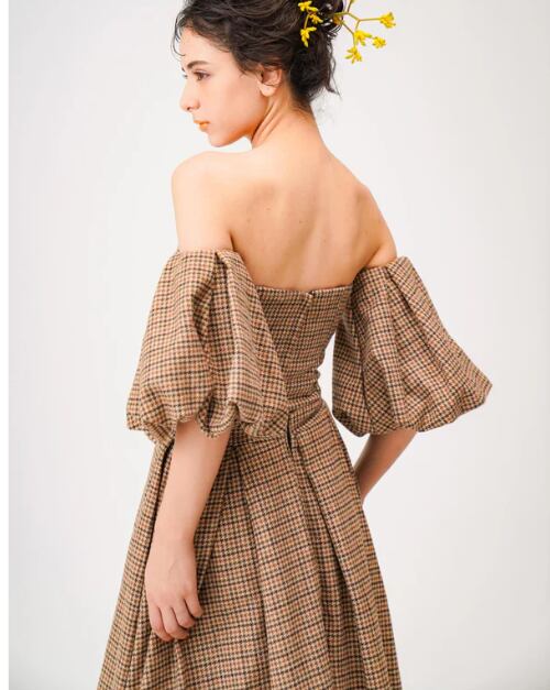 人気上昇! コーヒーの色 ベアトップ 取り外しパフスリーブ 袖 カラードレス ート トップス+スカート ツイードドレス 2次会 花嫁 挙式