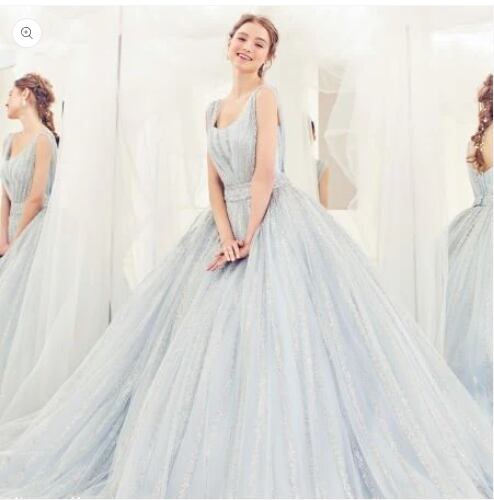 上品! グレー キラキラチュール ソフトチュール カラードレス プリンセスライン お色直し結婚式 披露宴