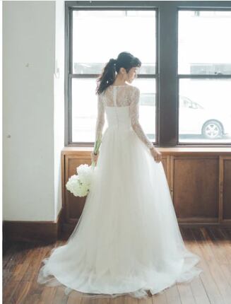 上品! オフホワイト ウエディングドレス _+ エレガントレーストップス 花嫁/結婚式/披露宴/