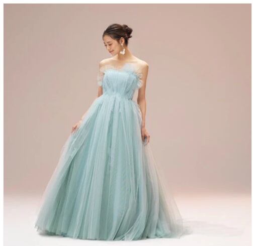 上品! ベアトップ ソフトチュール カラードレス プ お色直し結婚式 披露宴