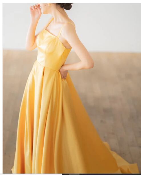 人気上昇!イエロー キャミソール カラードレス 2次会 花嫁 挙式