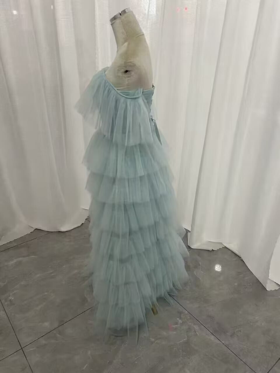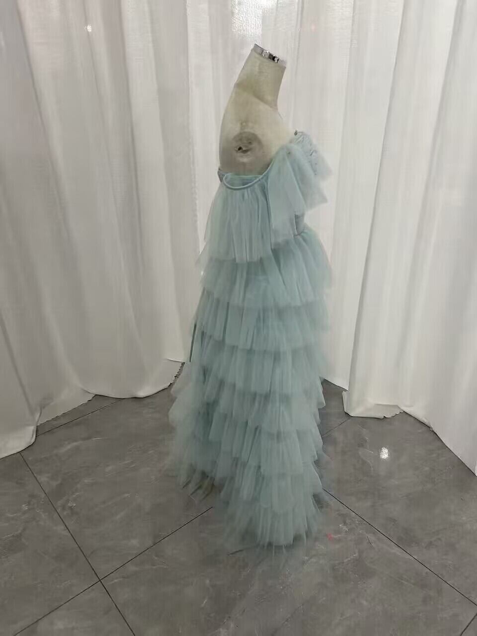 爽やかで優しいブルー カラードレス 柔らかく重ねたチュールスカート 抜群のおしゃれ見え 目立つ 前撮り 花嫁