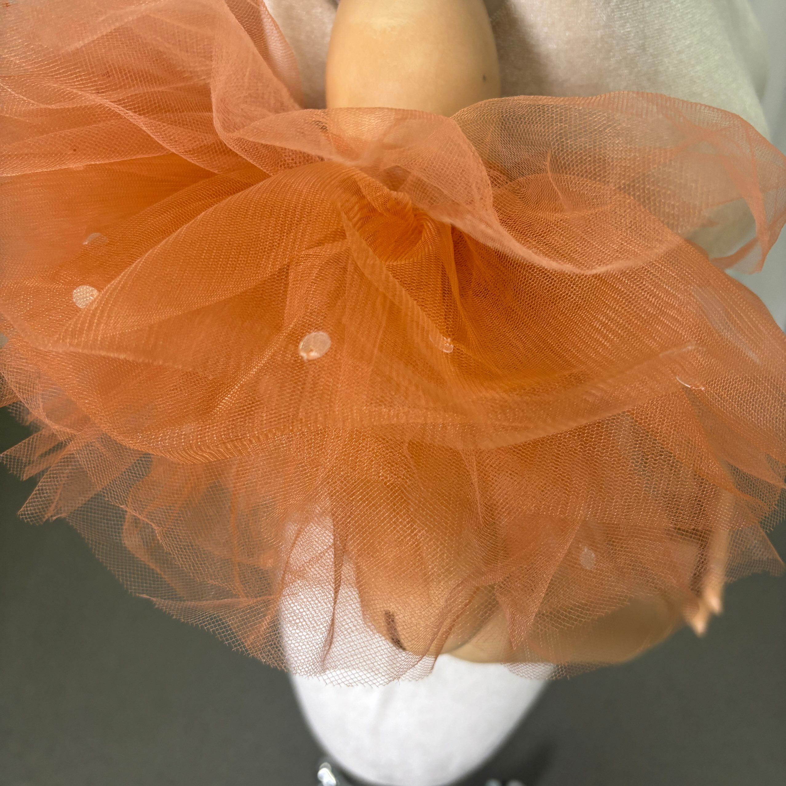オレンジ ポンチョ ソフトチュール ラッフルフリ ルキラキラグリッターチュール  ふわふわ取り外しオフショルダー