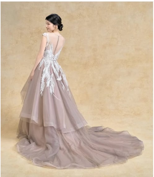 魅惑の花レース ピンク紫カラードレスト ロングトレーン 抜群のおしゃれ見え前撮り 花嫁