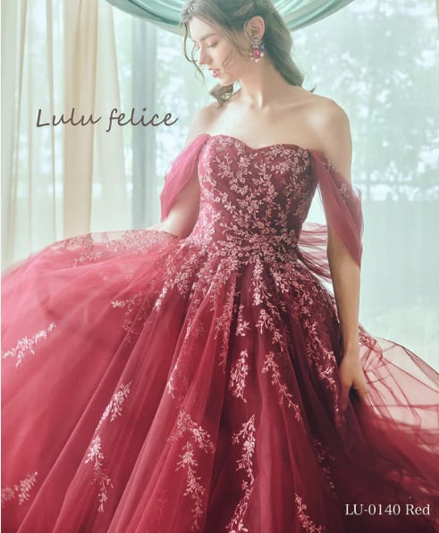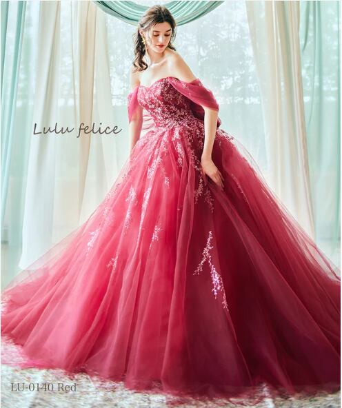 輝きな光彩を放つ チェリーピンク 魅惑の花レース カラードレスト プリンセスライン 花嫁