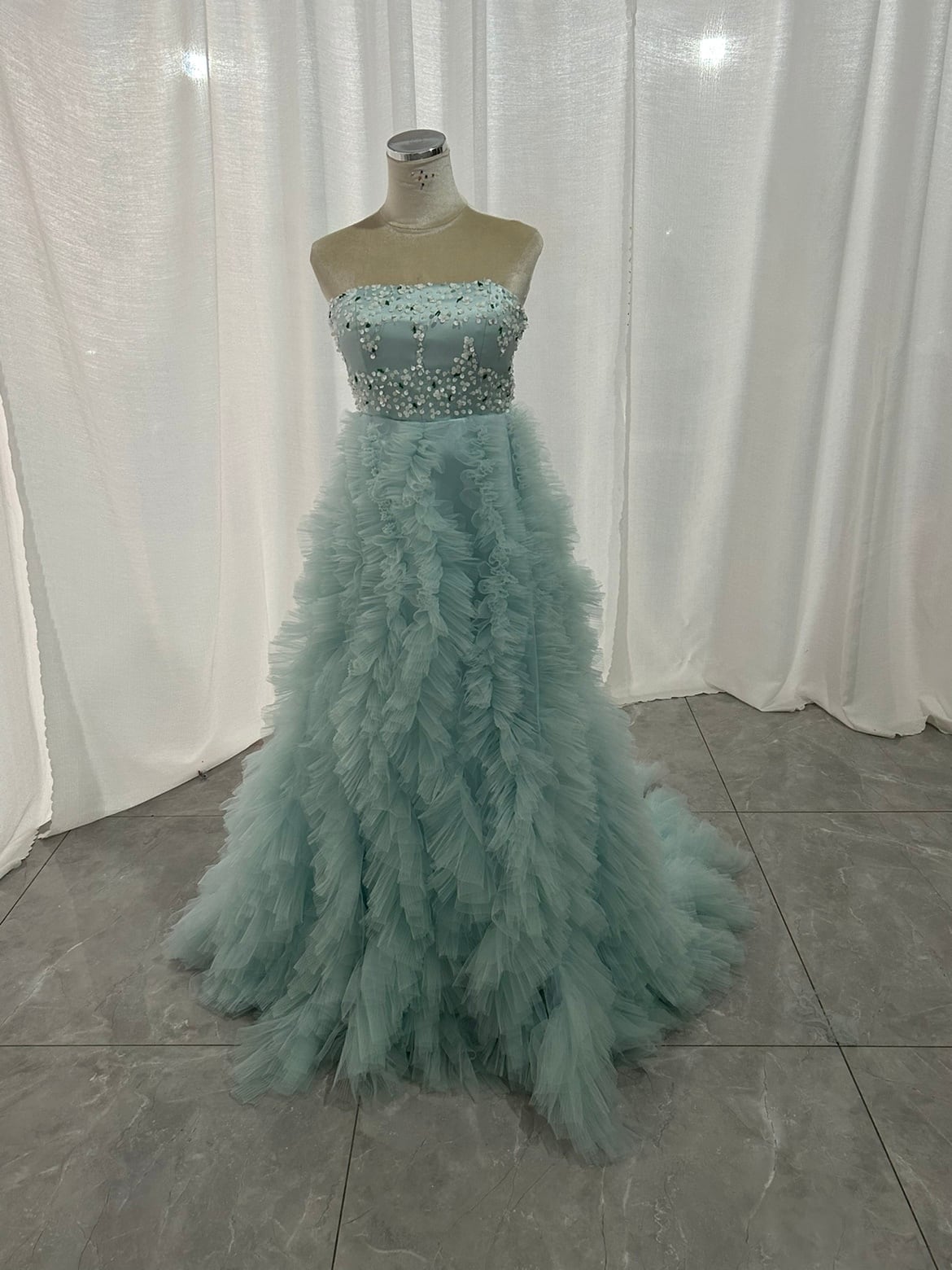 ゴージャスでエアリーなもこもこカラードレス チュールドレス キラキラのハンドビーディング ふわふわ ボリューム