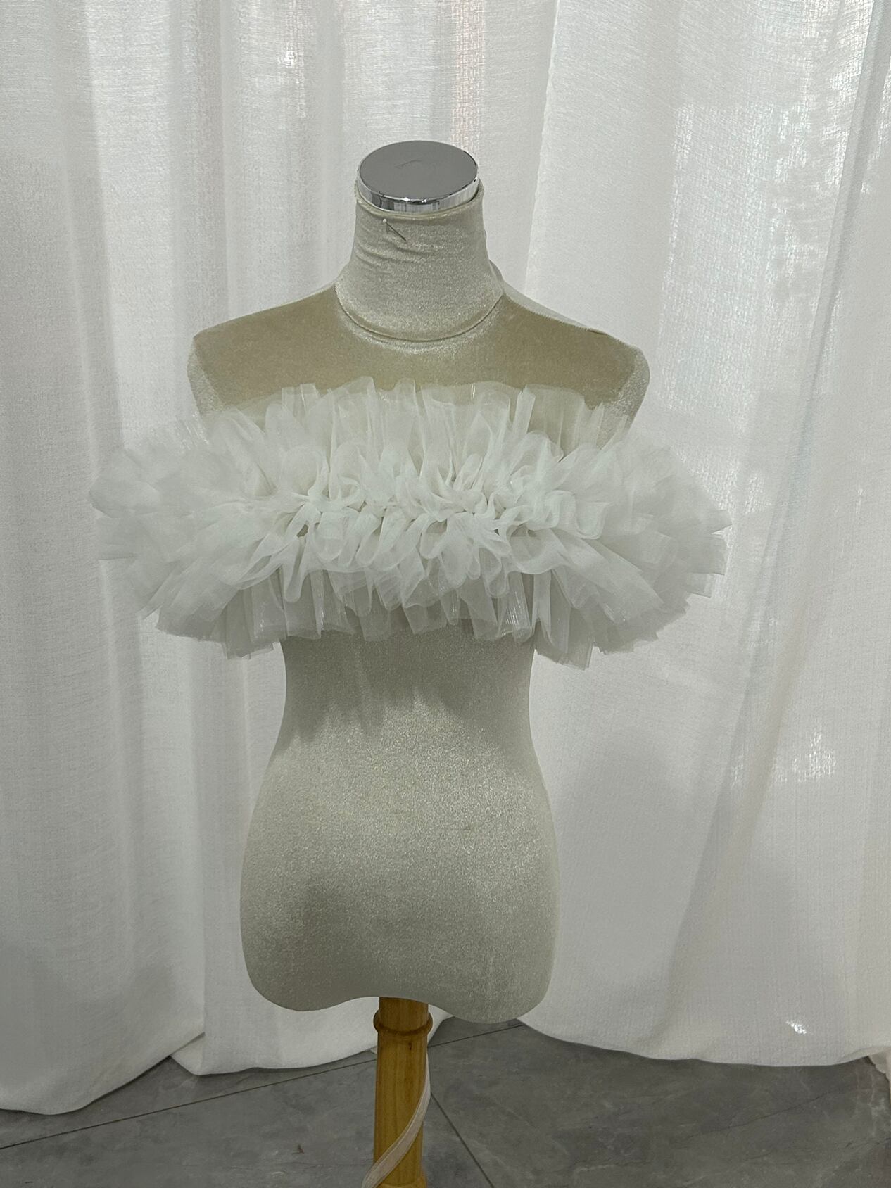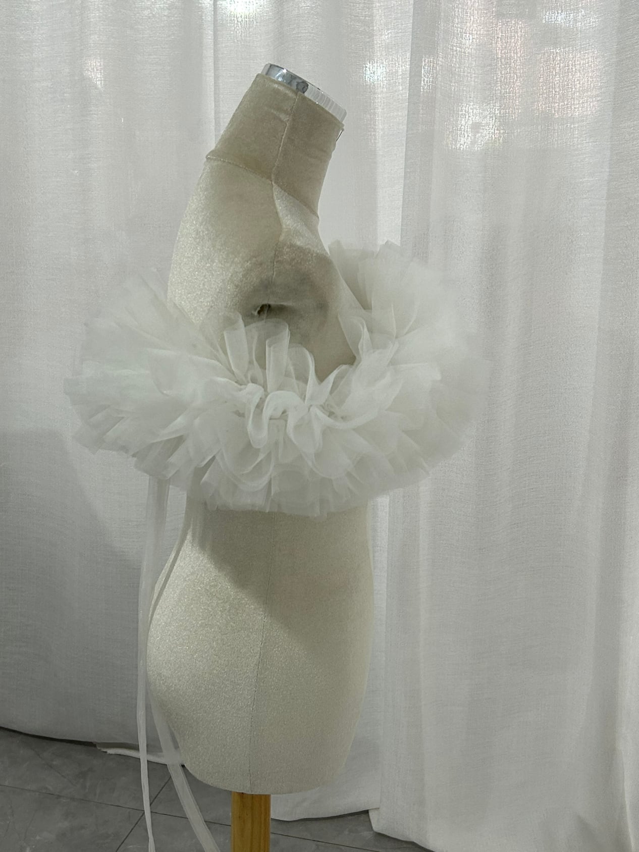 エレガント ポンチョ ソフトチュール ラッフルフリル ふわふわ取り外しオフショルダー