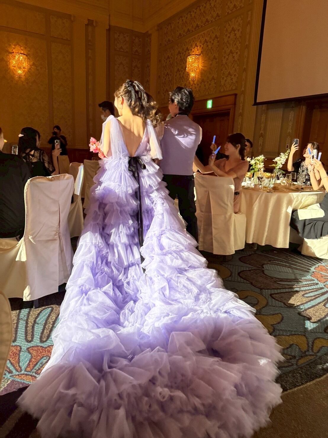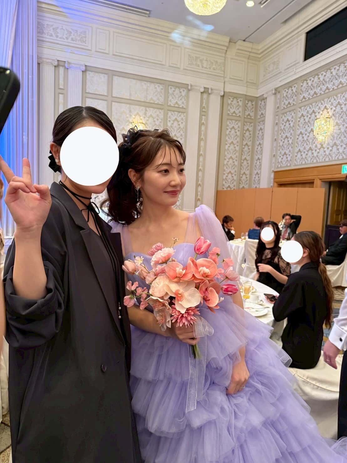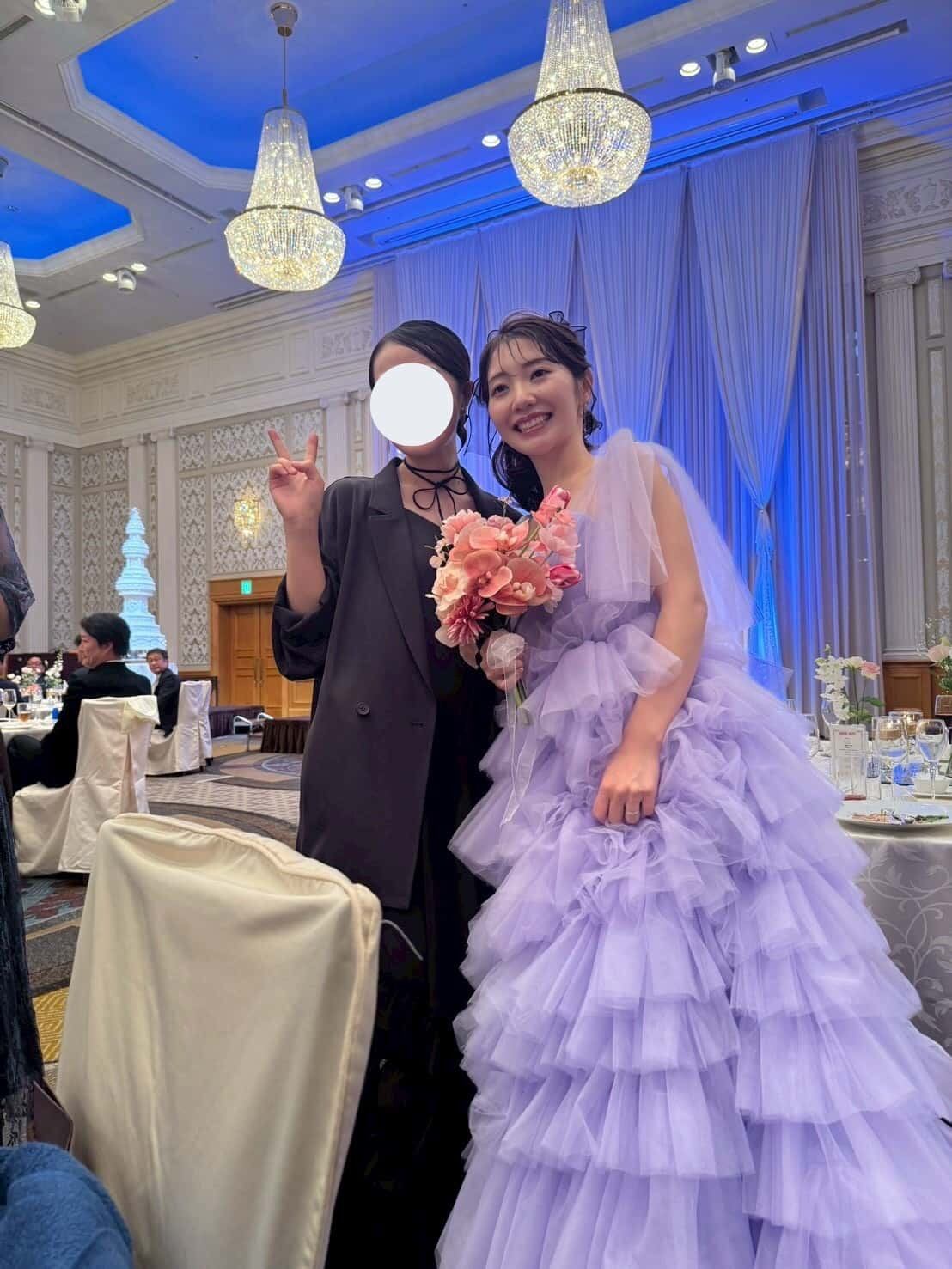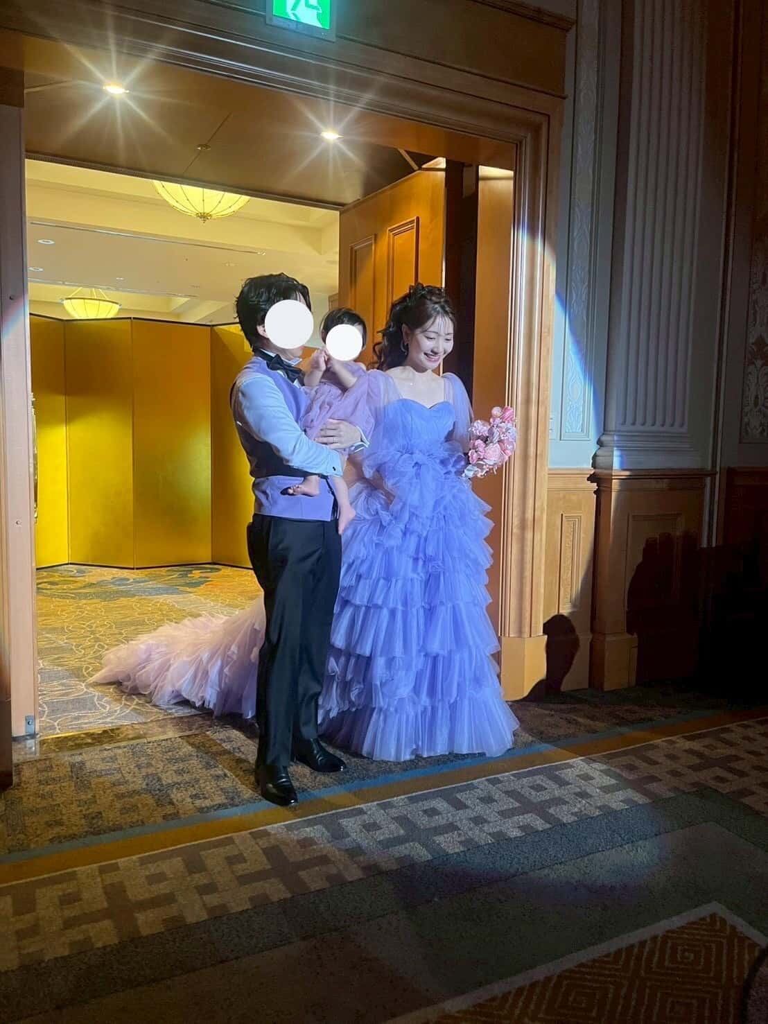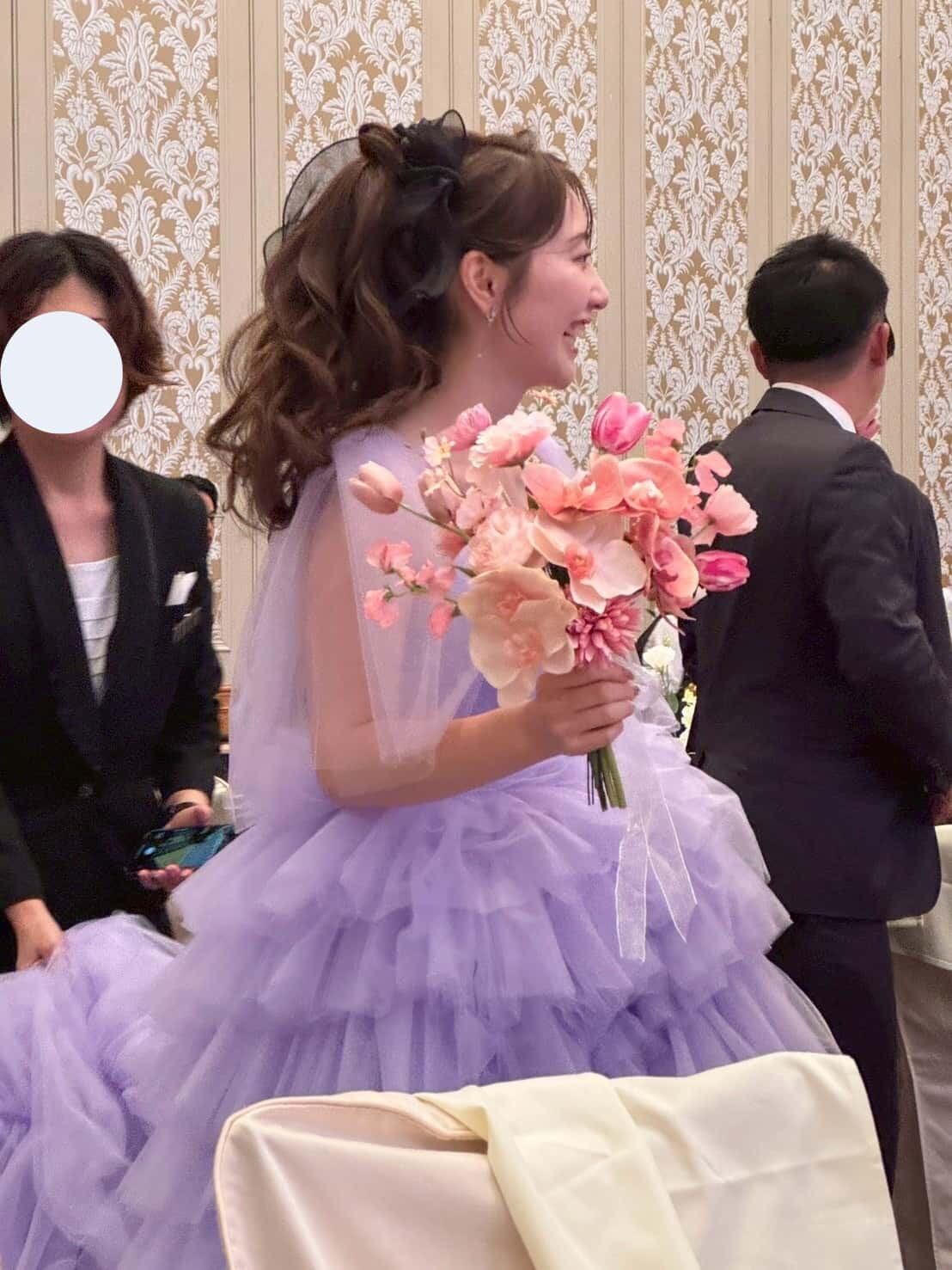 実例写真 ! 華やか 紫 カラードレス 柔らかく重ねたチュールスカート 抜群のおしゃれ見え 目立つ 前撮り 花嫁
