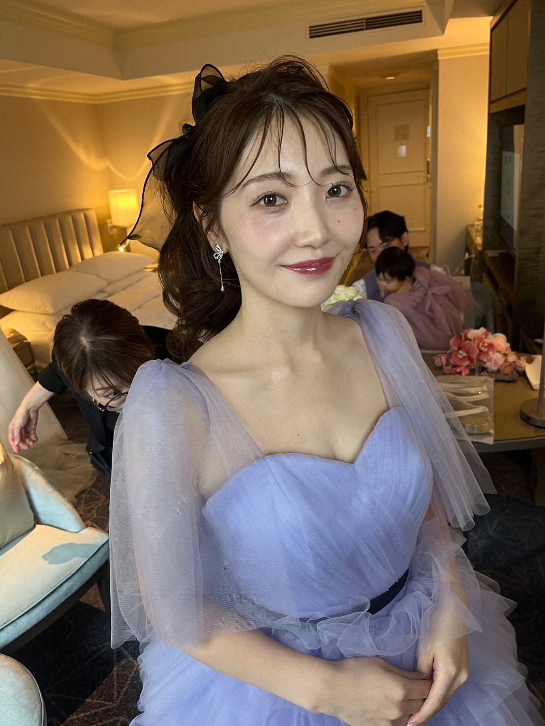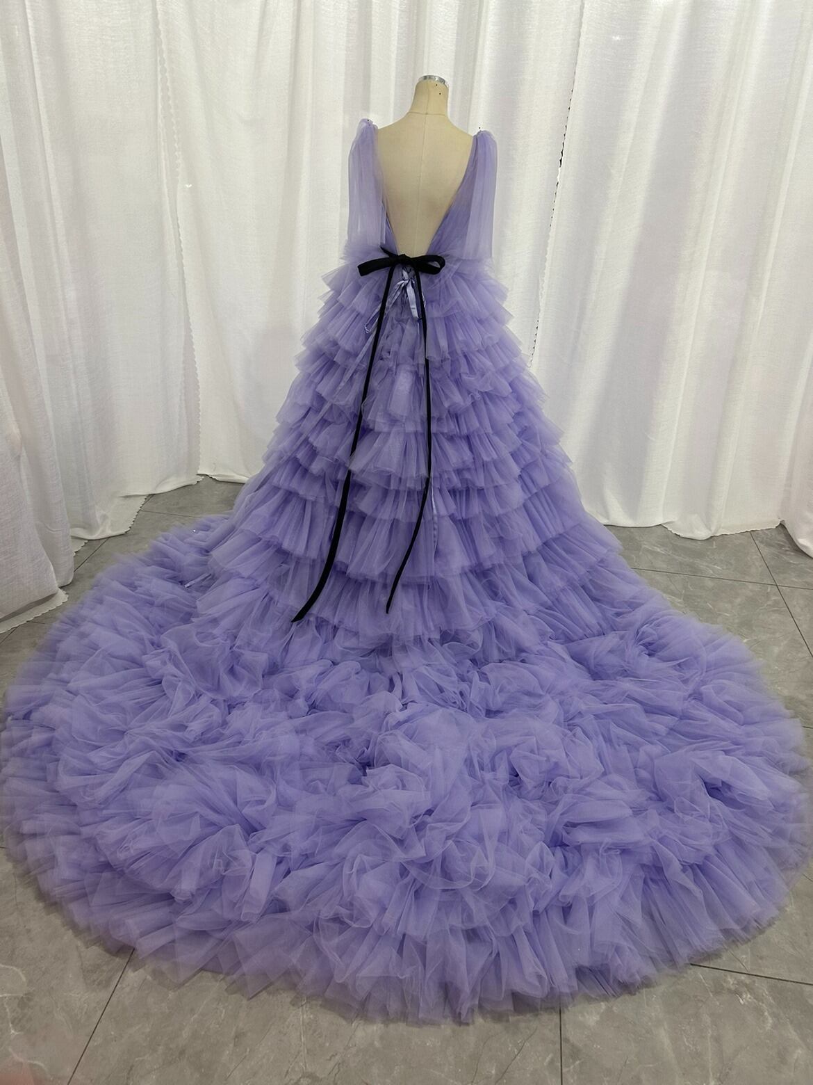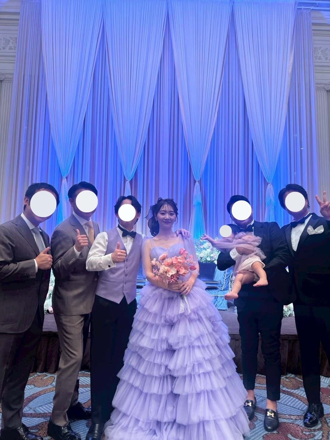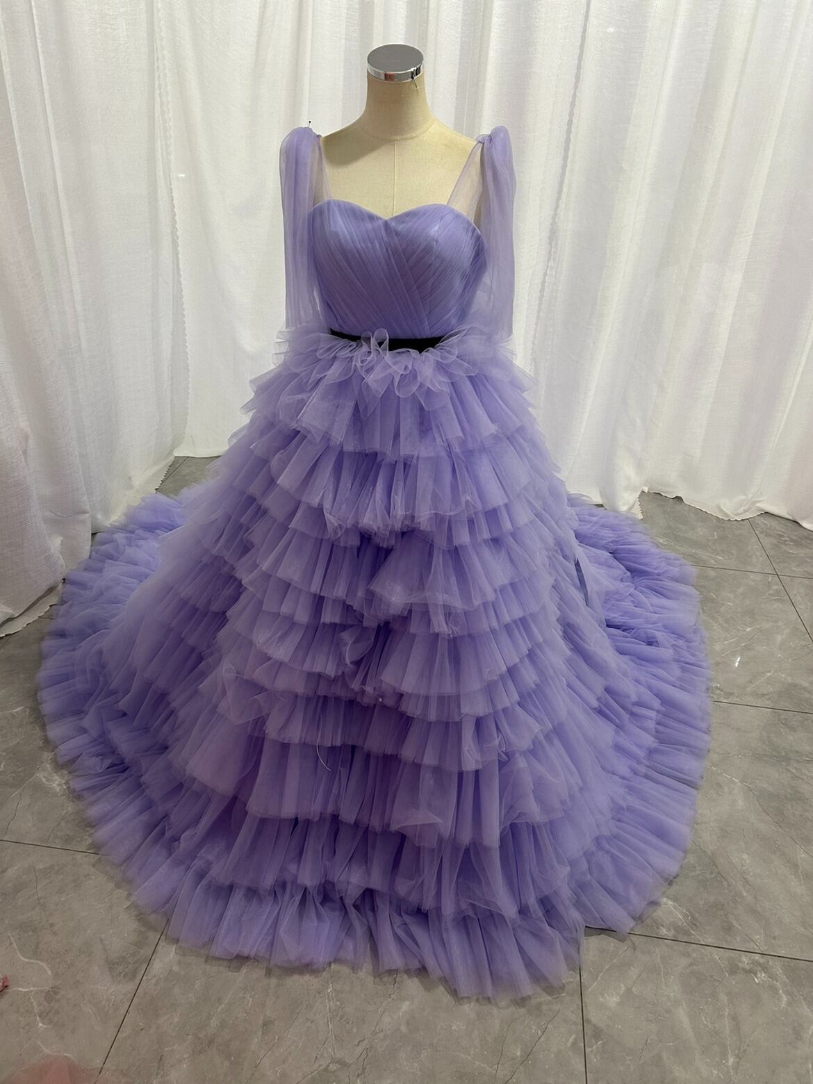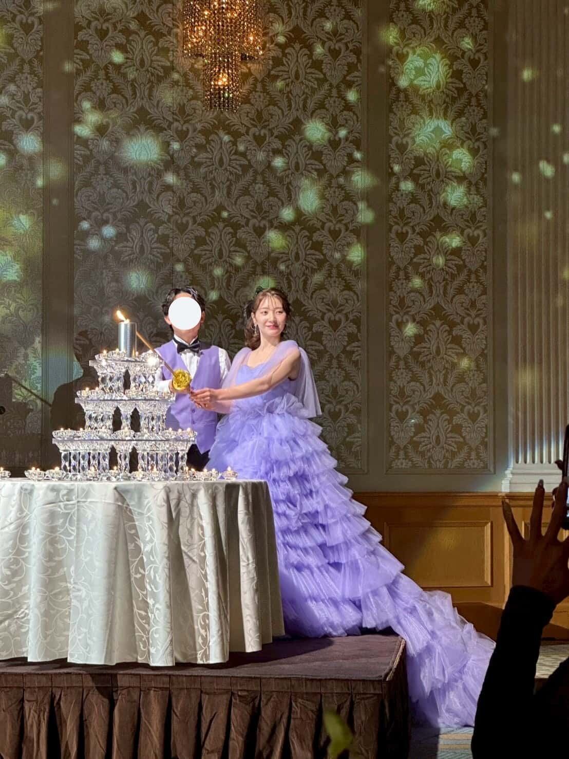 実例写真 ! 華やか 紫 カラードレス 柔らかく重ねたチュールスカート 抜群のおしゃれ見え 目立つ 前撮り 花嫁