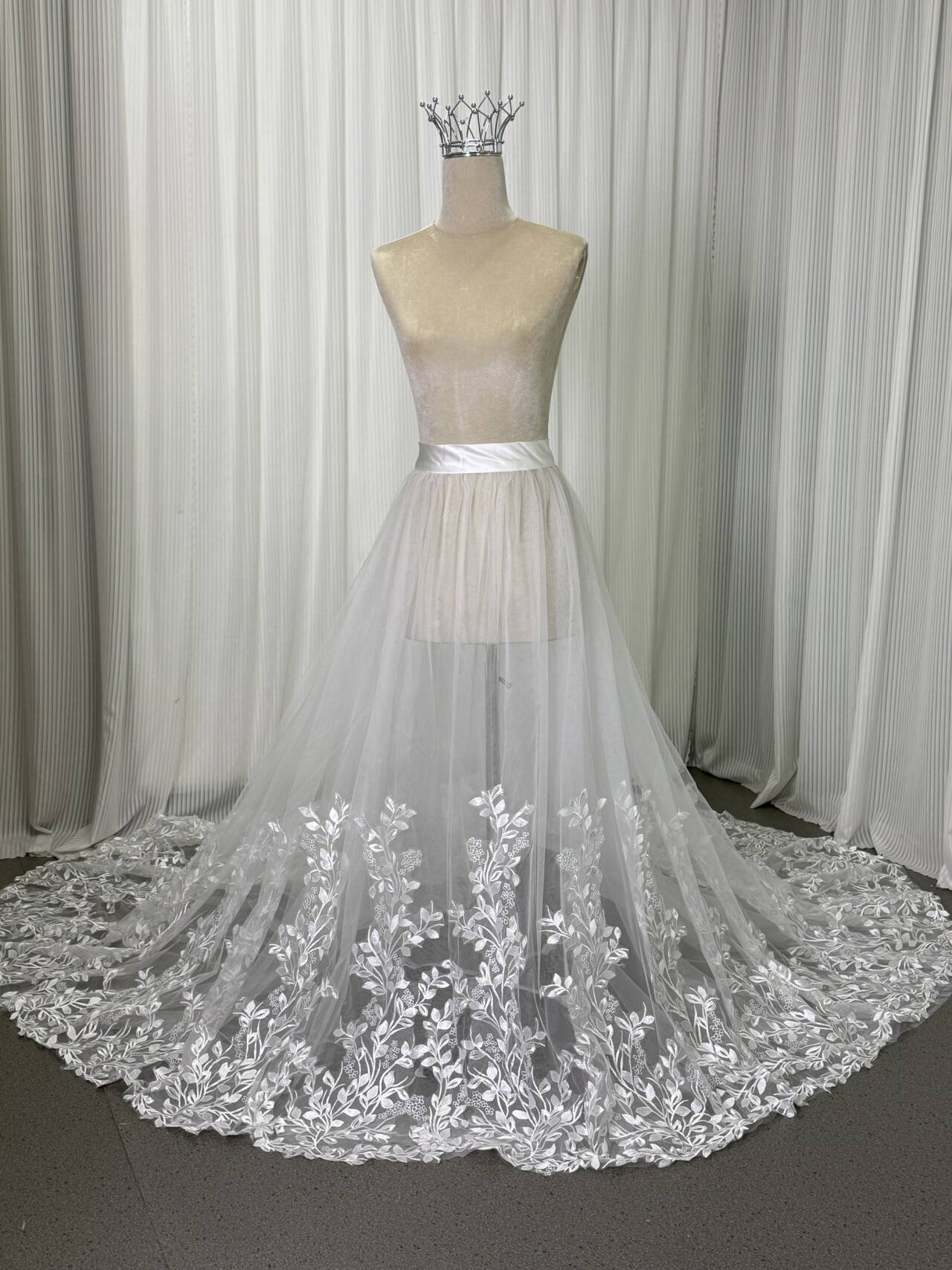 送料無料!雅やか 流れる透け花レース ソフトチュール 華やかなトレー ン オーバースカー