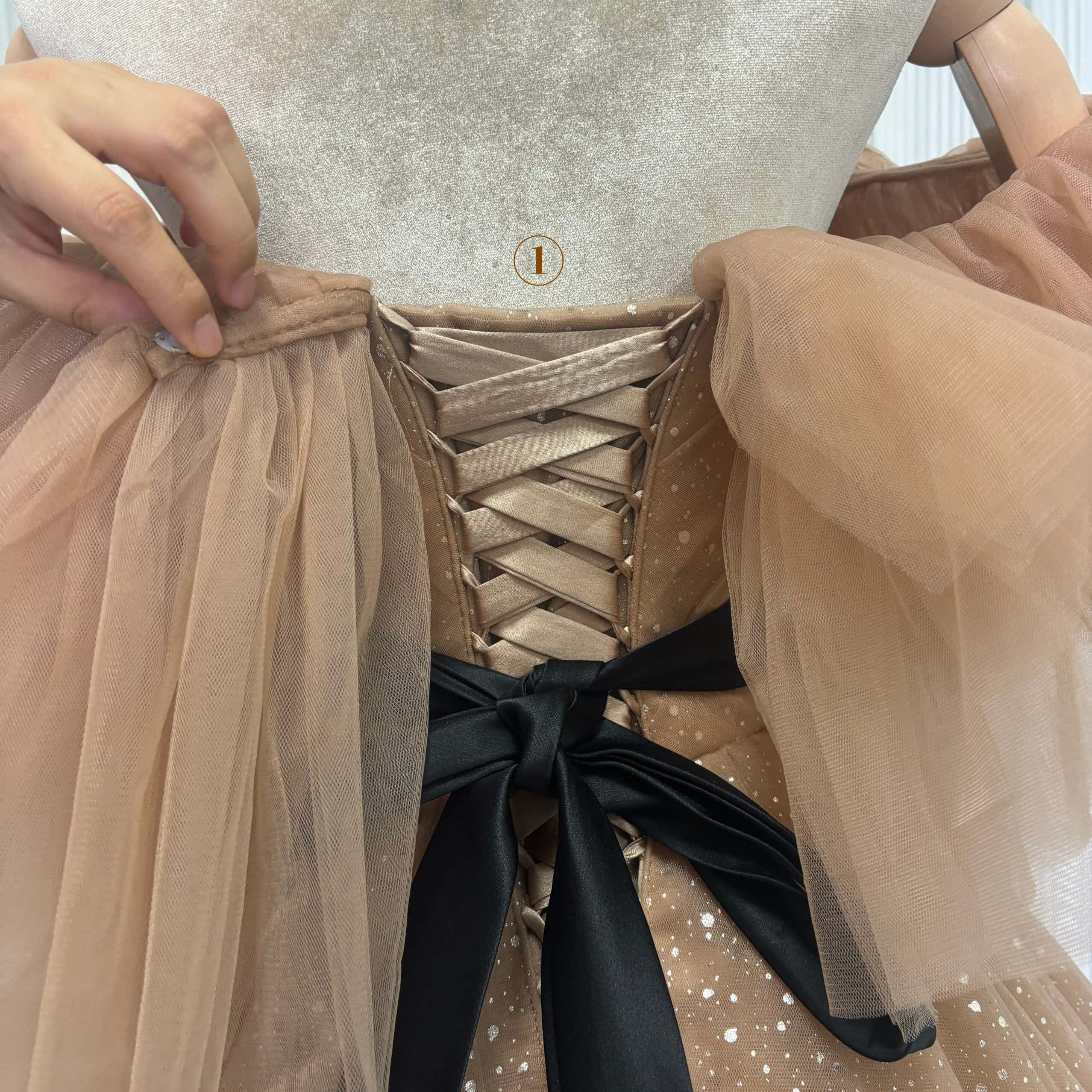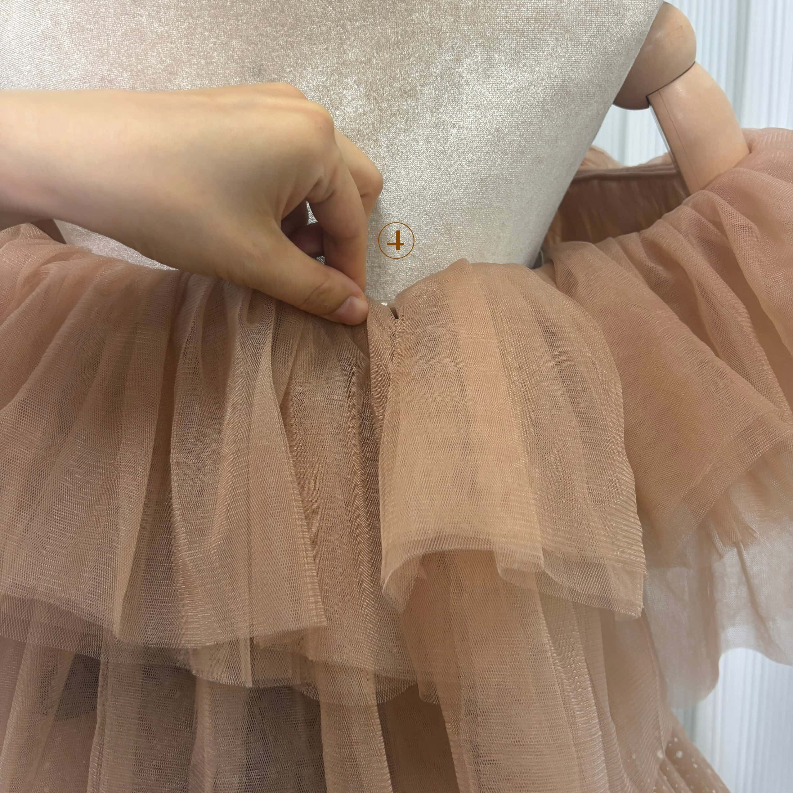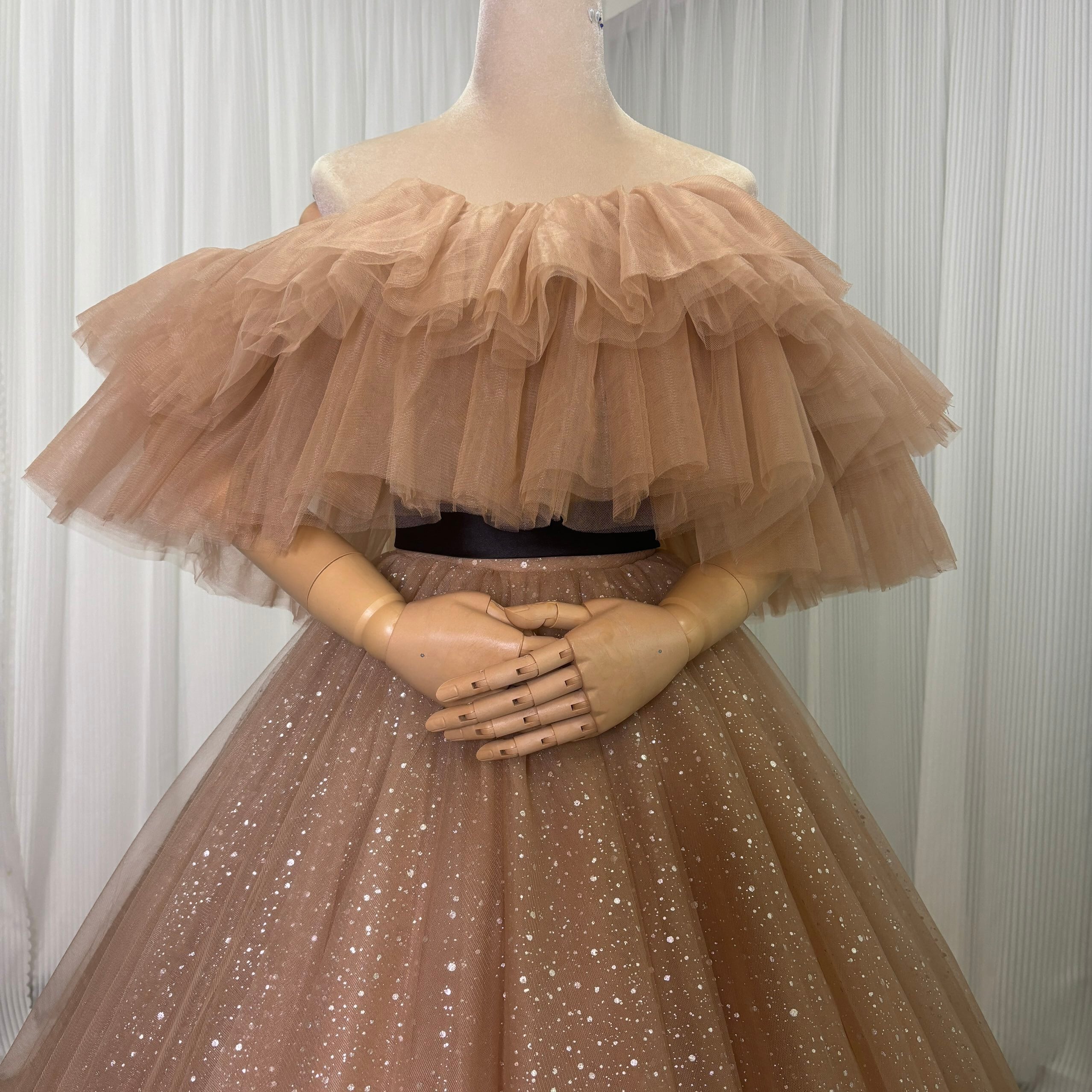 人気上昇!シャンパン色 チュールドレス 取り外しオフショルダーカラードレス 前撮り/花嫁
