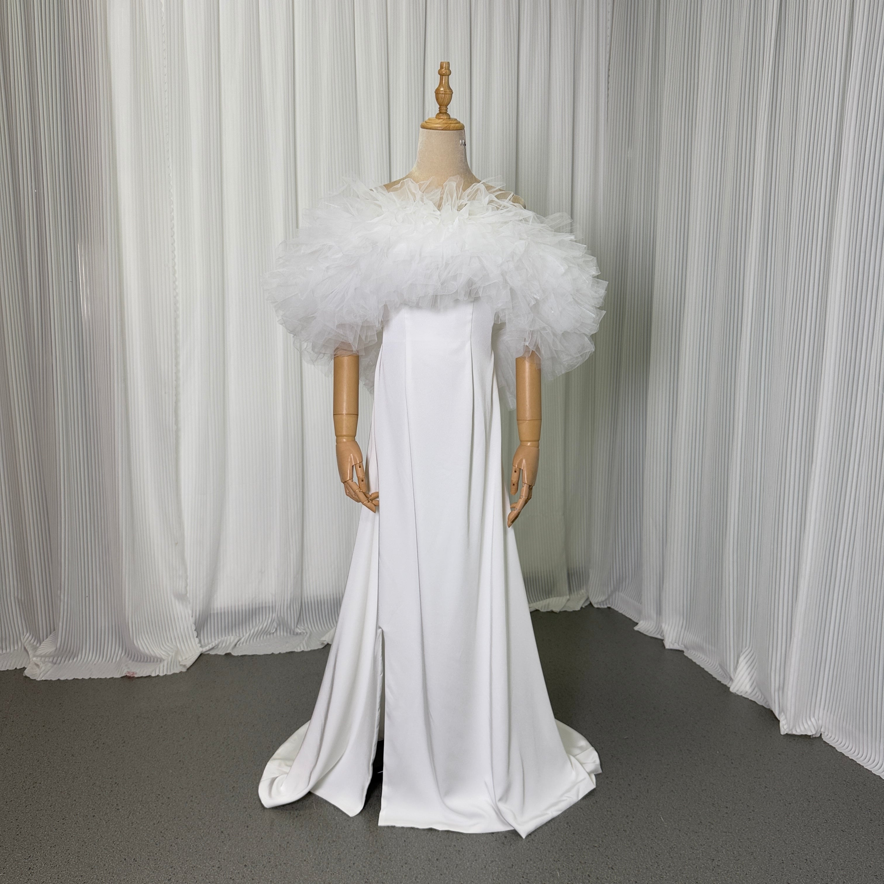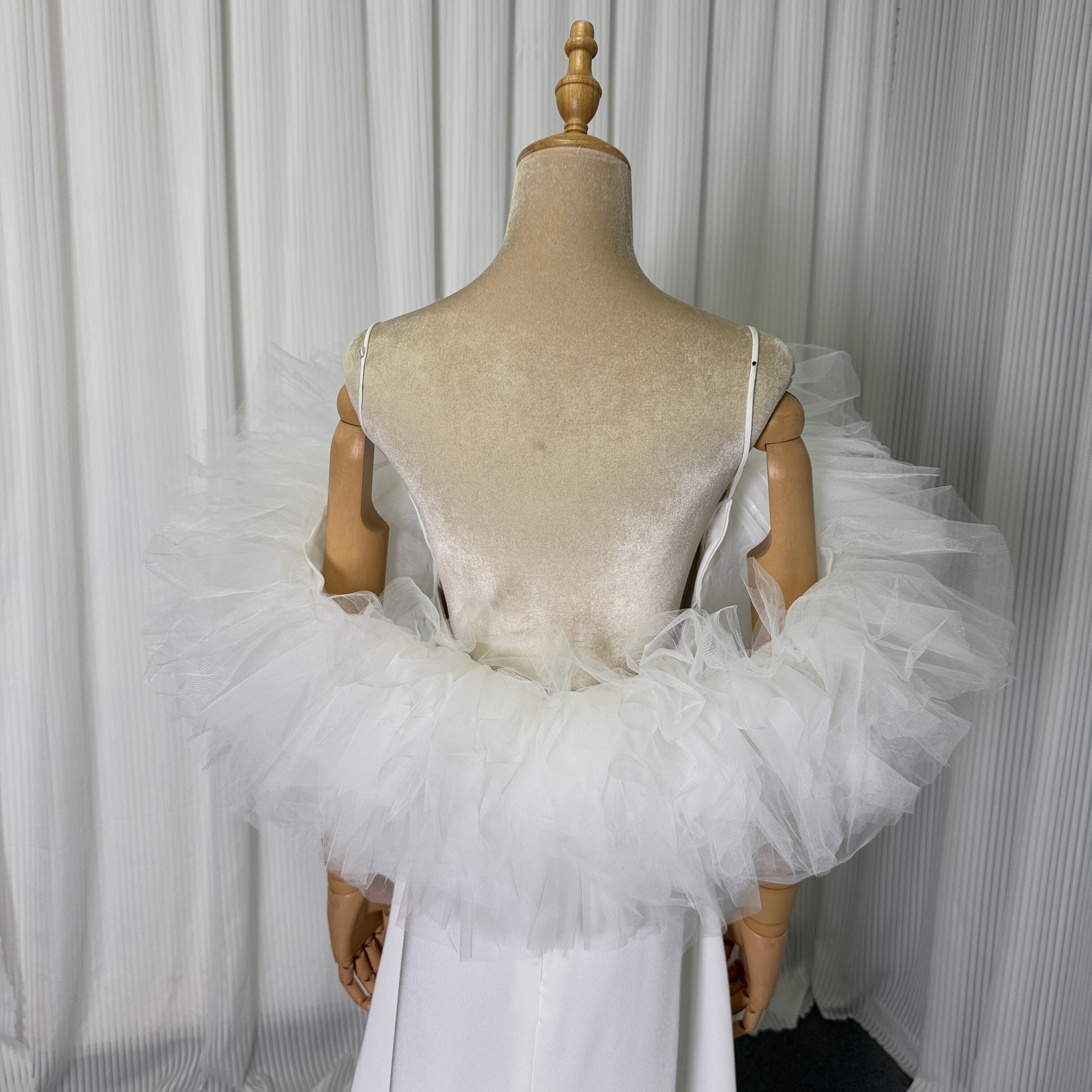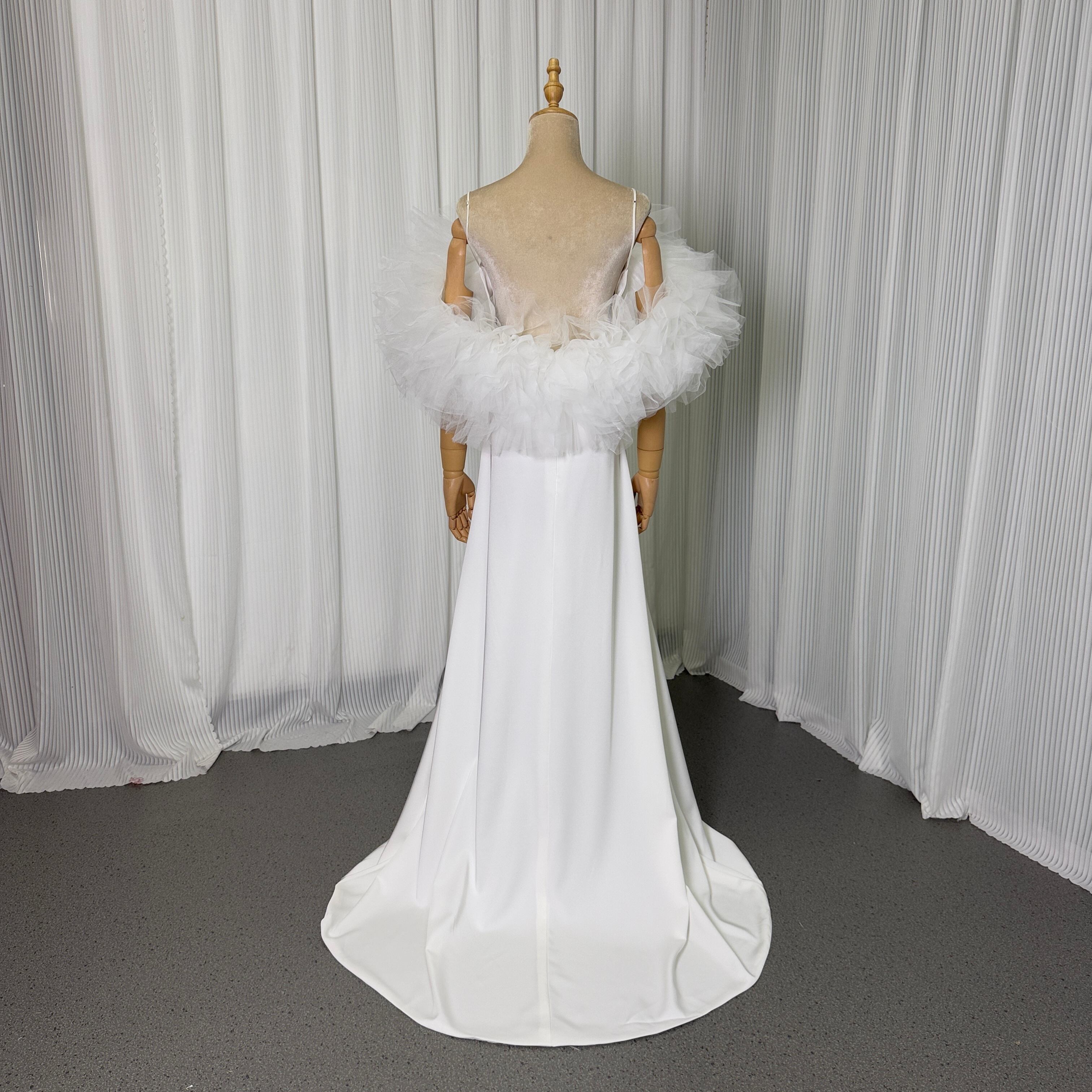 人気上昇!ウエディングドレス イタリアサテン 取り外しオフショルダーカラードレス 前撮り/花嫁