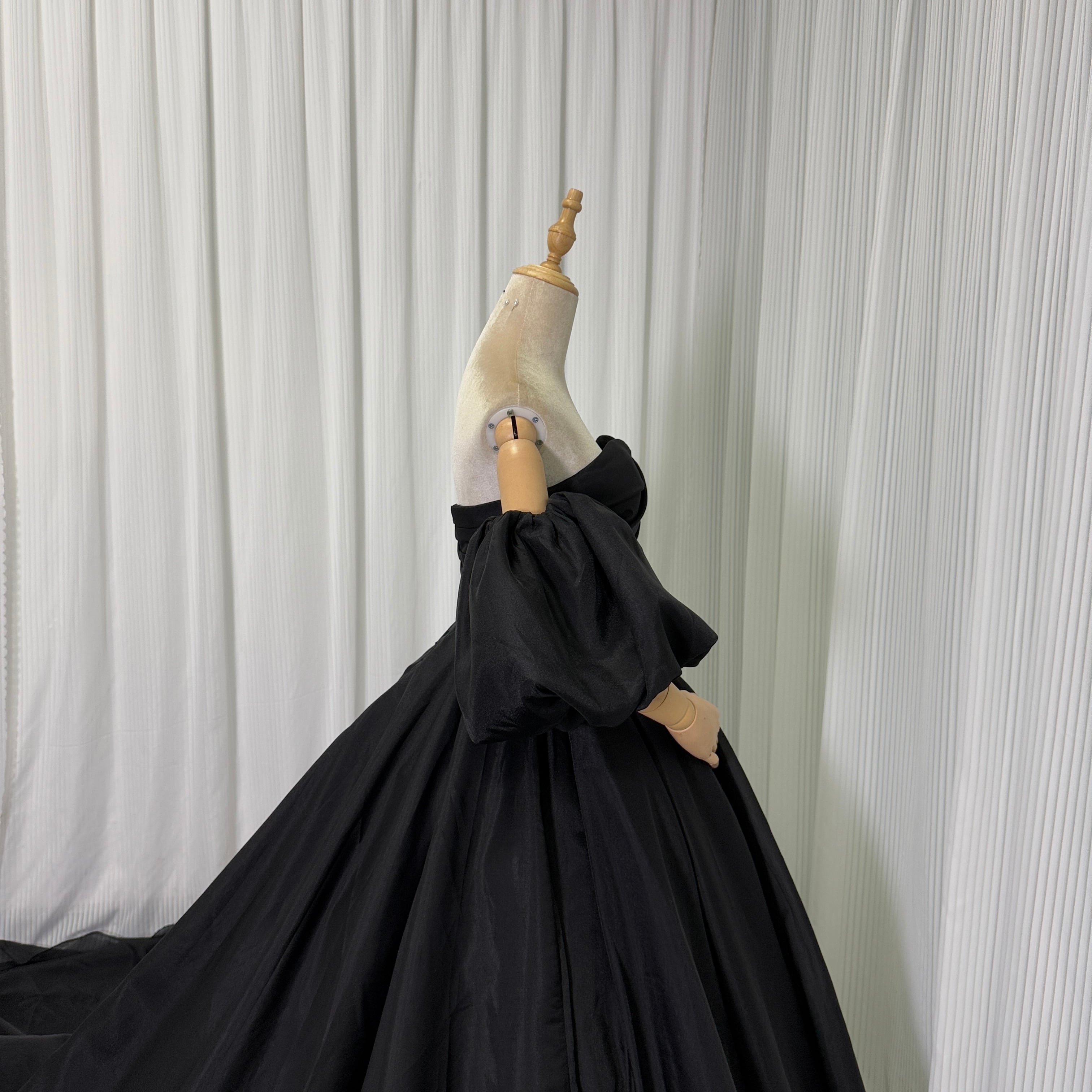 上品 黒 扬州纱 ベアトップ 取り外し取り外し袖 カラードレス ロングトレーン 2次会 花嫁 挙式