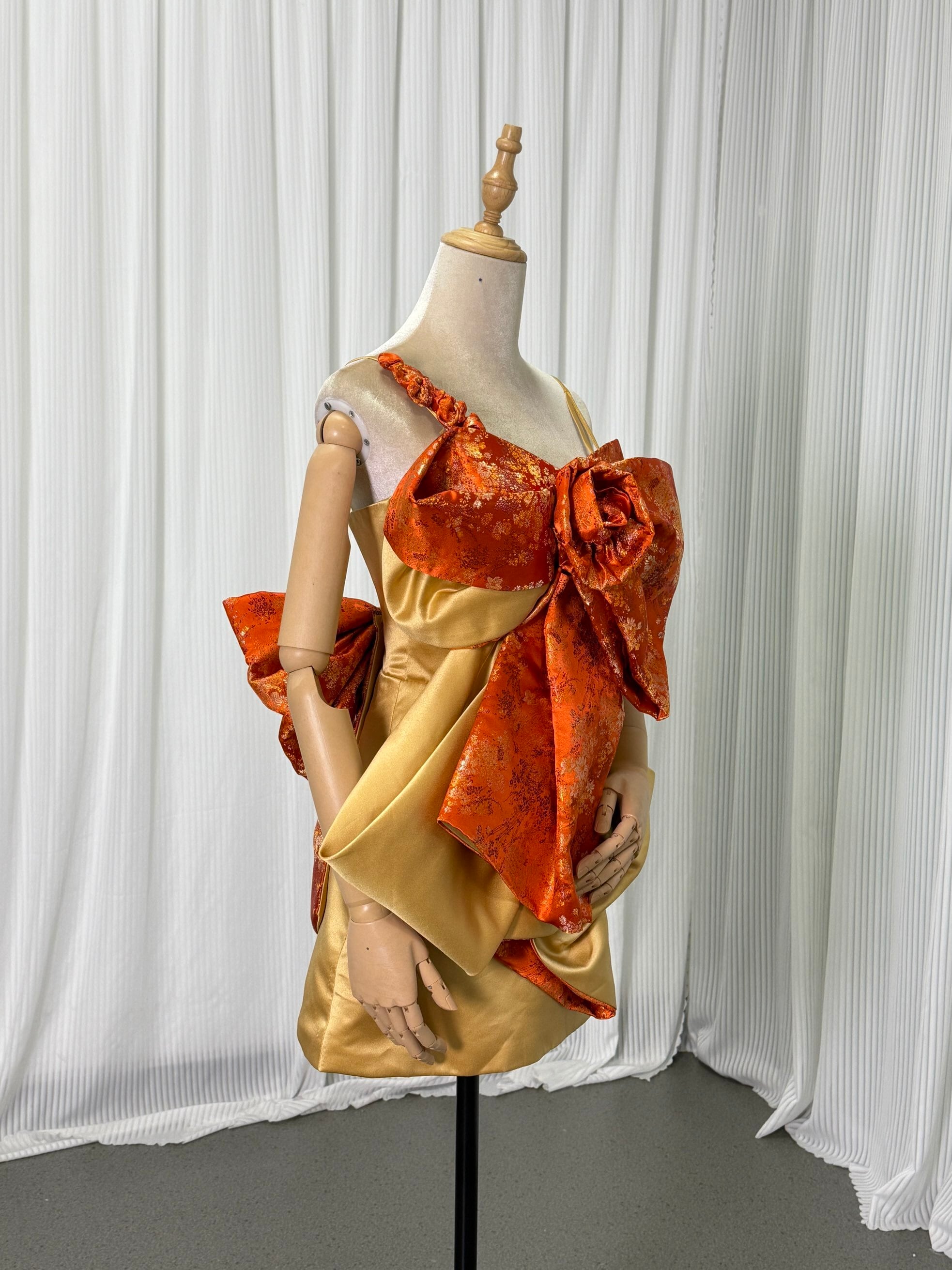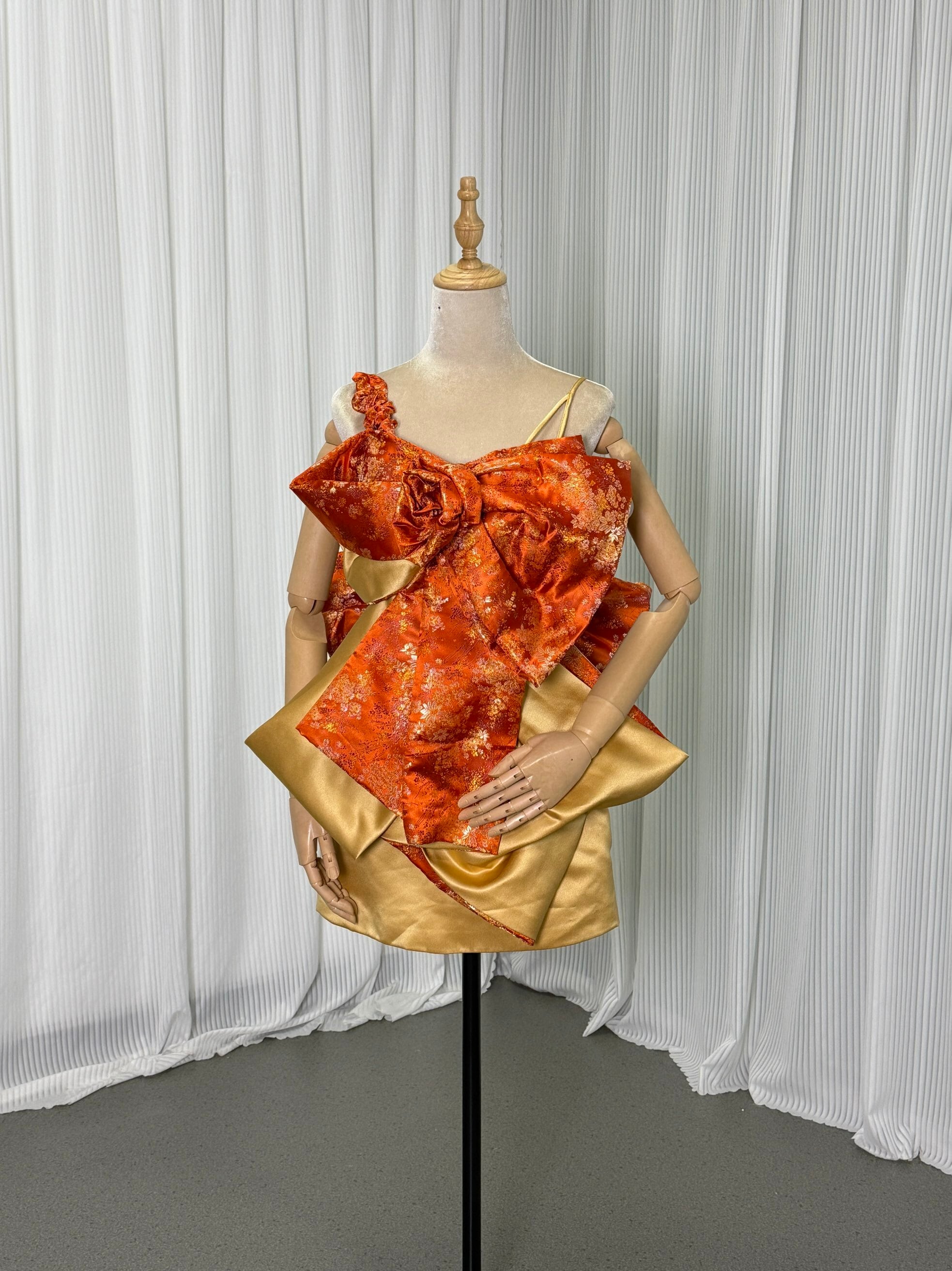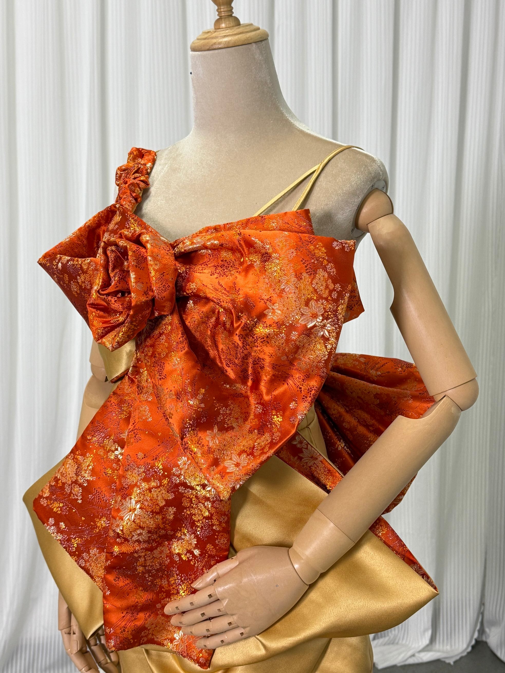 豪華! 和ドレス リボン オレンジ 刺繍打掛オーダー 着物 オーバードレス レース羽織 ウエディングドレス お色直し 花嫁和装 前撮り