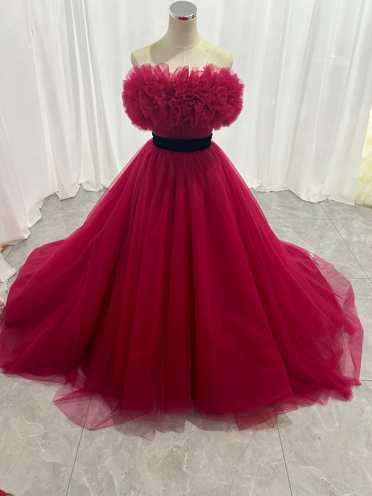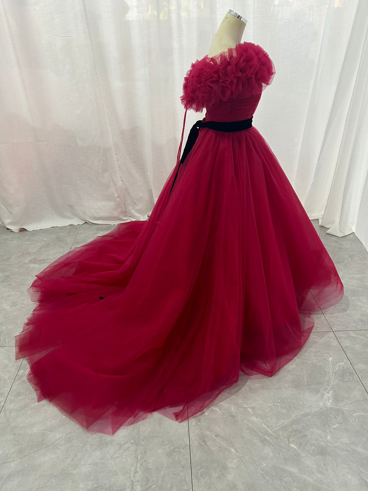 ボルドー色カラードレス オフショルダーの2WAYドレス ロングトレーン パーティードレス お色直し