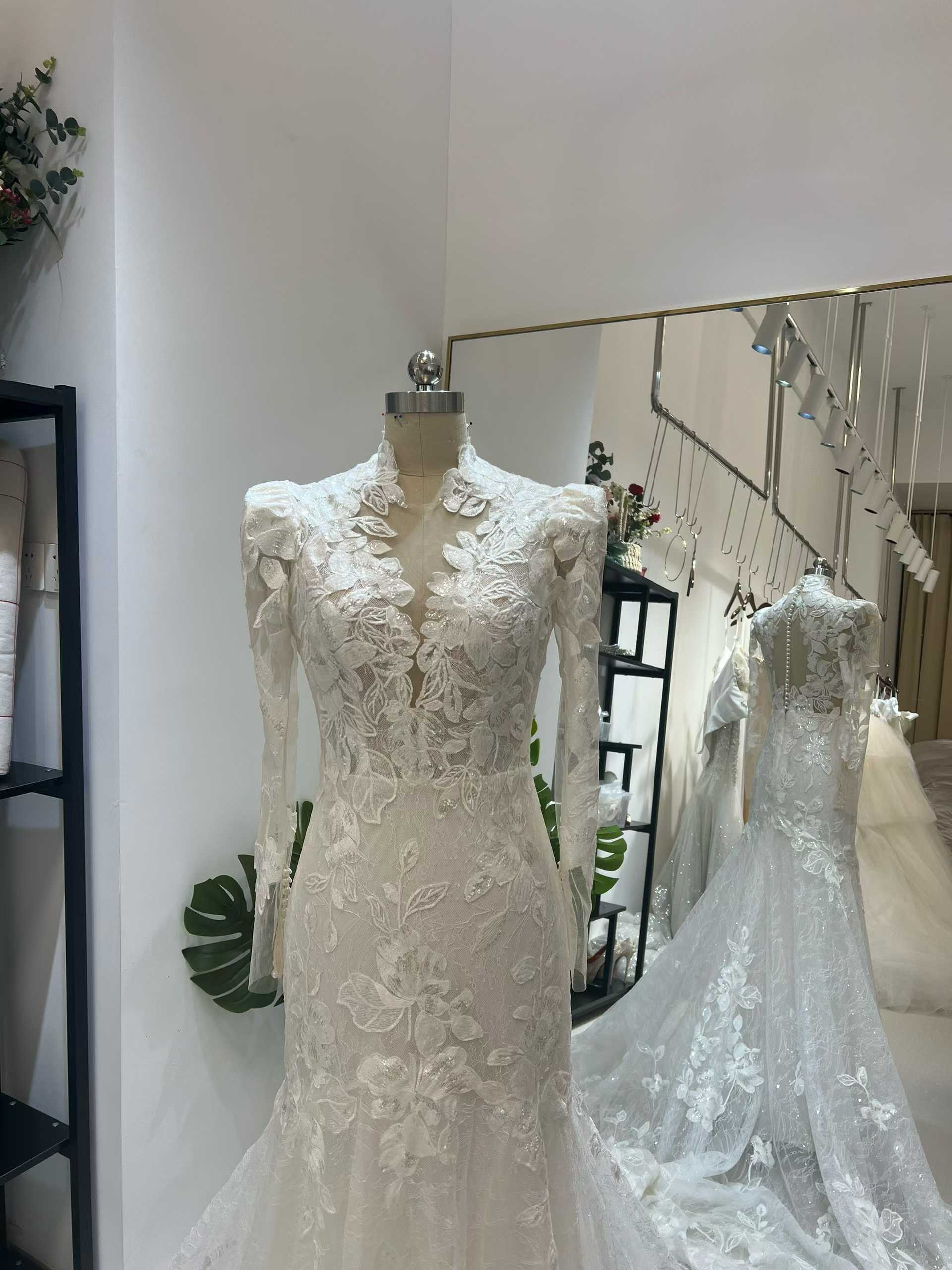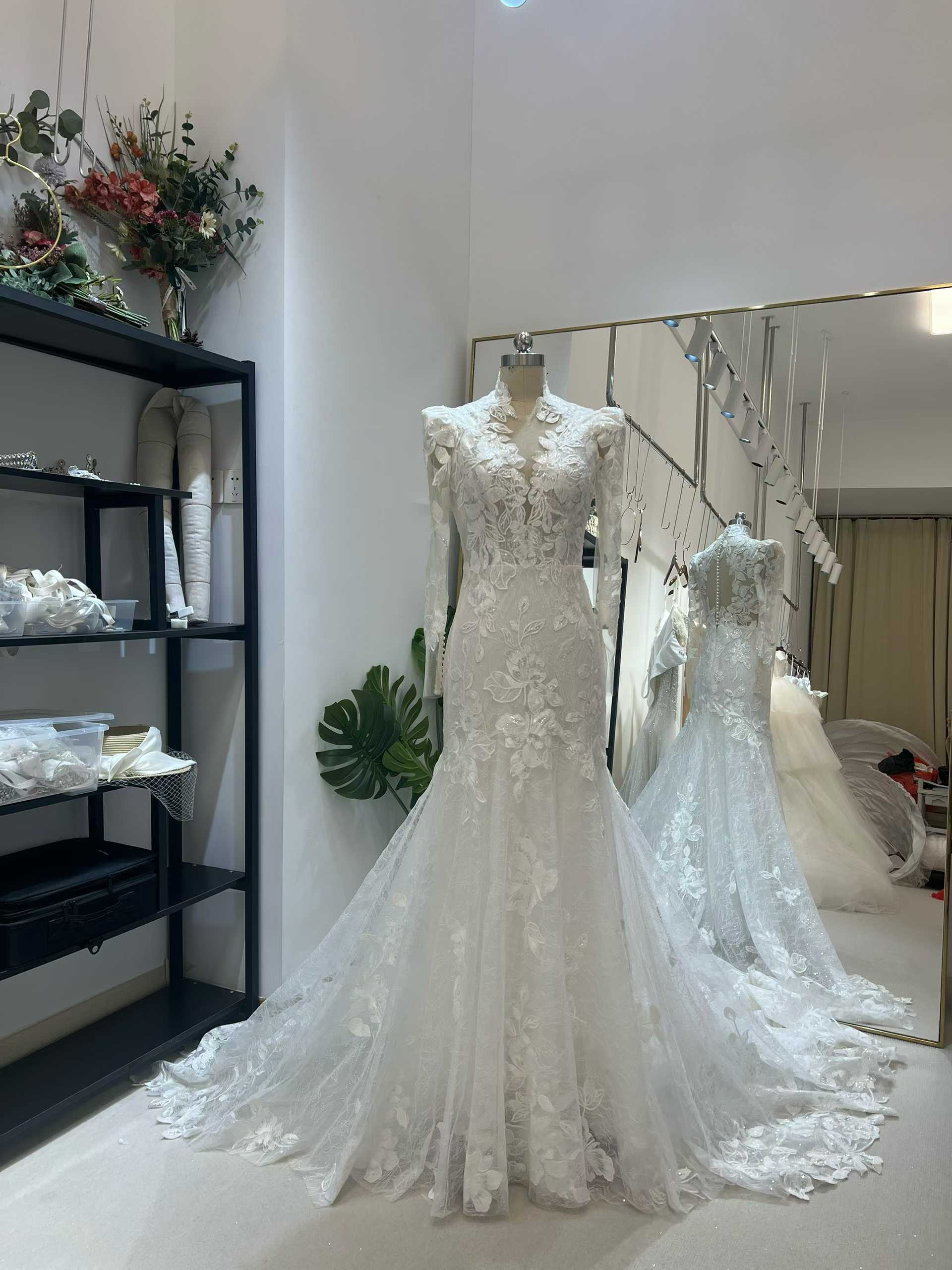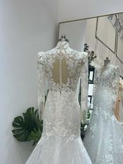 輝きな光彩を放つ 3D立体レース刺繍 ウエディングドレス 華やかなトレーン マーメイドライン結婚式/披露宴