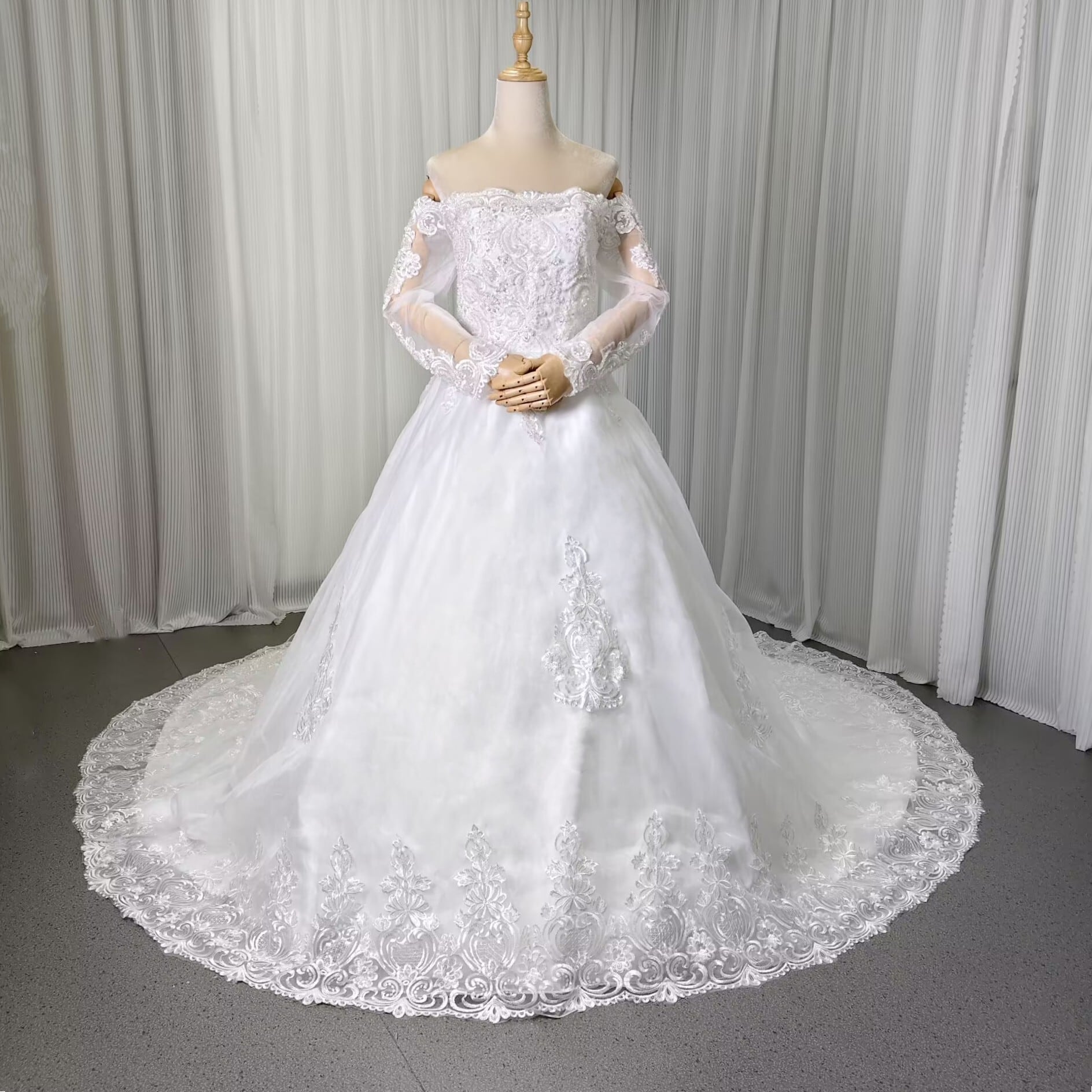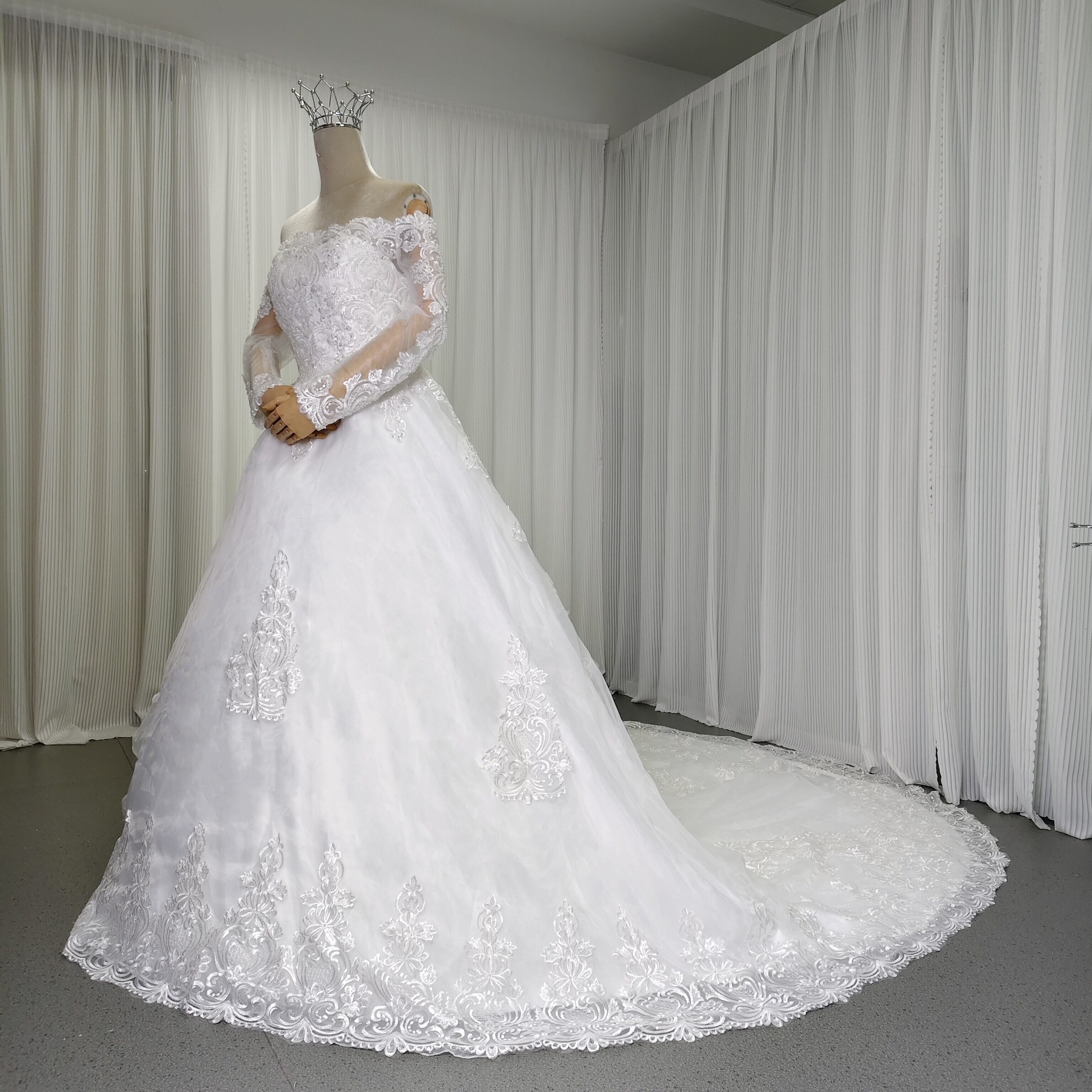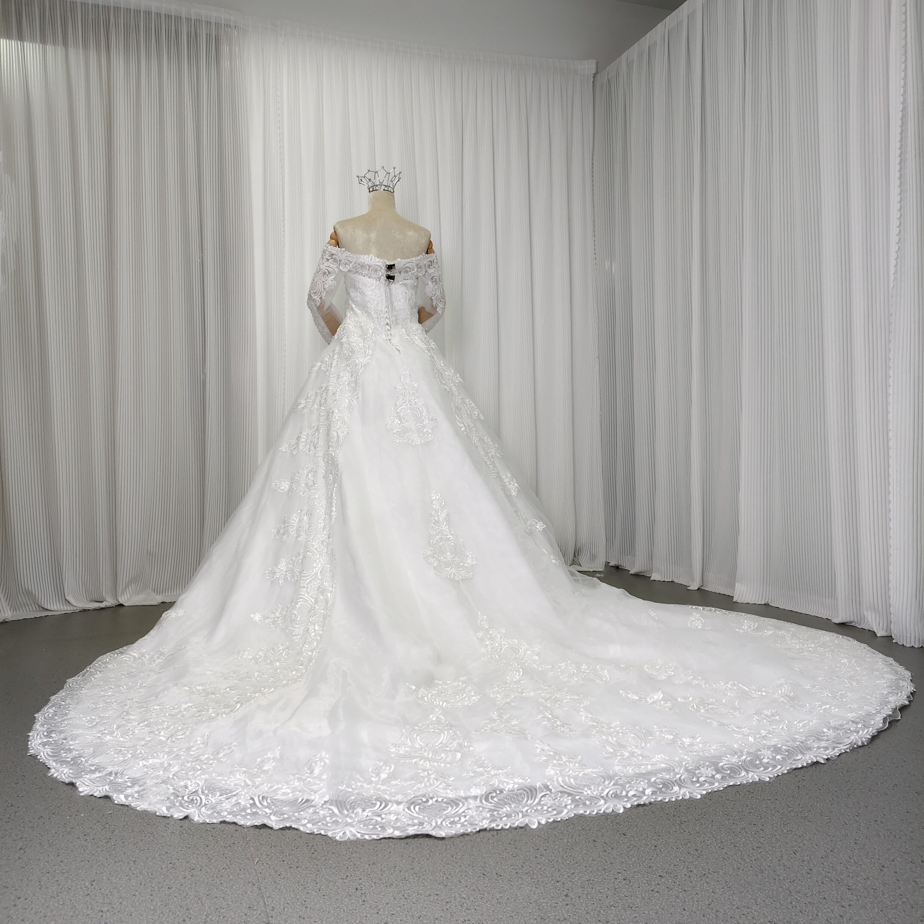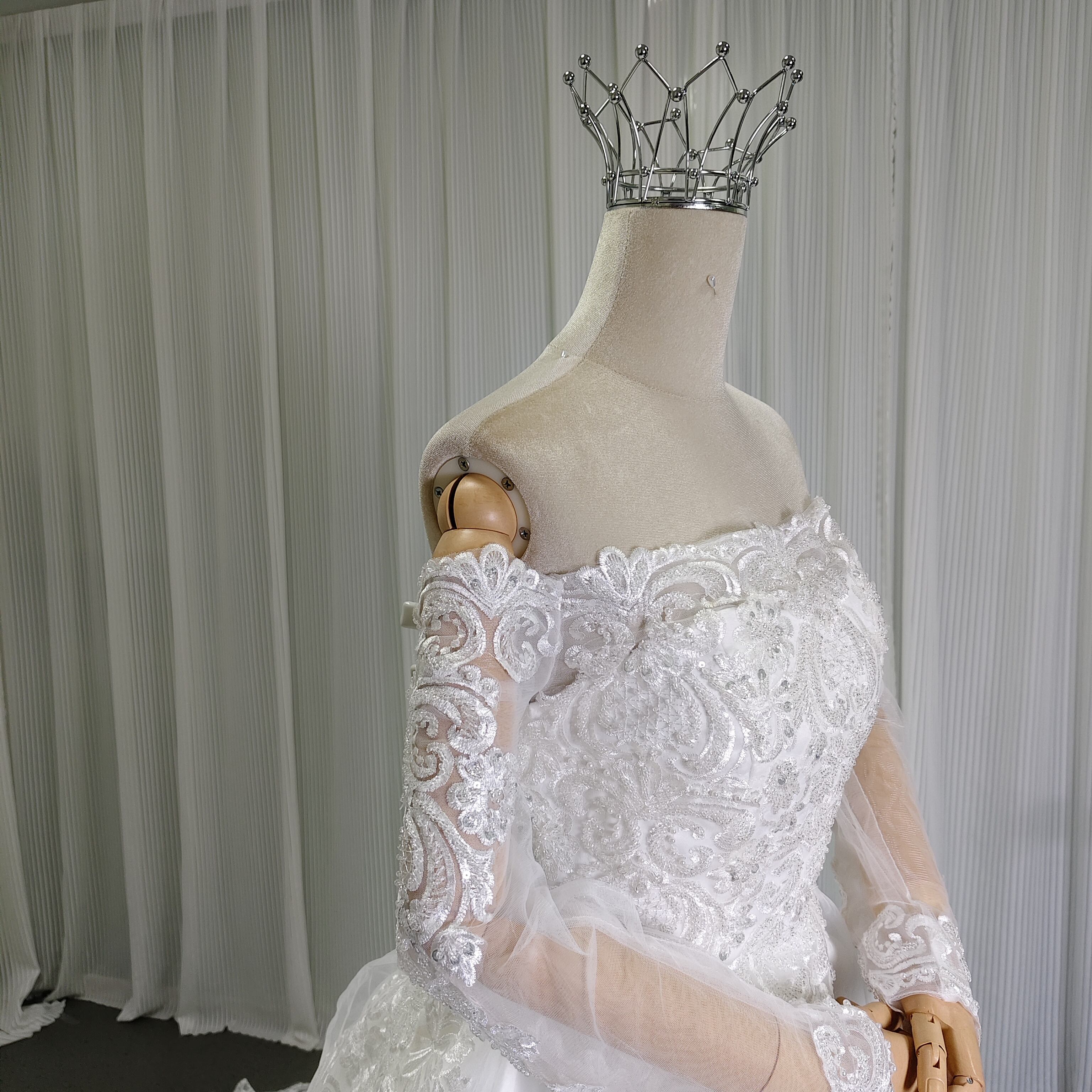 人気上昇!咲き誇る透け花レース ウエディングドレス.長袖 キラキラスパンコール 華やかなトレーン/結婚式/披露宴