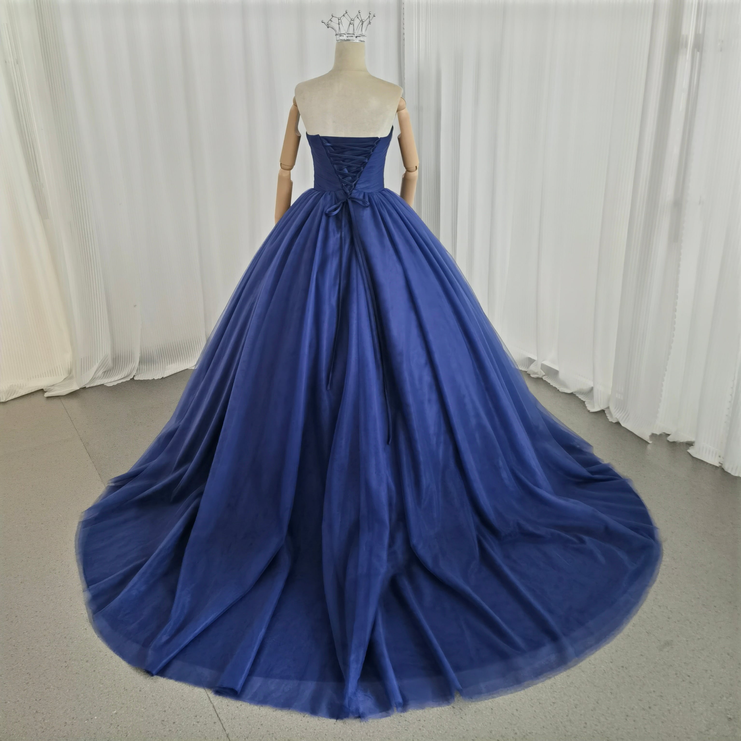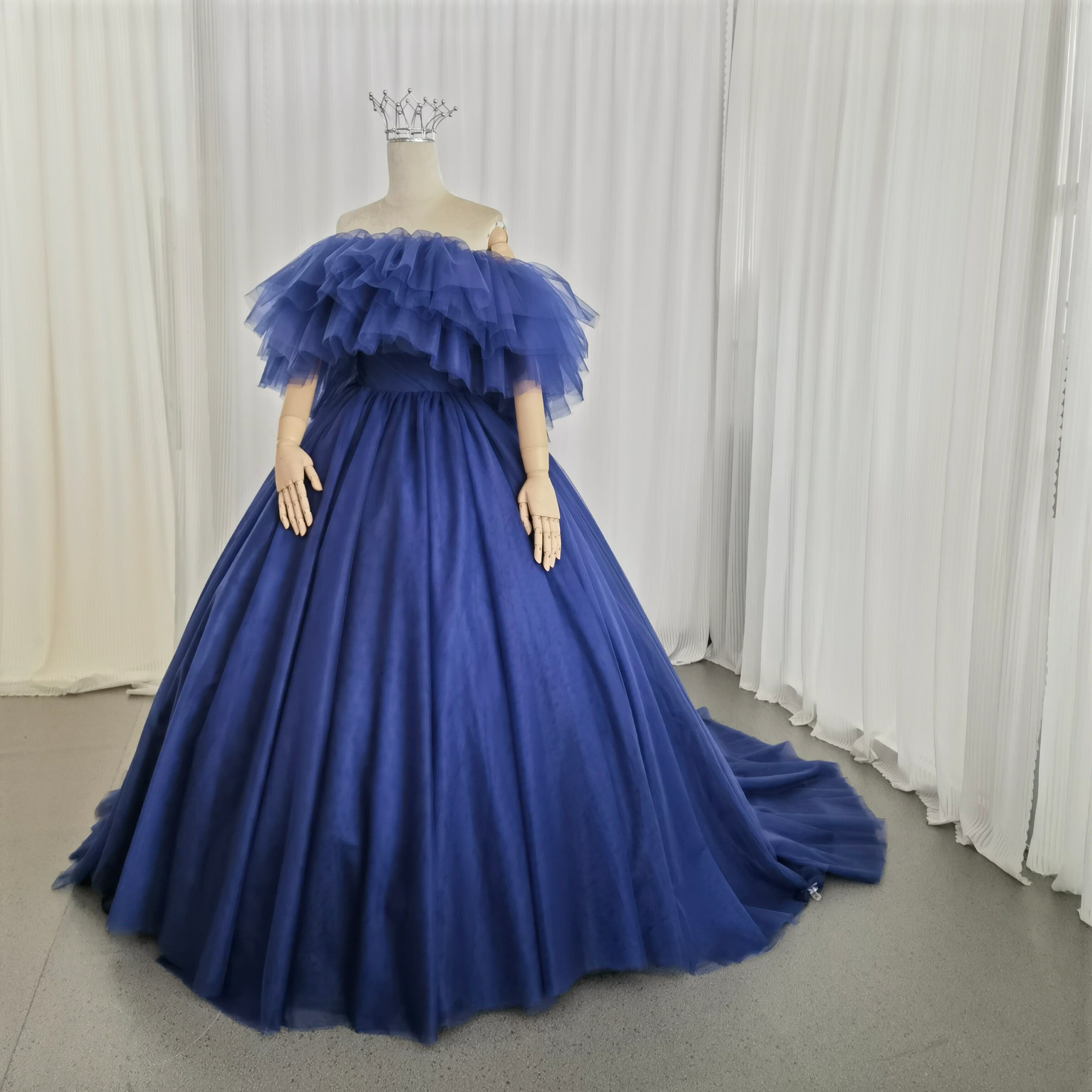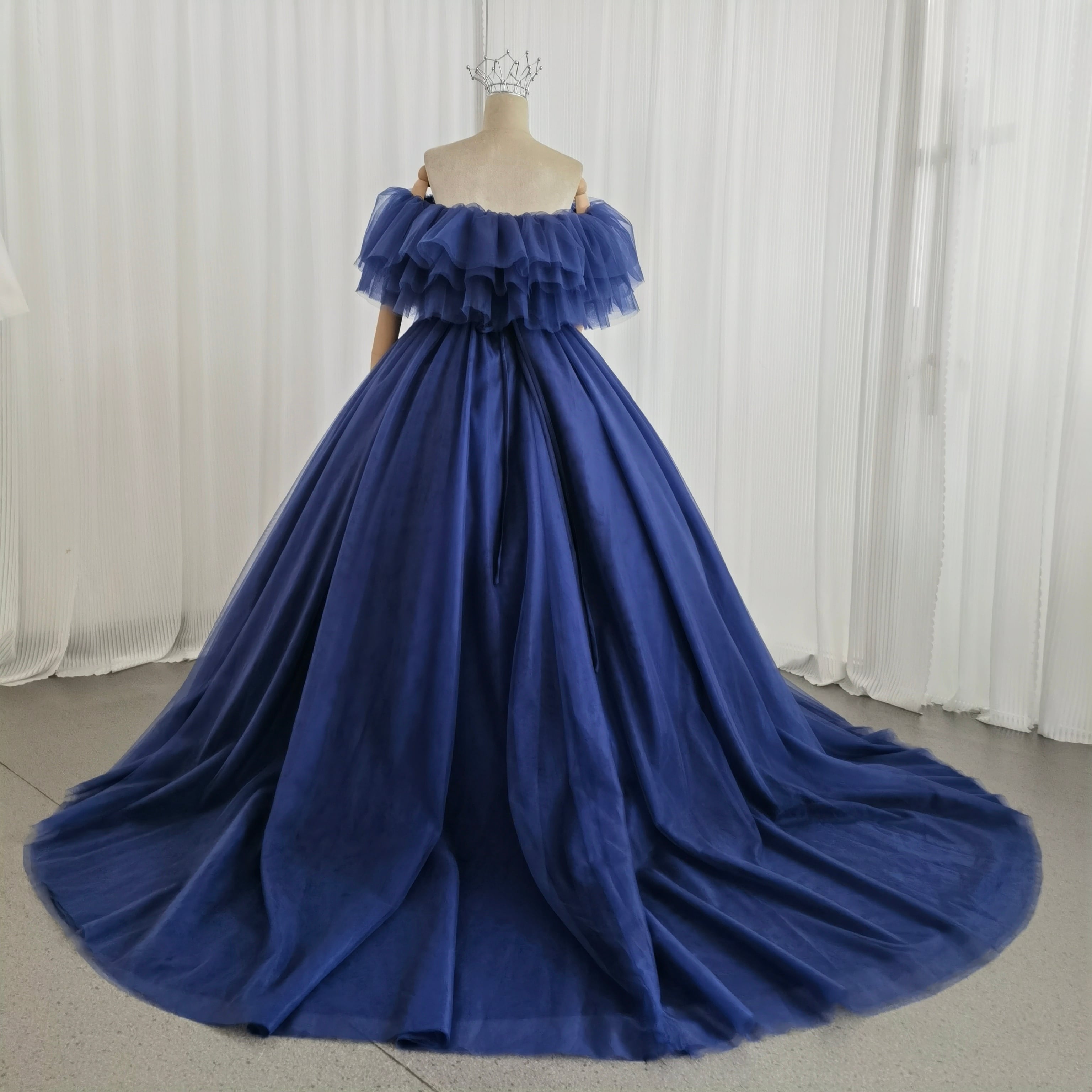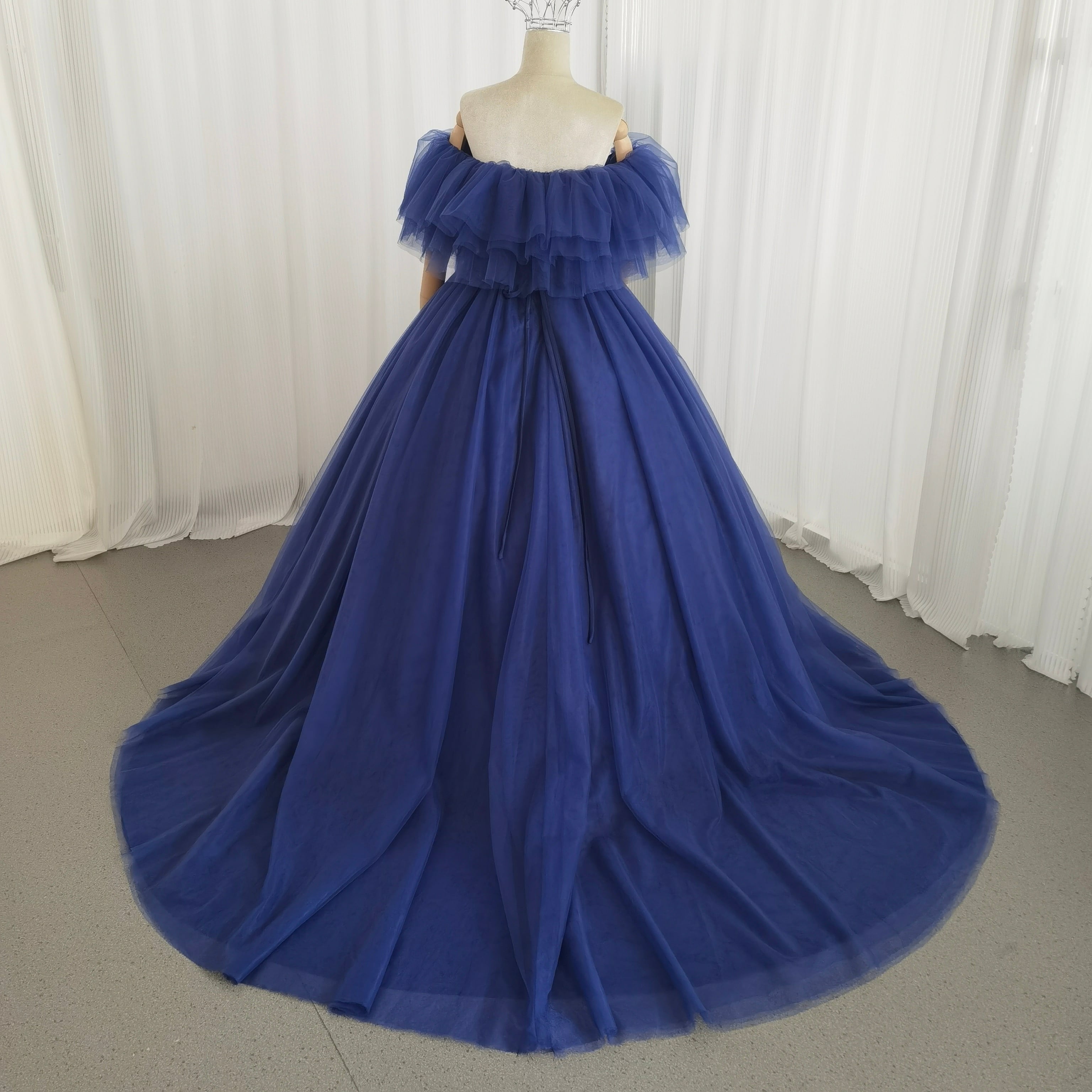 輝きな光彩を放つ 青のグラデーション カラードレス 取り外しオフショルダー ソフトチュール プリンセスライン フレアスカート結婚式/披露宴