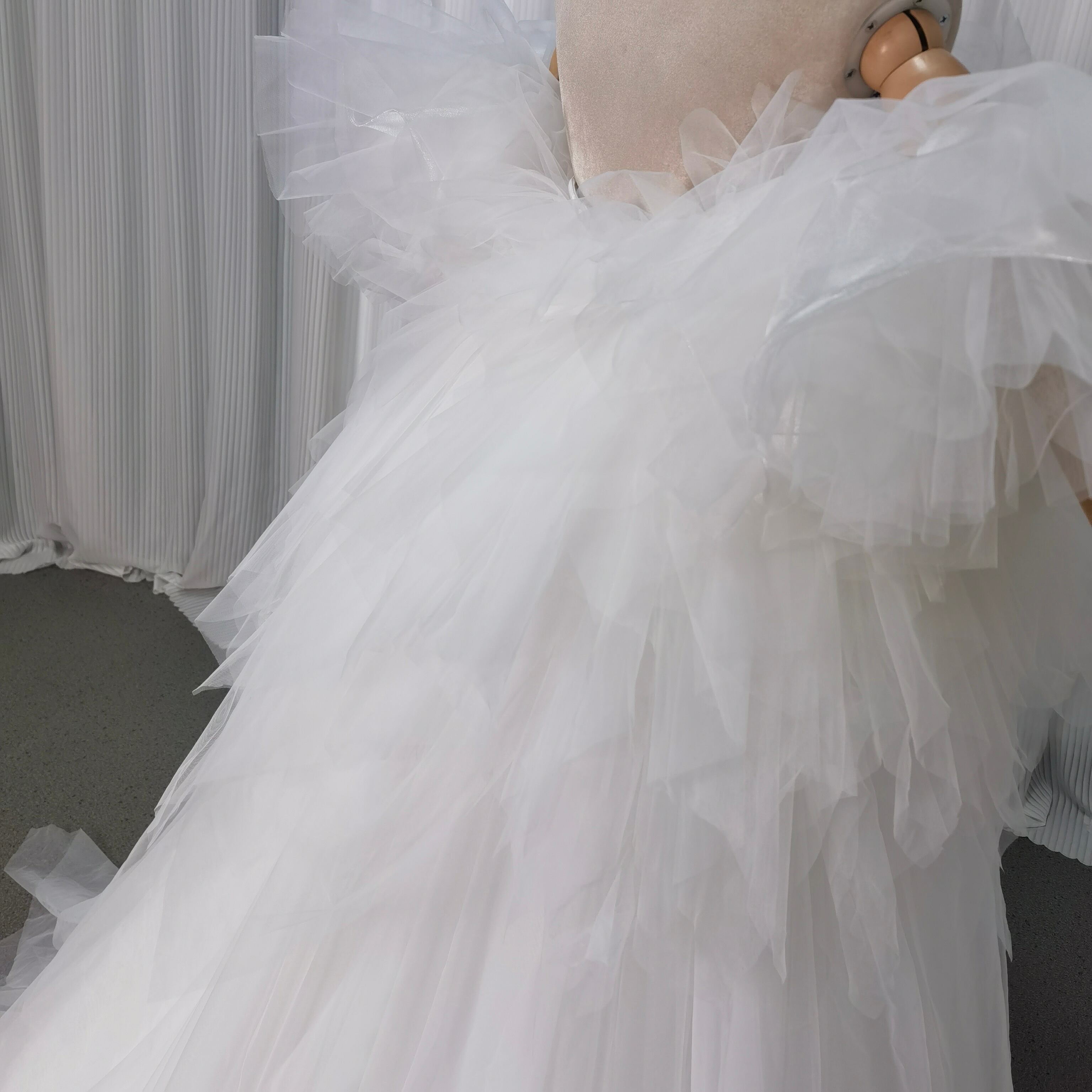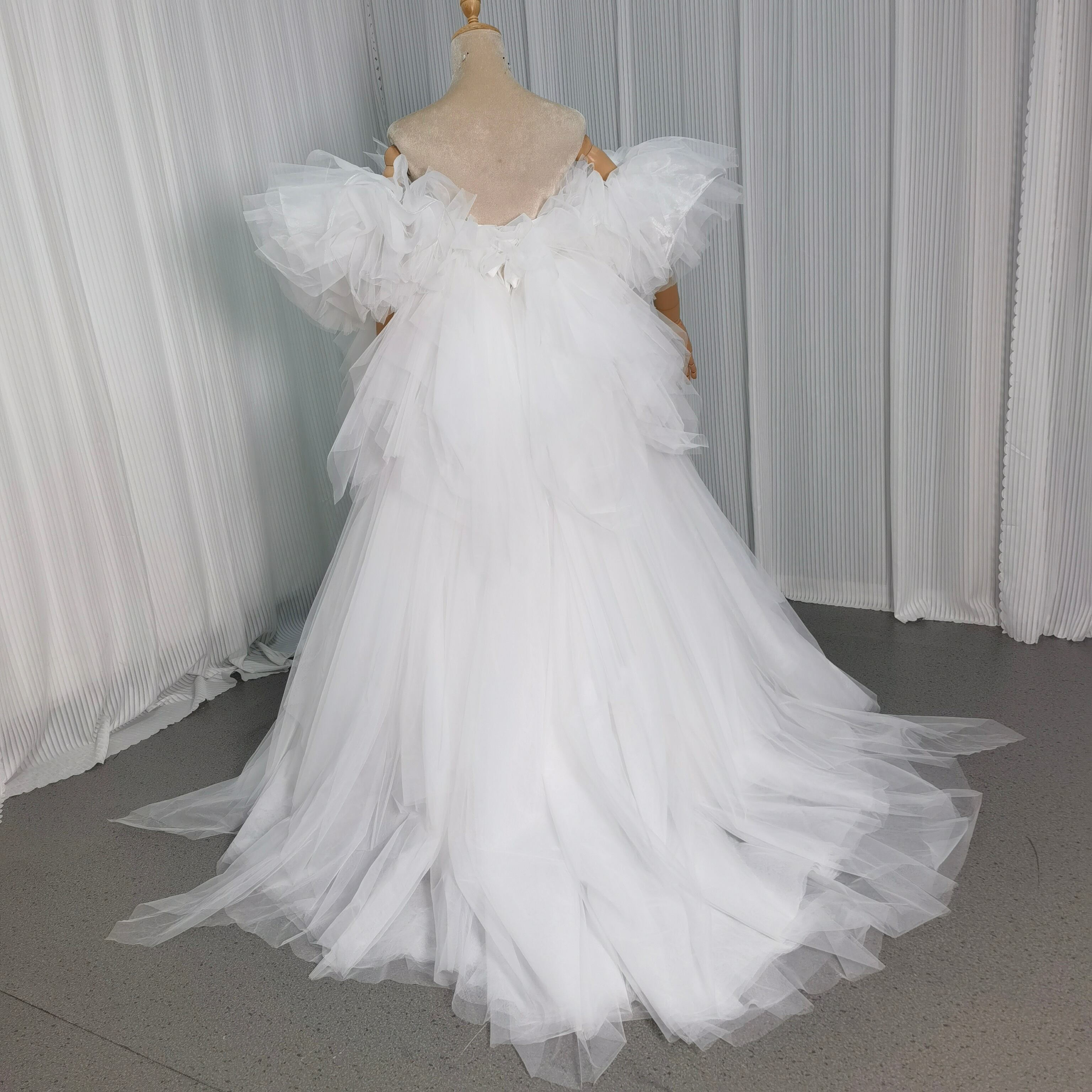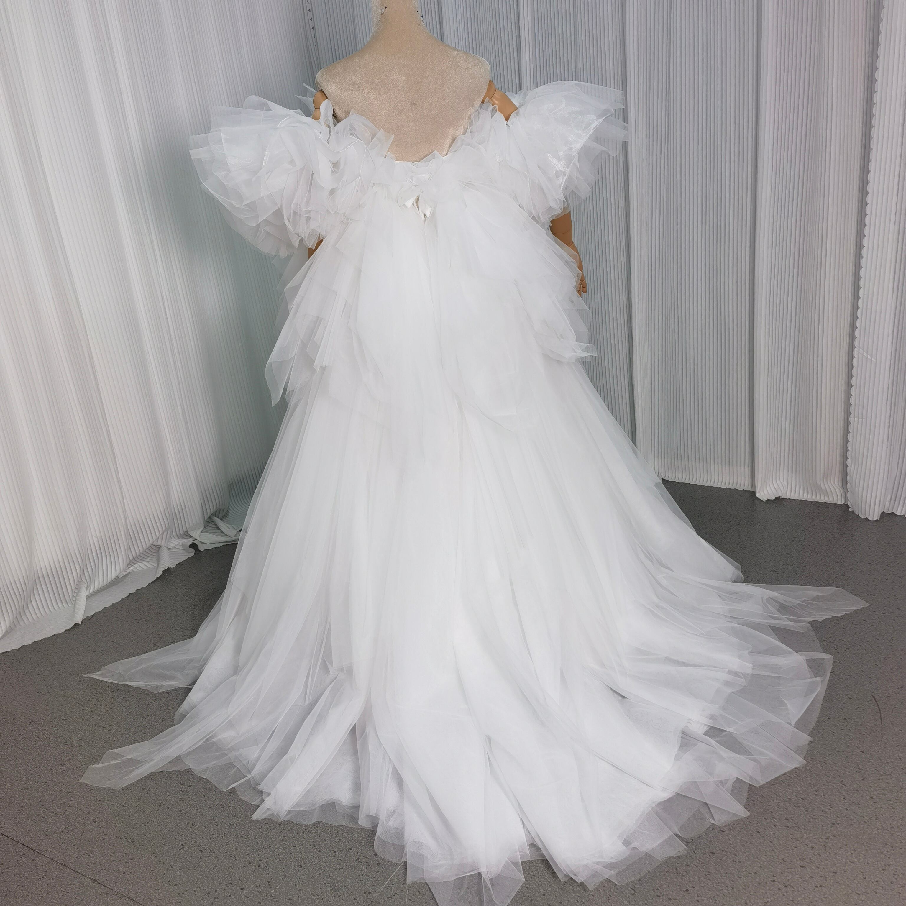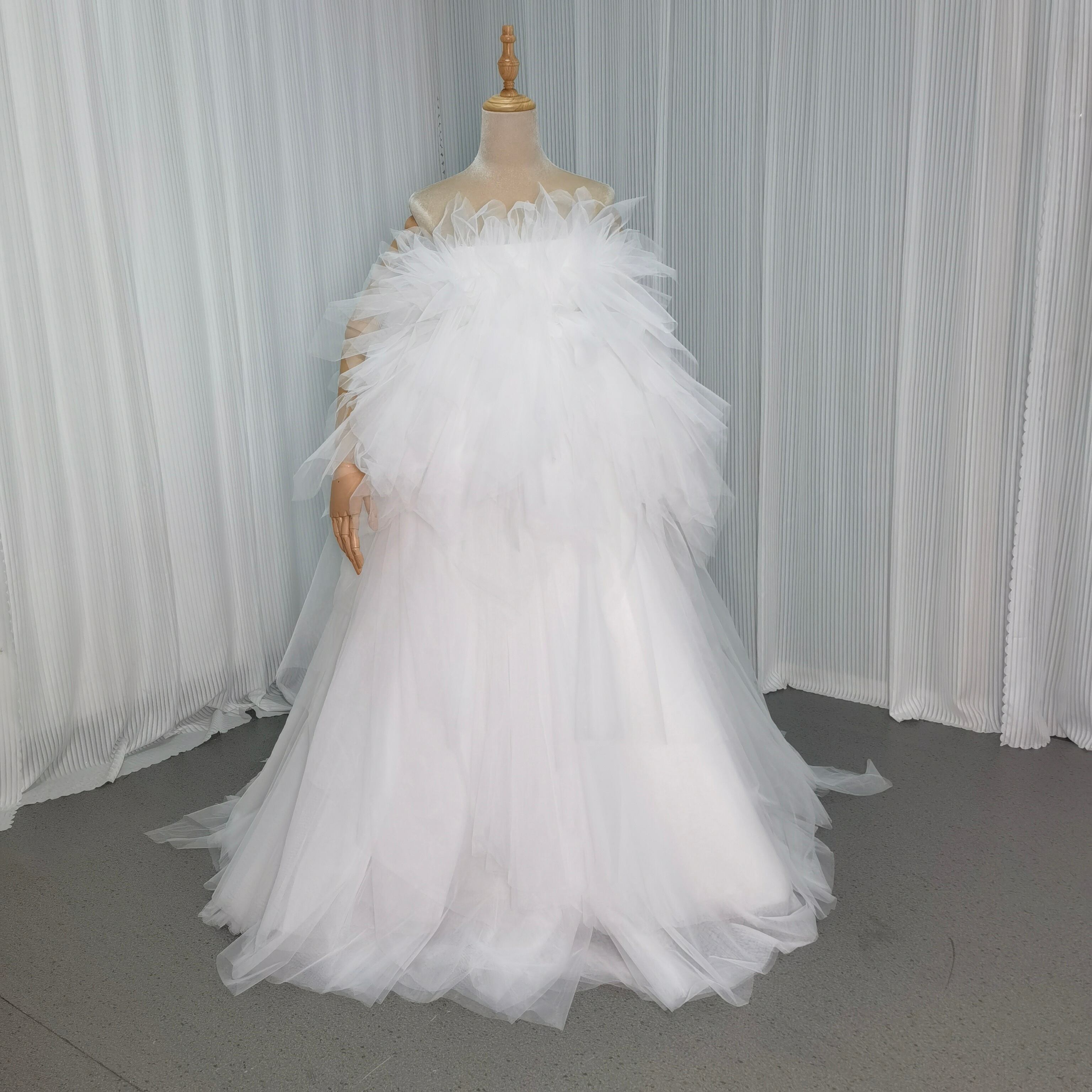 ホワイト もこもこ カラードレス チュールドレス フリルオフショルダー お色直しふわふわ アシメドレス