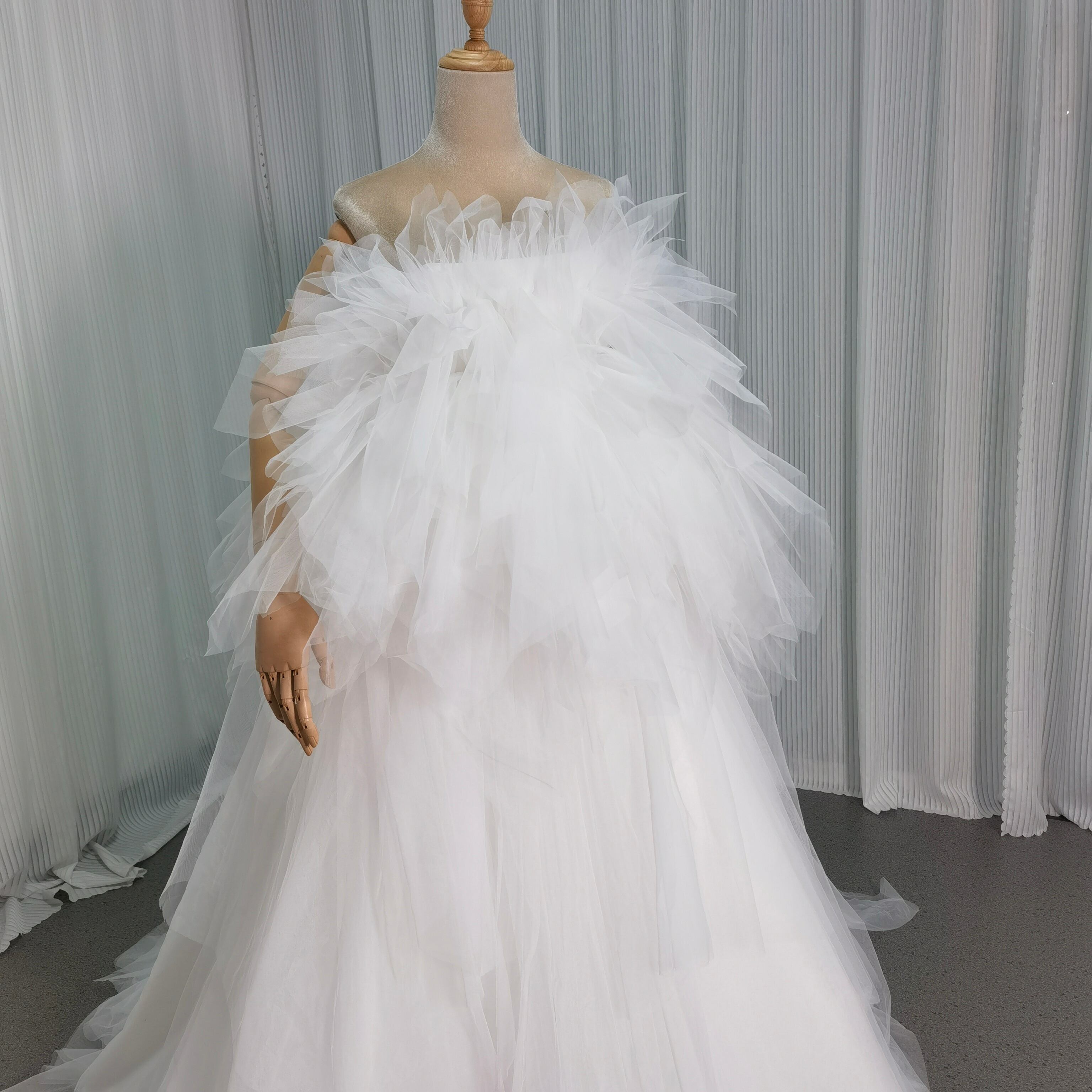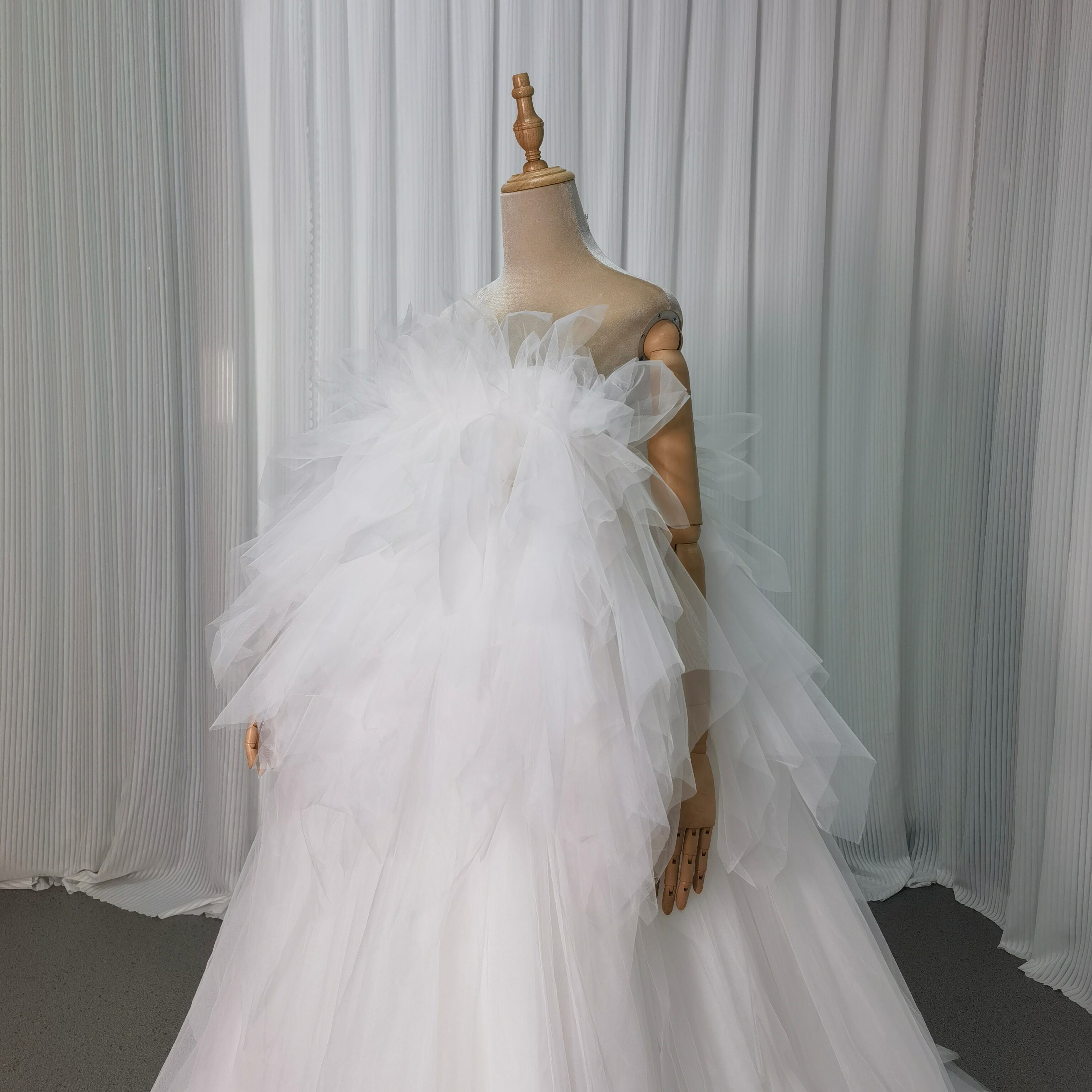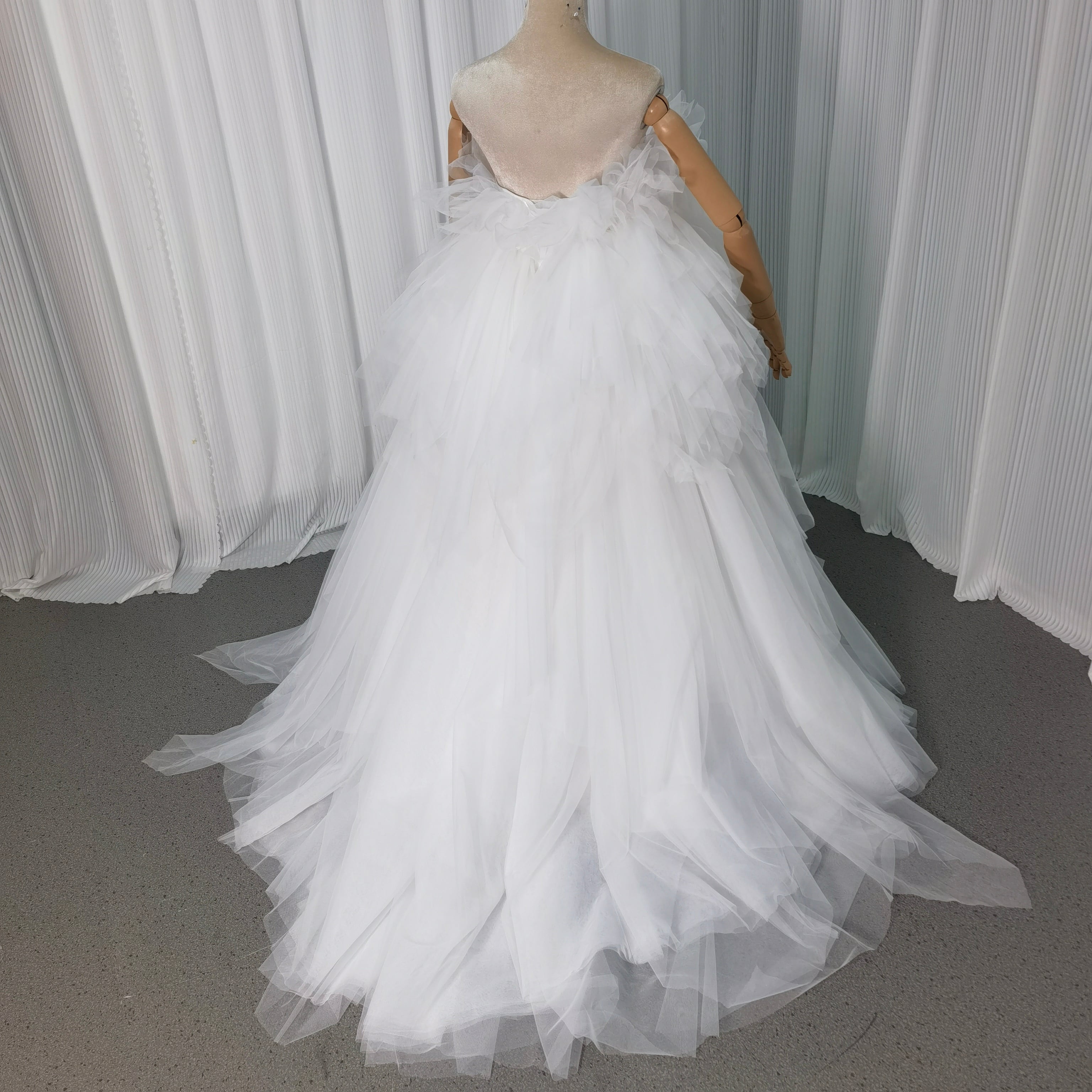 ホワイト もこもこ ベアトップ カラードレス チュールドレス フリルオフショルダー お色直しふわふわ アシメドレス
