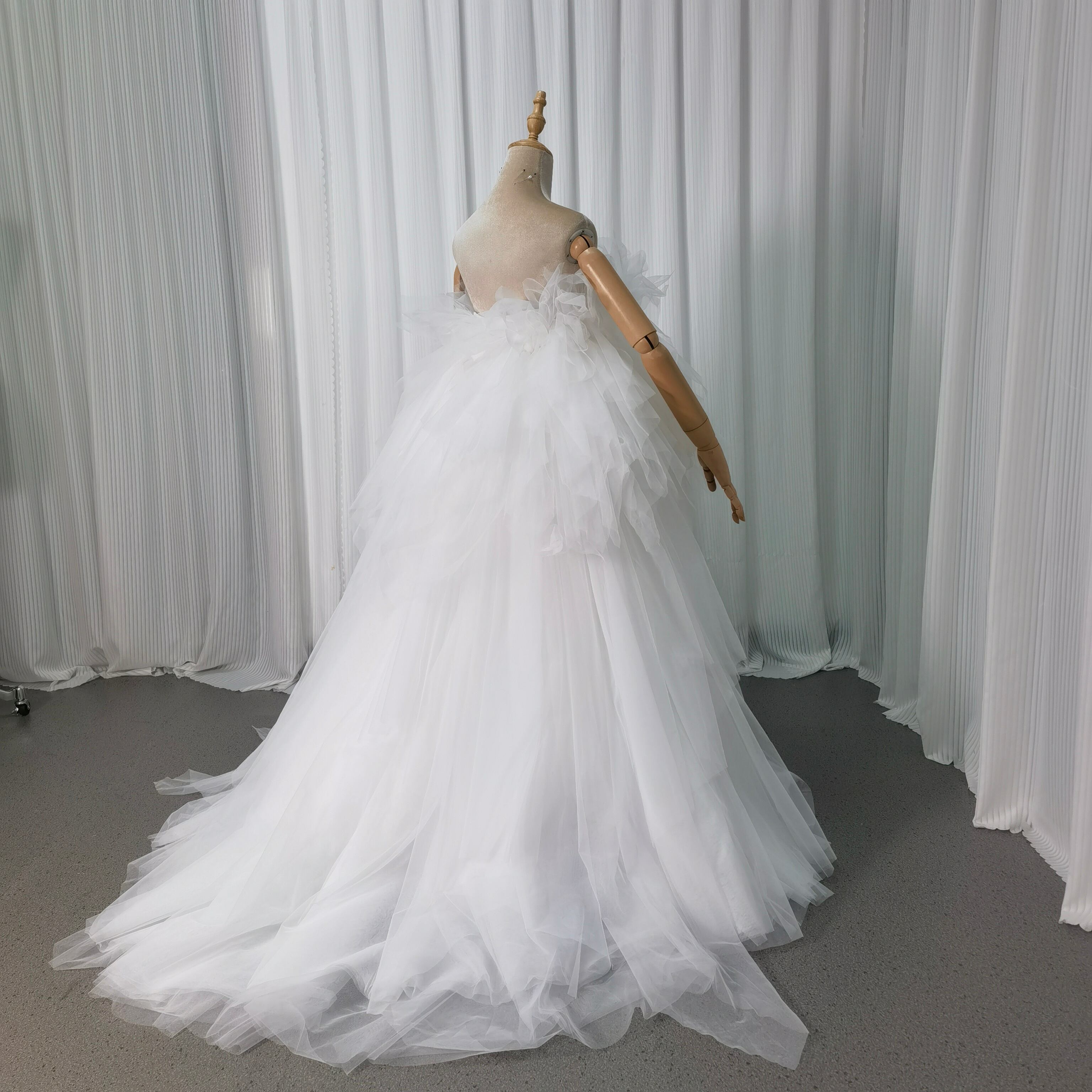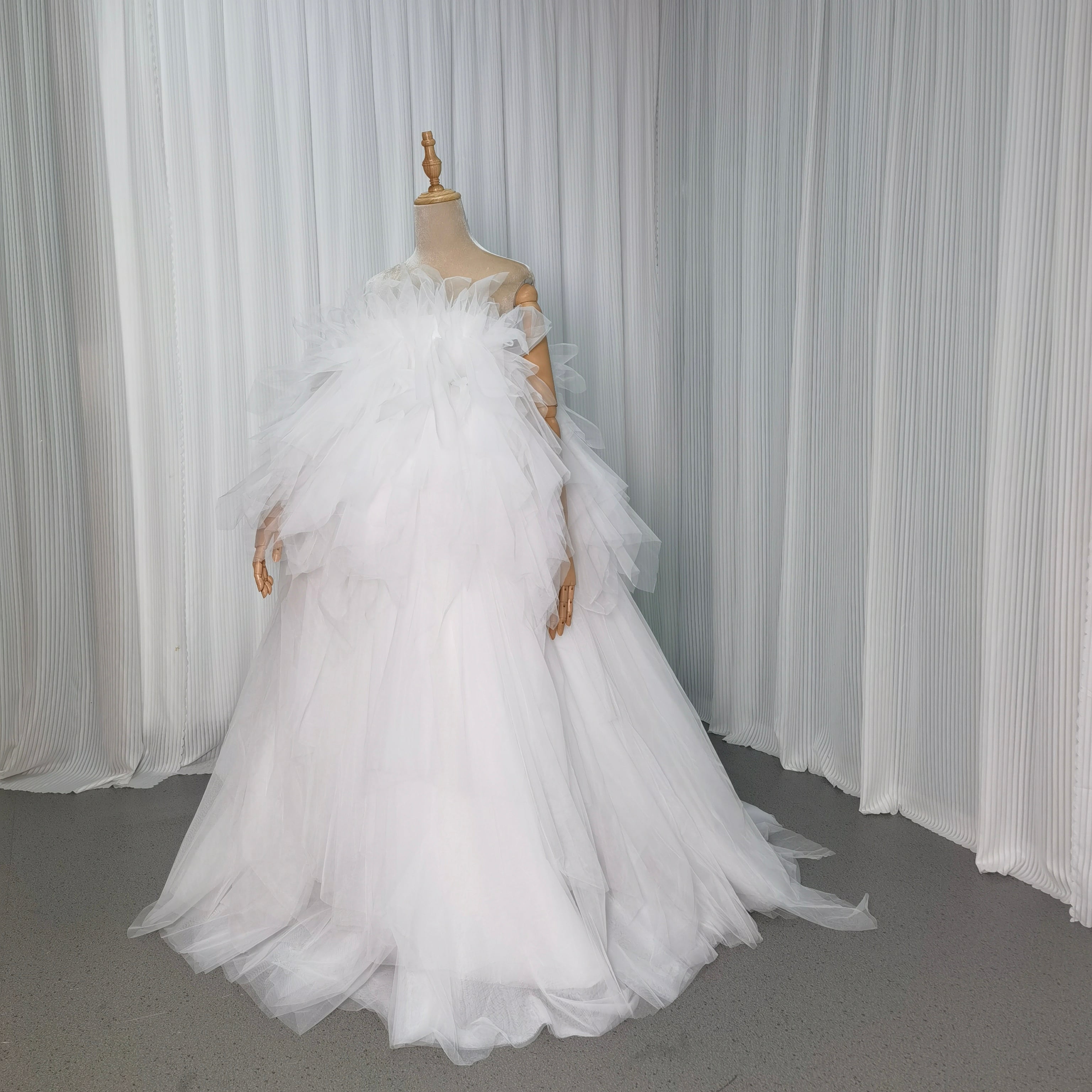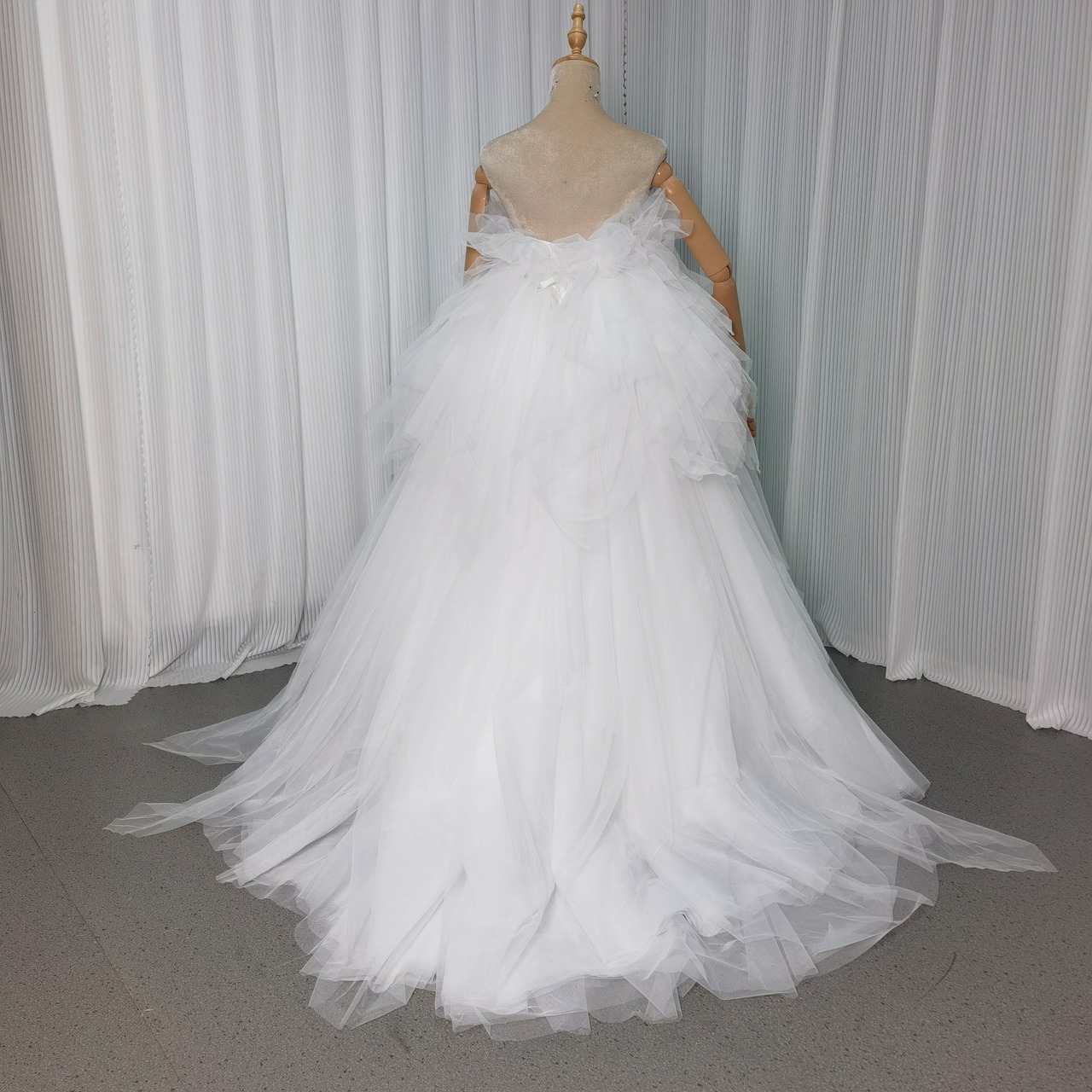 ホワイト もこもこ ベアトップ カラードレス チュールドレス フリルオフショルダー お色直しふわふわ アシメドレス