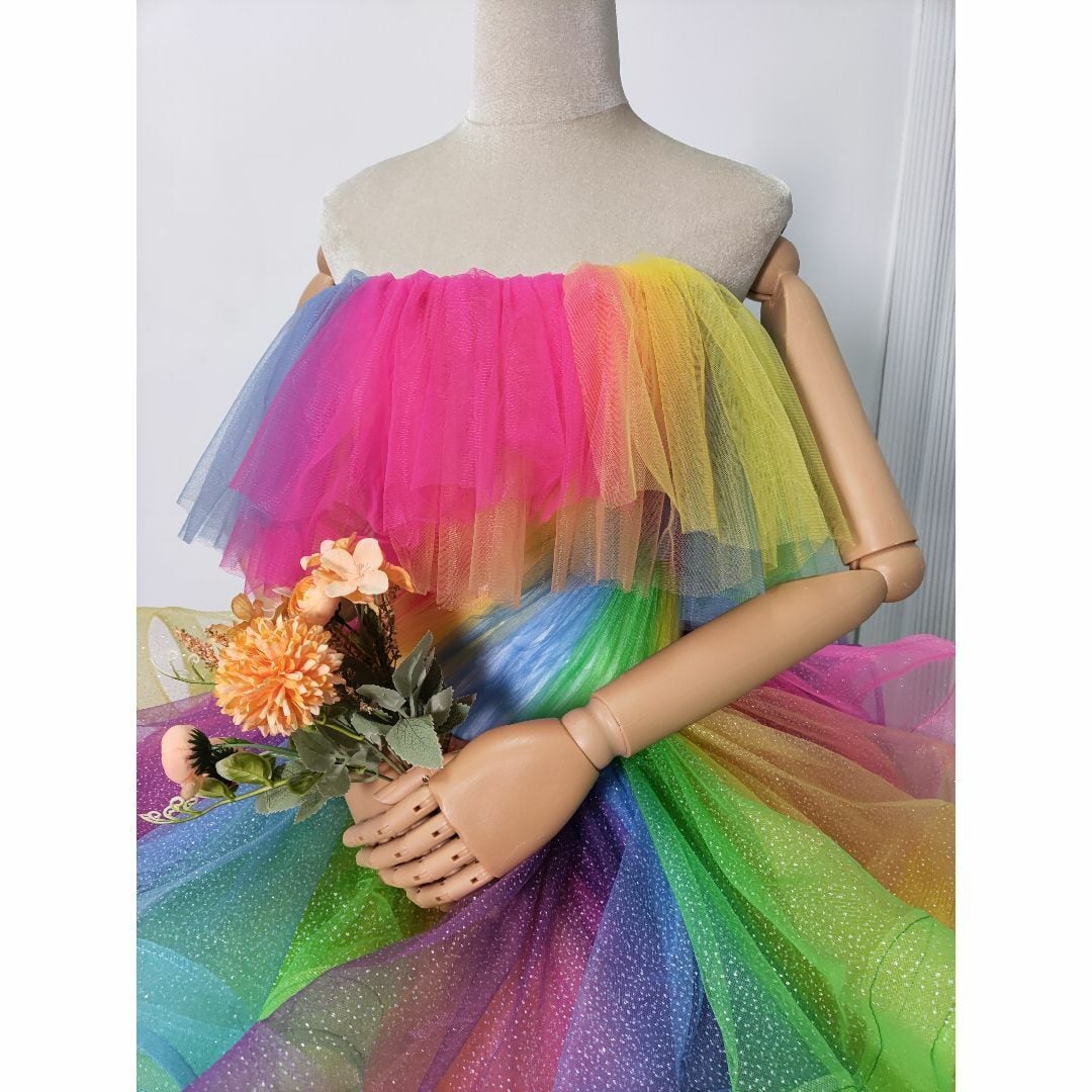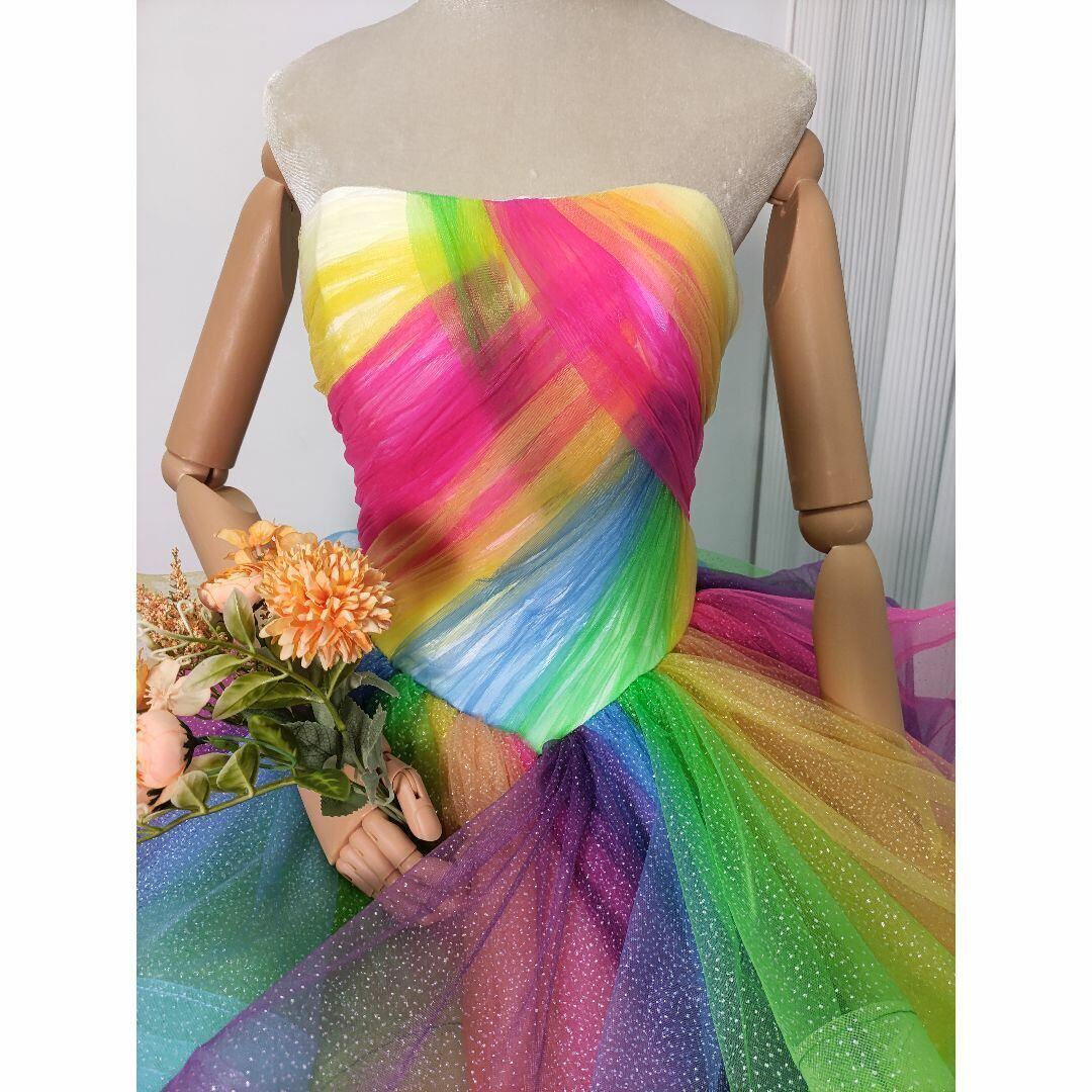 実例写真 !輝きな光彩を放つレインボー キラキラチュール カラードレス ソフトチュール プリンセスライン 結婚式/披露宴