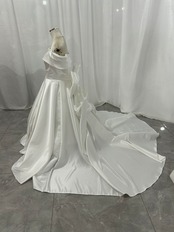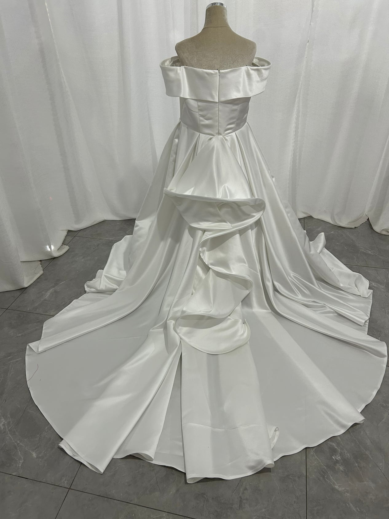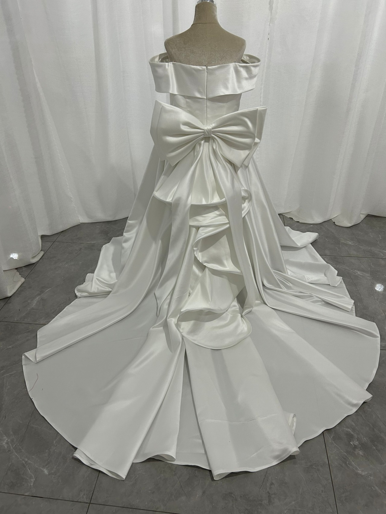 豪華!送料無料!オフホワイ オフショルダー ウエディングドレスふっくら柔らかなバックリボン 花嫁/挙式/前撮り/結婚式