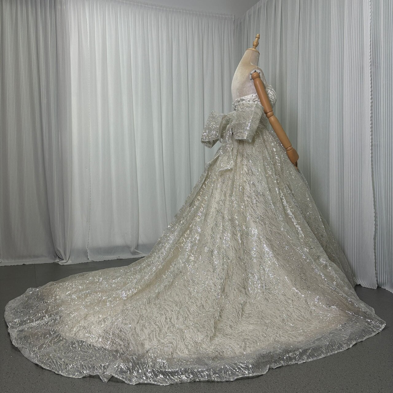 実例写真 !輝きな光彩を放つ 上品レース ウエディングドレス 華やかなトレーンフレアスカート/結婚式/披露宴