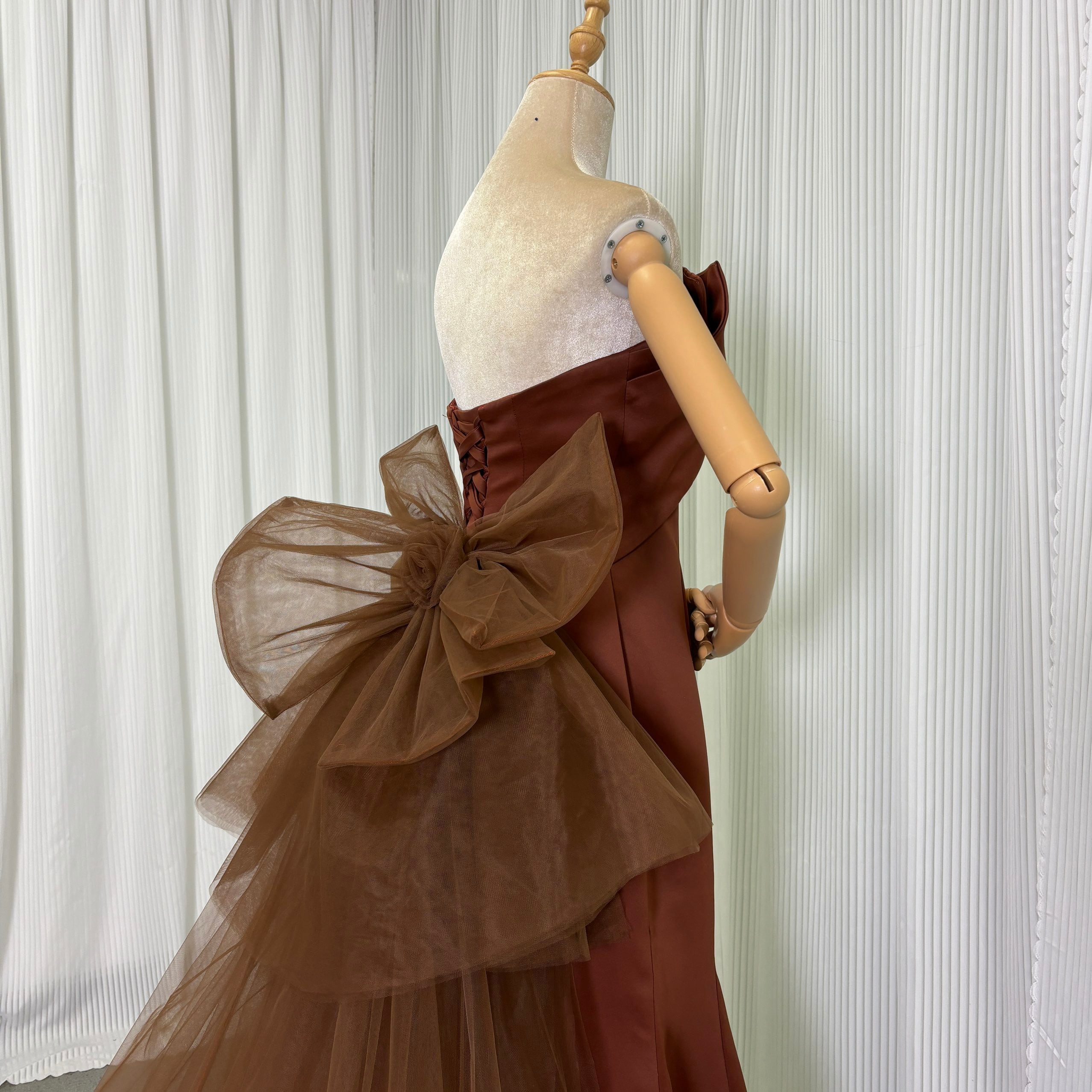 人気上昇!ベアトップ カラードレス 取り外し ふっくら柔らかなバックリボン 結婚式/披露宴