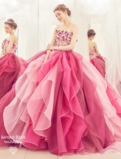 輝きな光彩を放つ ミックスカラ カラードレス チュールドレス ティアードのドレス お色直しふわふわ もこもこドレス