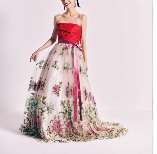 人気上昇! ベアトップ 上品レース カラードレス ソフトチュール 結婚式/披露宴