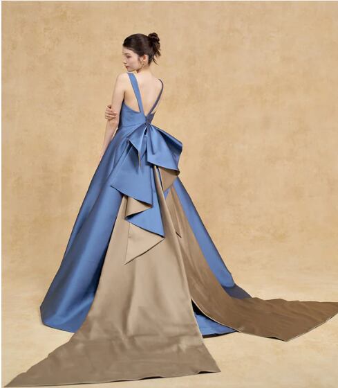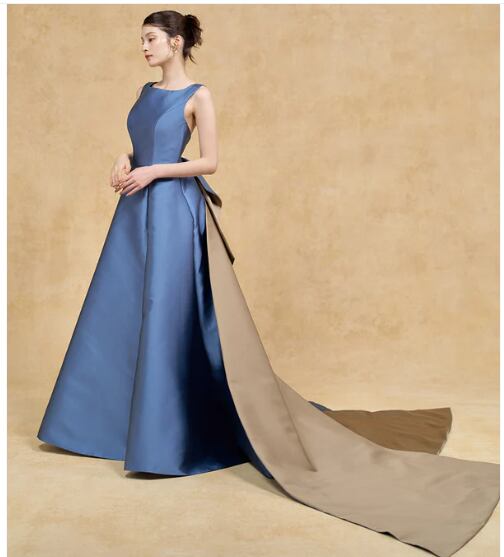 人気上昇!青 カラードレス 柔らかく重ねたチュールスカート ソフトチュール 結婚式/披露宴