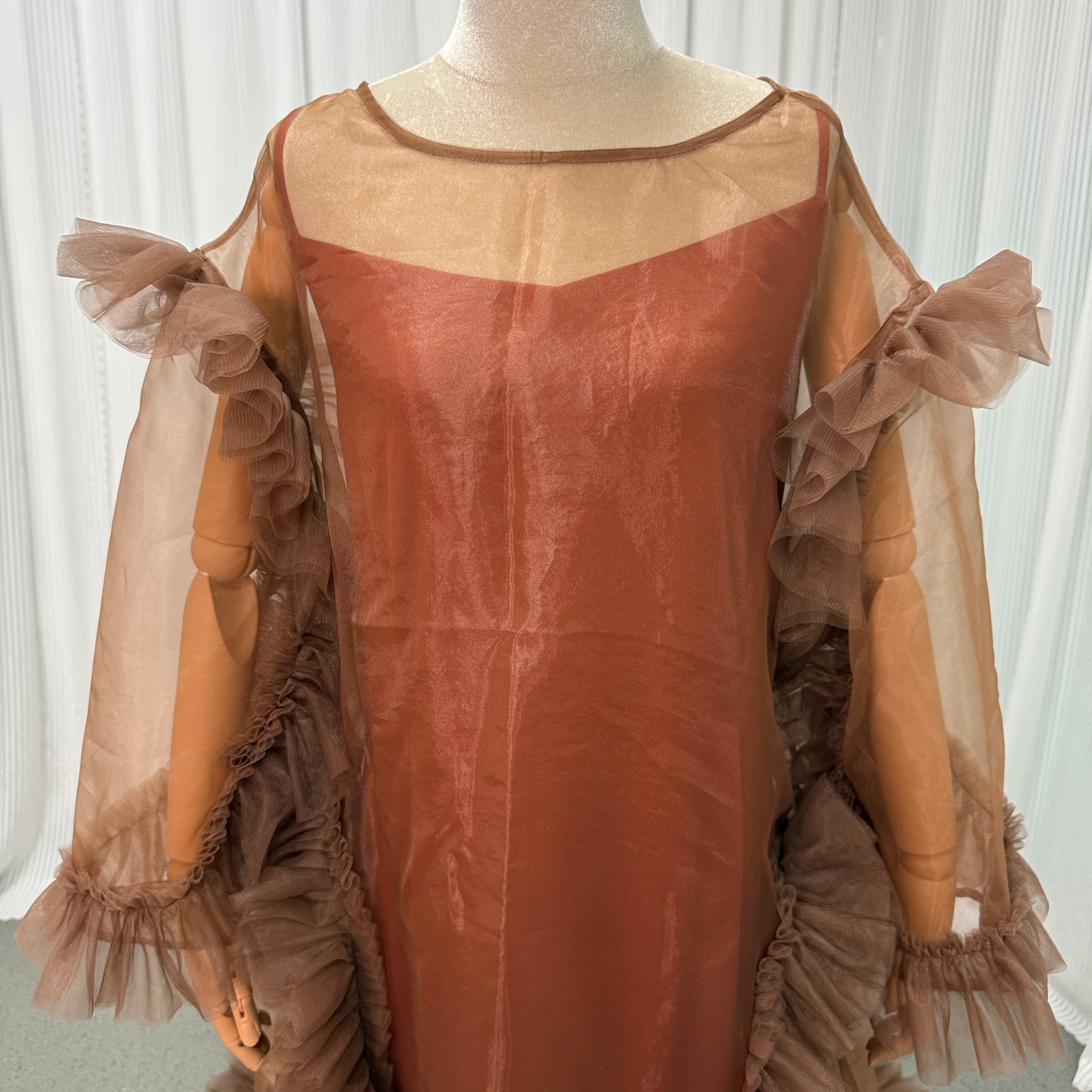 美品!送料無料!テラコッタ色 大きいサイズ キャミソール カラードレス + ケープ風もこもこドレス 抜群のおしゃれ見え 2点セット 前撮り結婚式