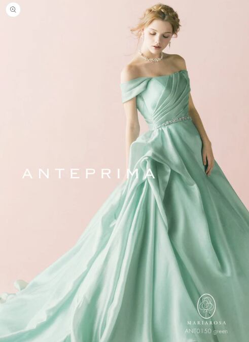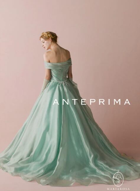 人気上昇! グリーン オフショルダー リボン カラードレス ソフトチュール 結婚式/披露宴