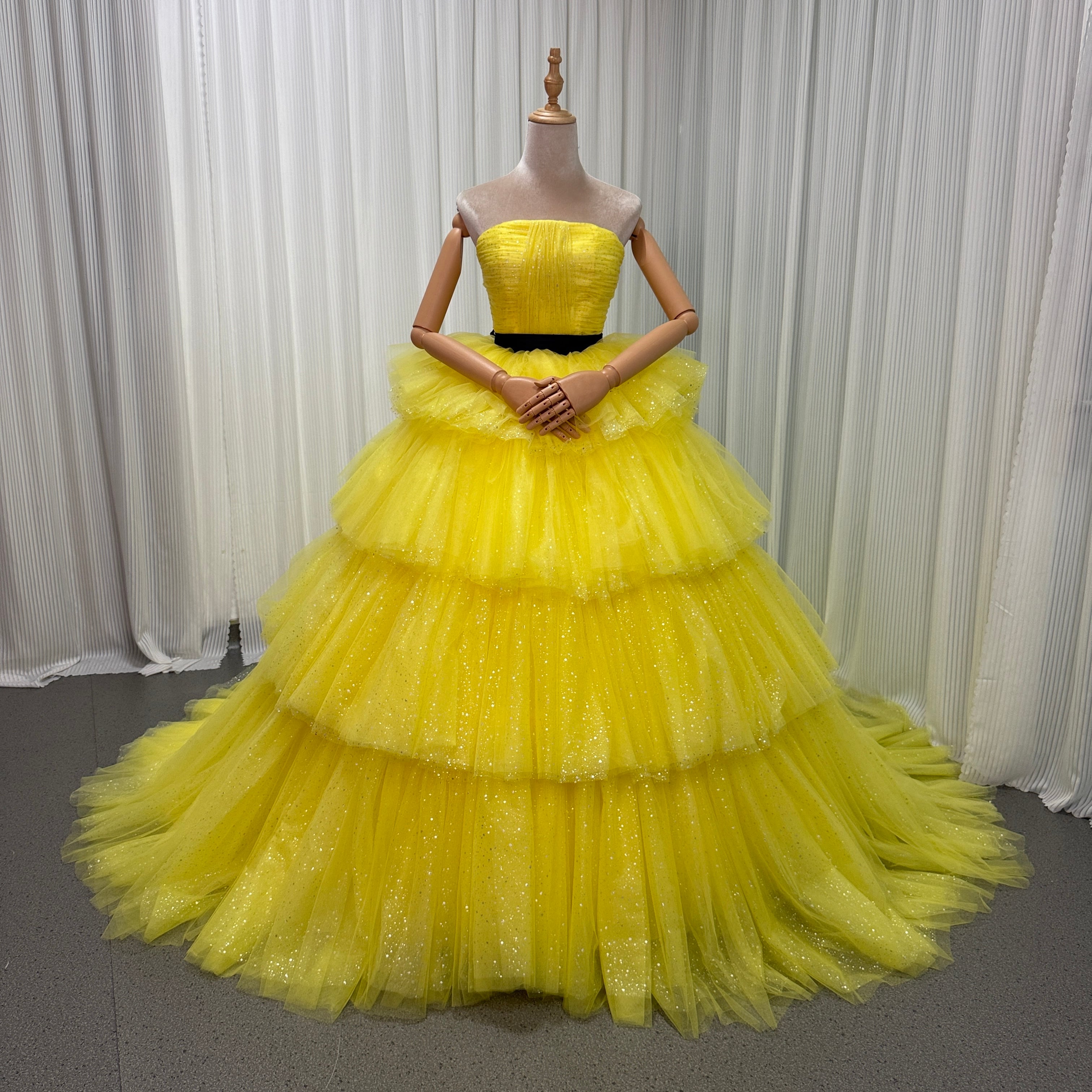 人気上昇!イエロー カラードレス 柔らかく重ねたチュールスカート ソフトチュール人気上昇 コーヒーの色 ふわふわオーバースカート サッシュベルトティアードのド オーバードレス 結婚式 花嫁 挙式 結婚式/披露宴