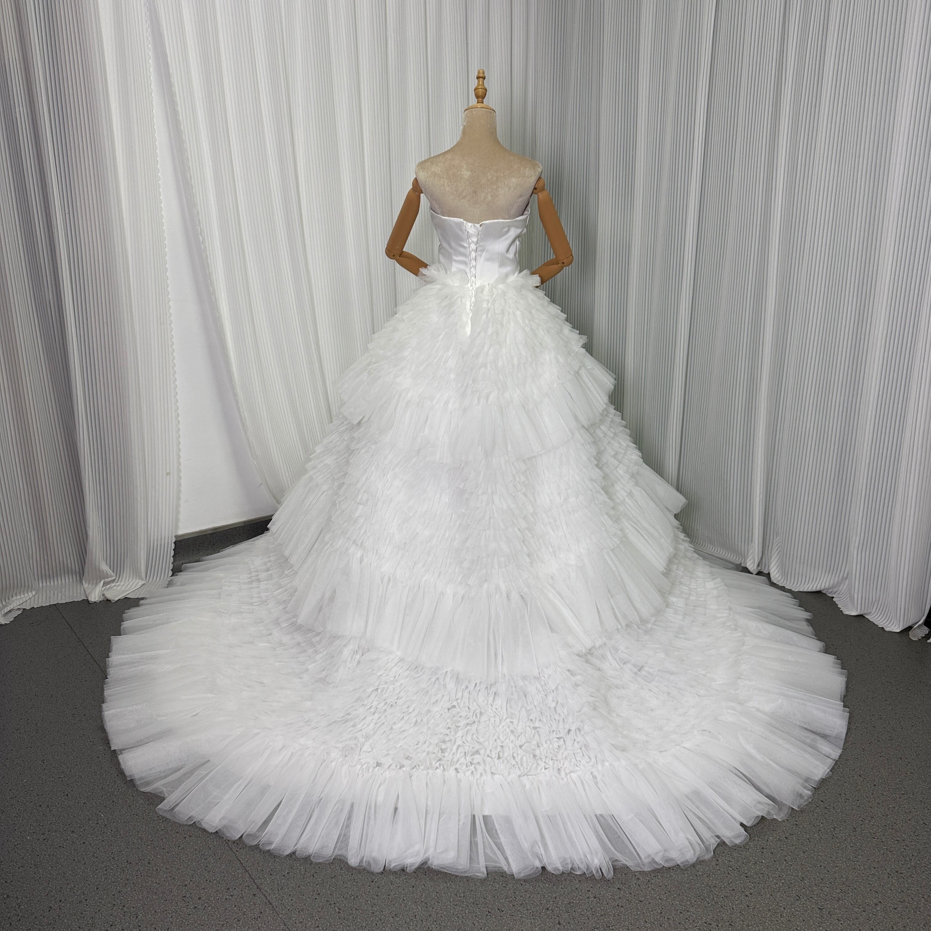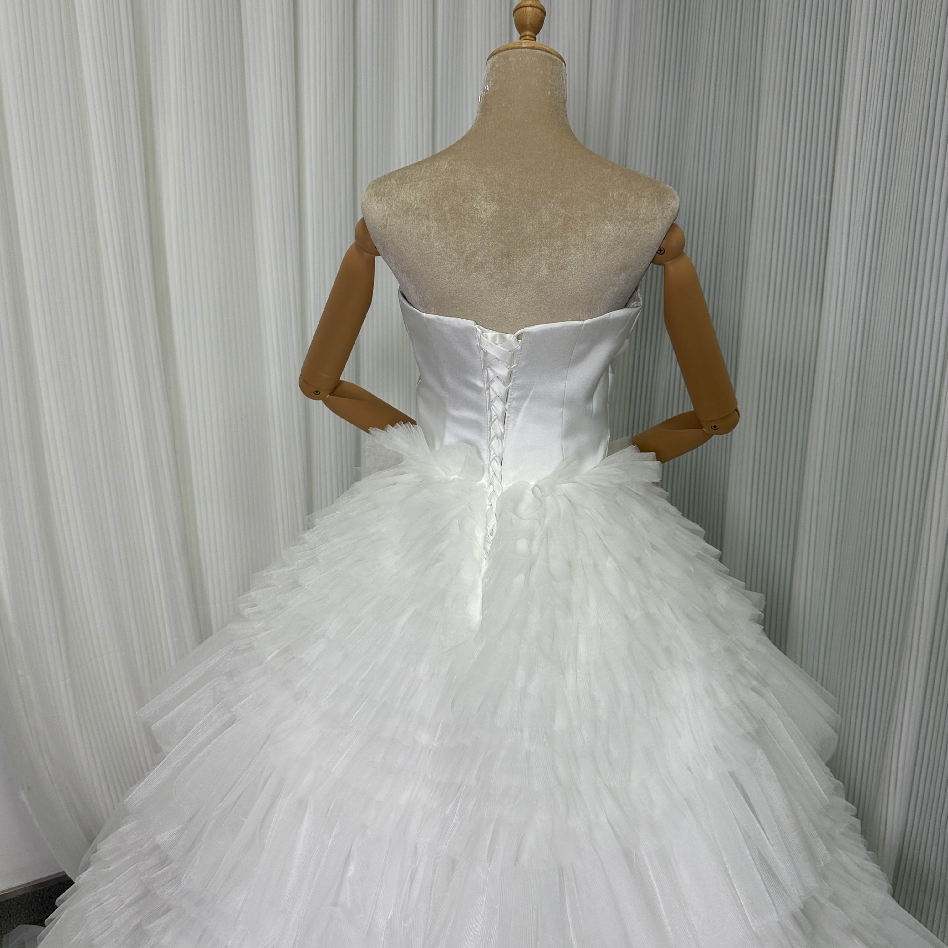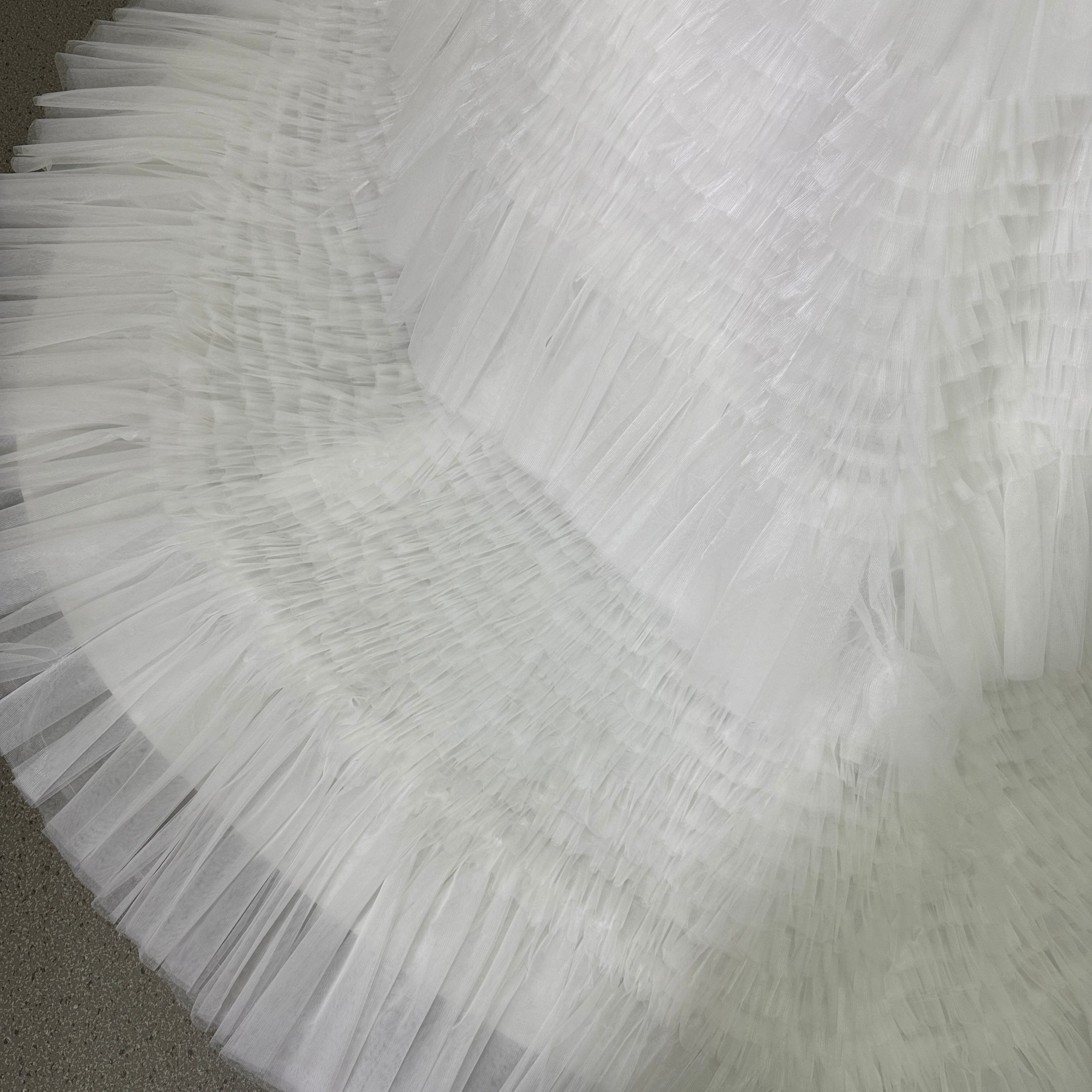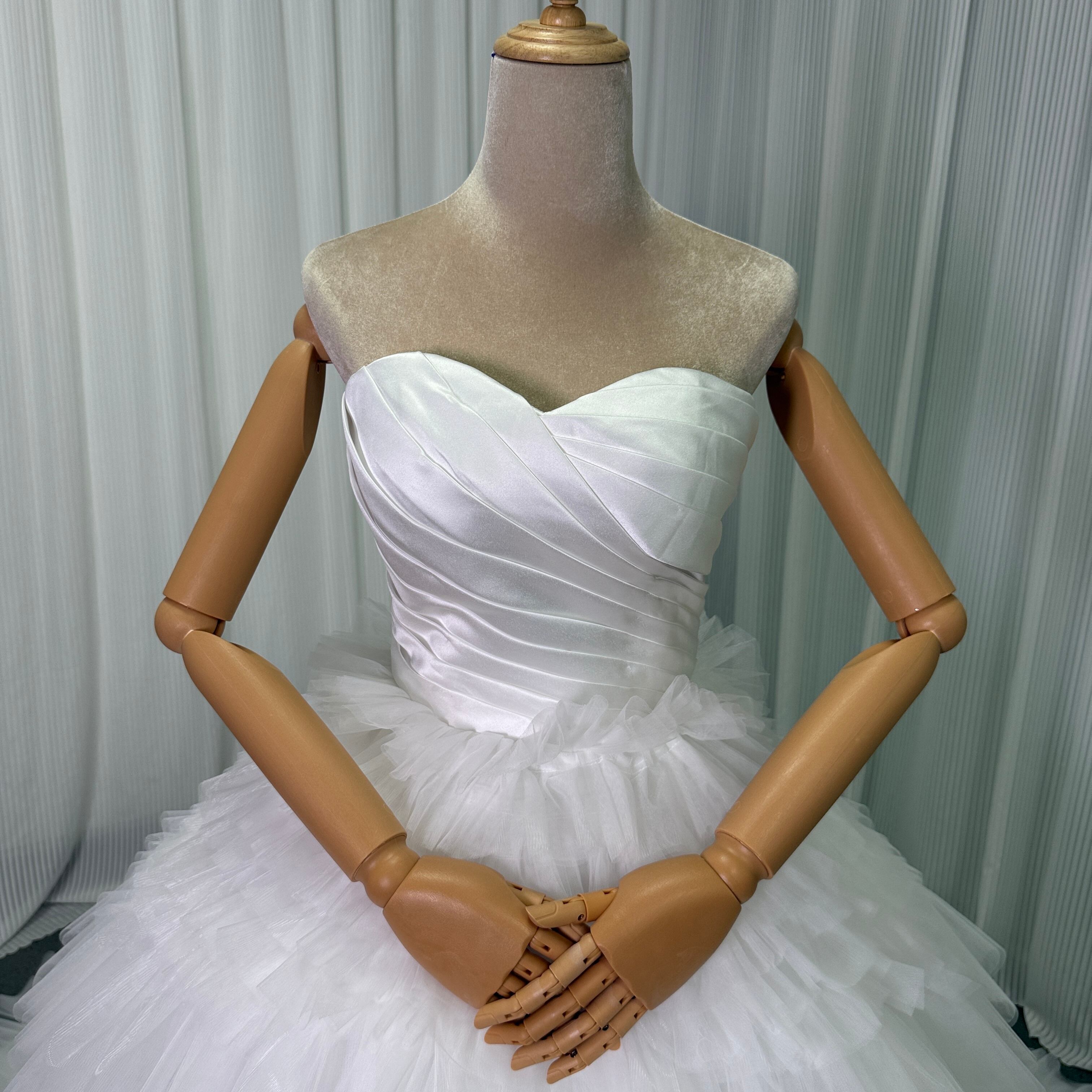 人気上昇! オフホワイト ベアトップ ウエディングドレス 柔らかく重ねたチュールスカート ソフトチュール人気上昇 コーヒーの色 ふわふわオーバースカート サッシュベルトティアードのド オーバードレス 結婚式 花嫁 挙式 結婚式/披露宴