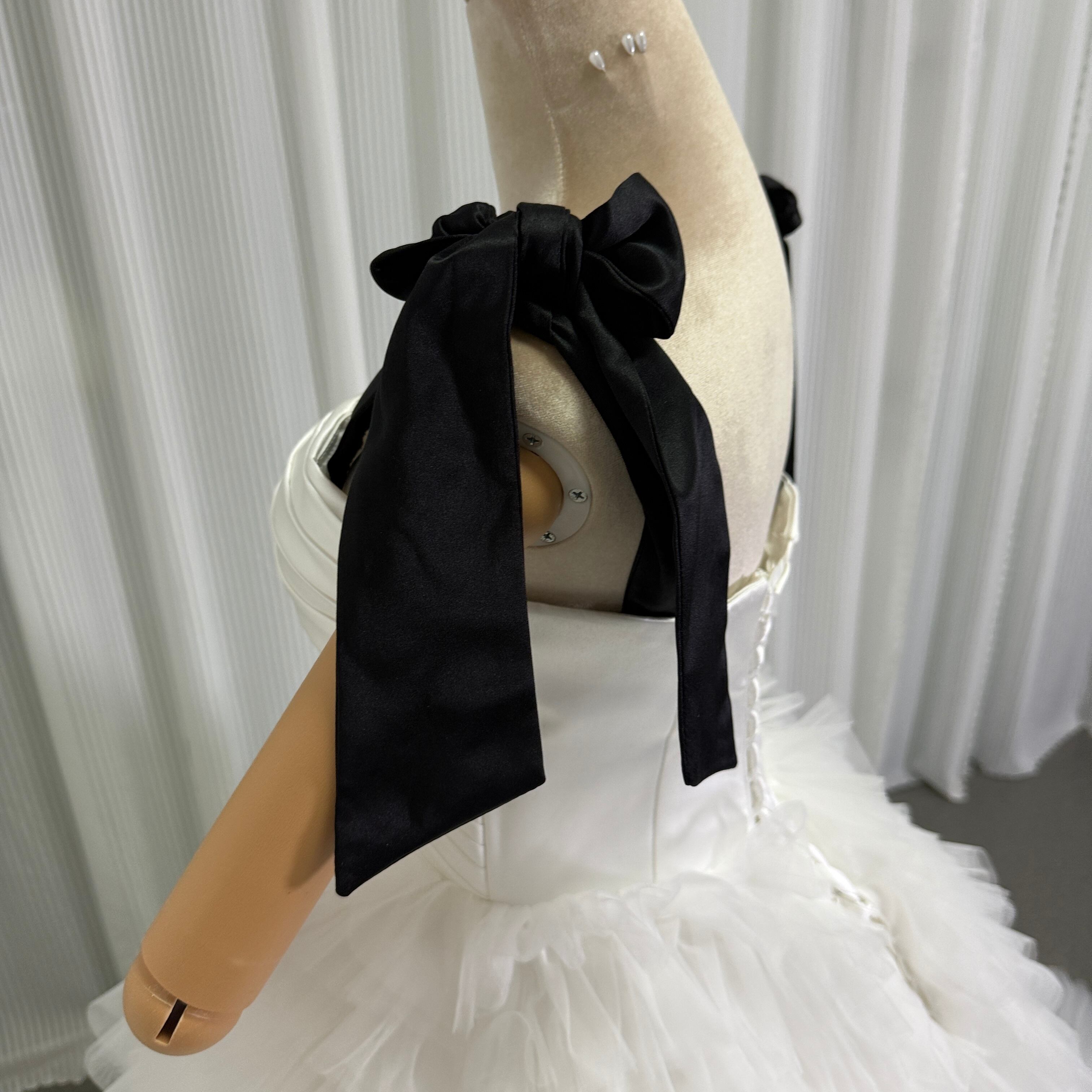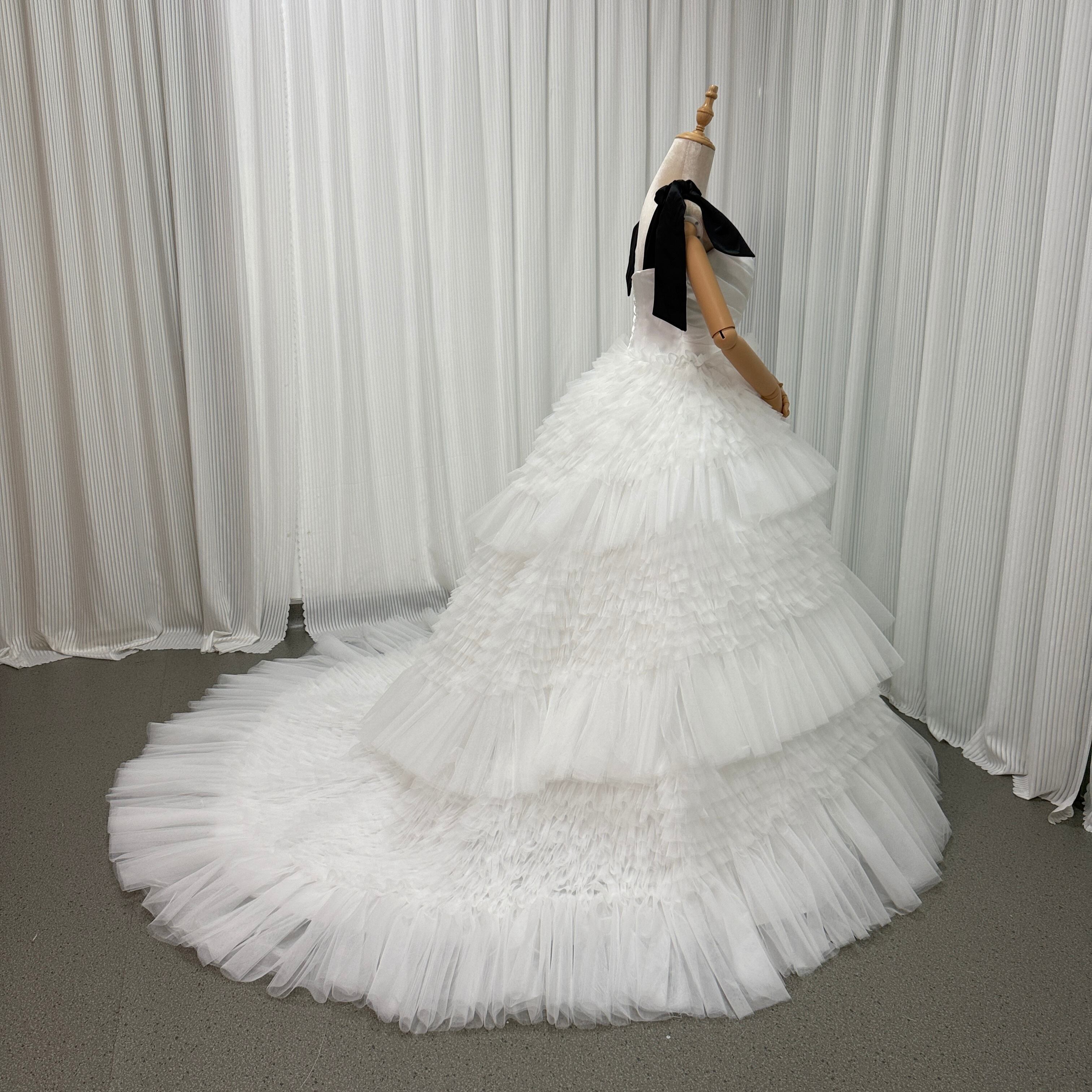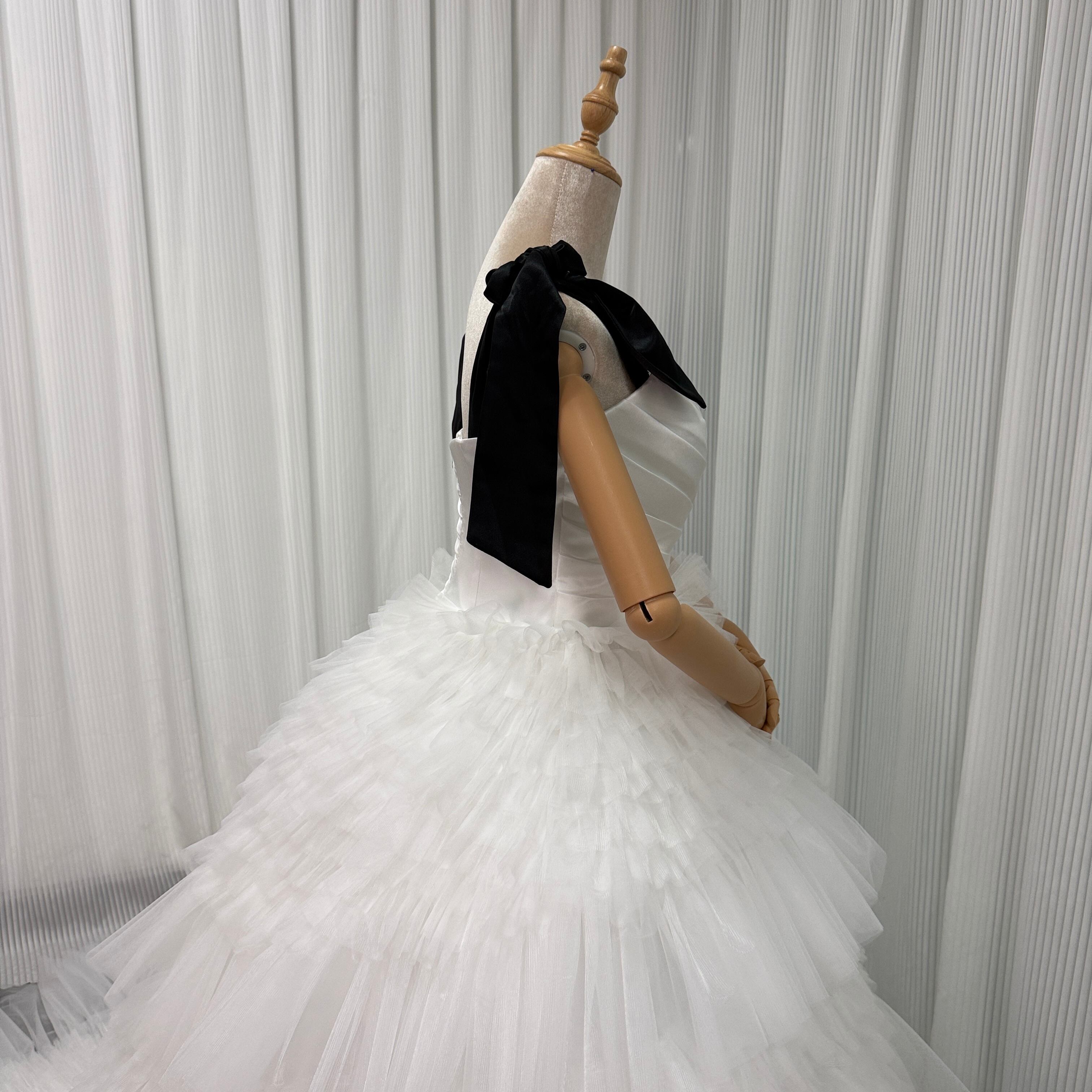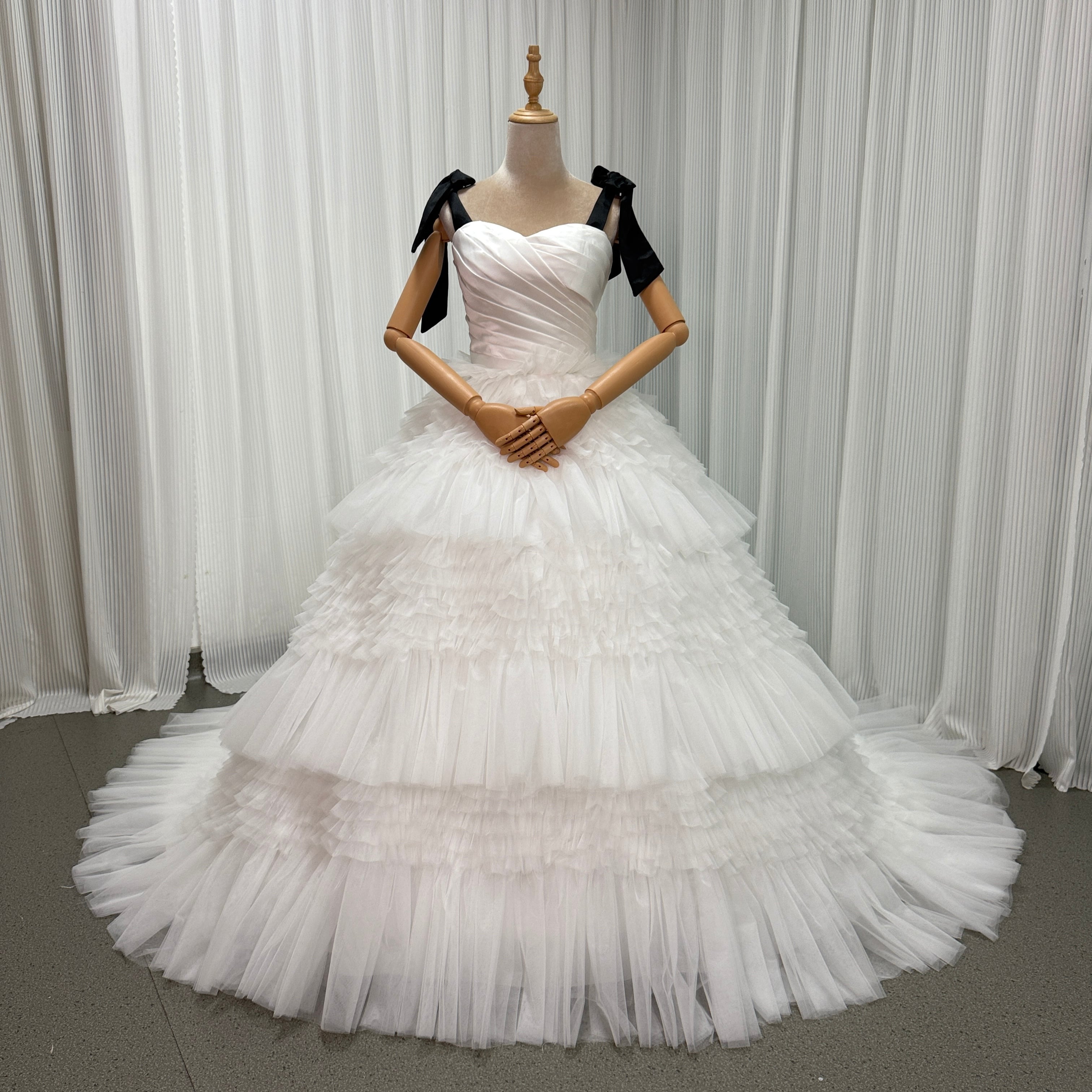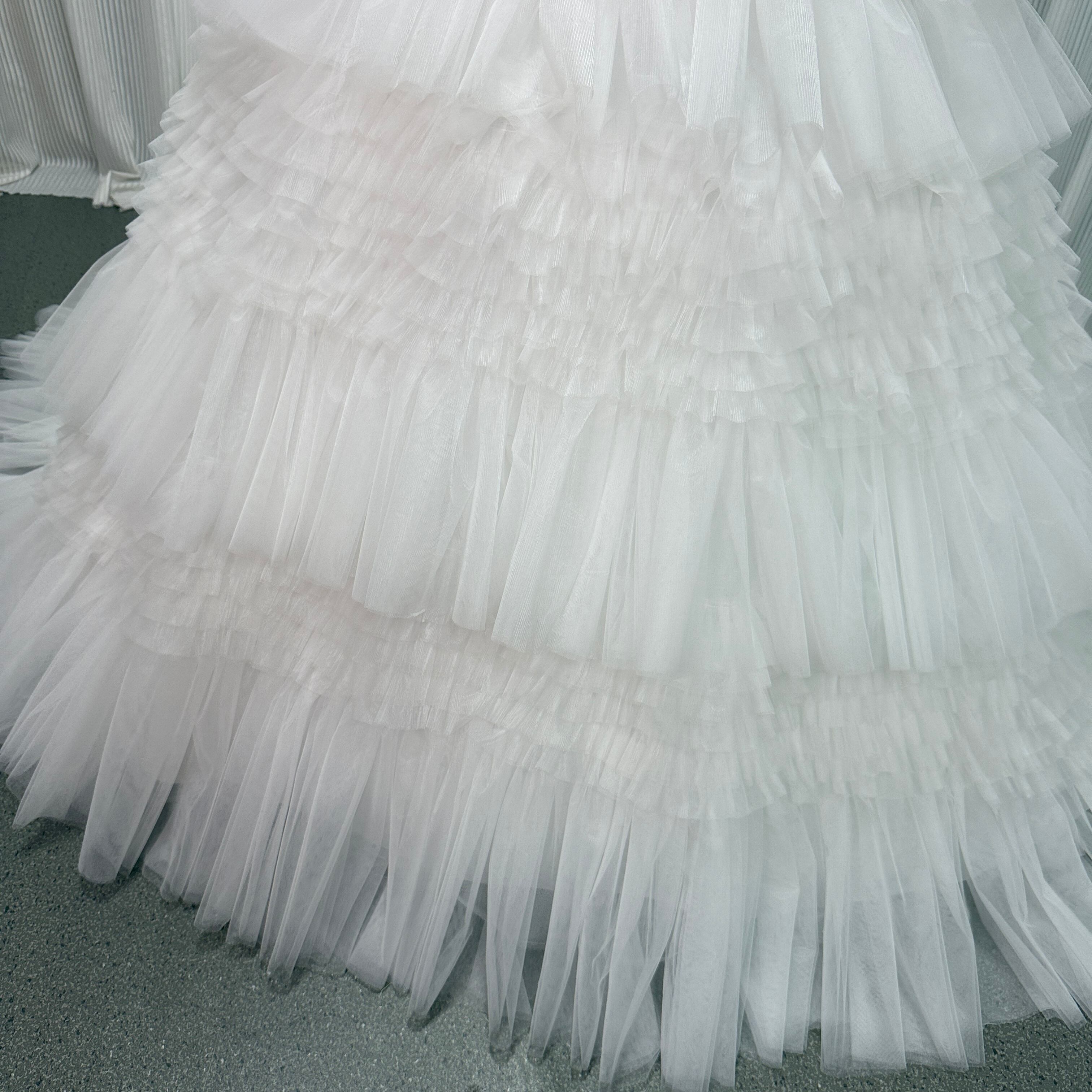 人気上昇! オフホワイトキャミソール ウエディングドレス 柔らかく重ねたチュールスカート ソフトチュール人気上昇 コーヒーの色 ふわふわオーバースカート サッシュベルトティアードのド オーバードレス 結婚式 花嫁 挙式 結婚式/披露宴
