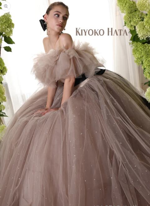 上品! 取り外しオフショルダー カラードレス ソフトチュール ロングトレー柔らかく重ねたチュールスカート 結婚式