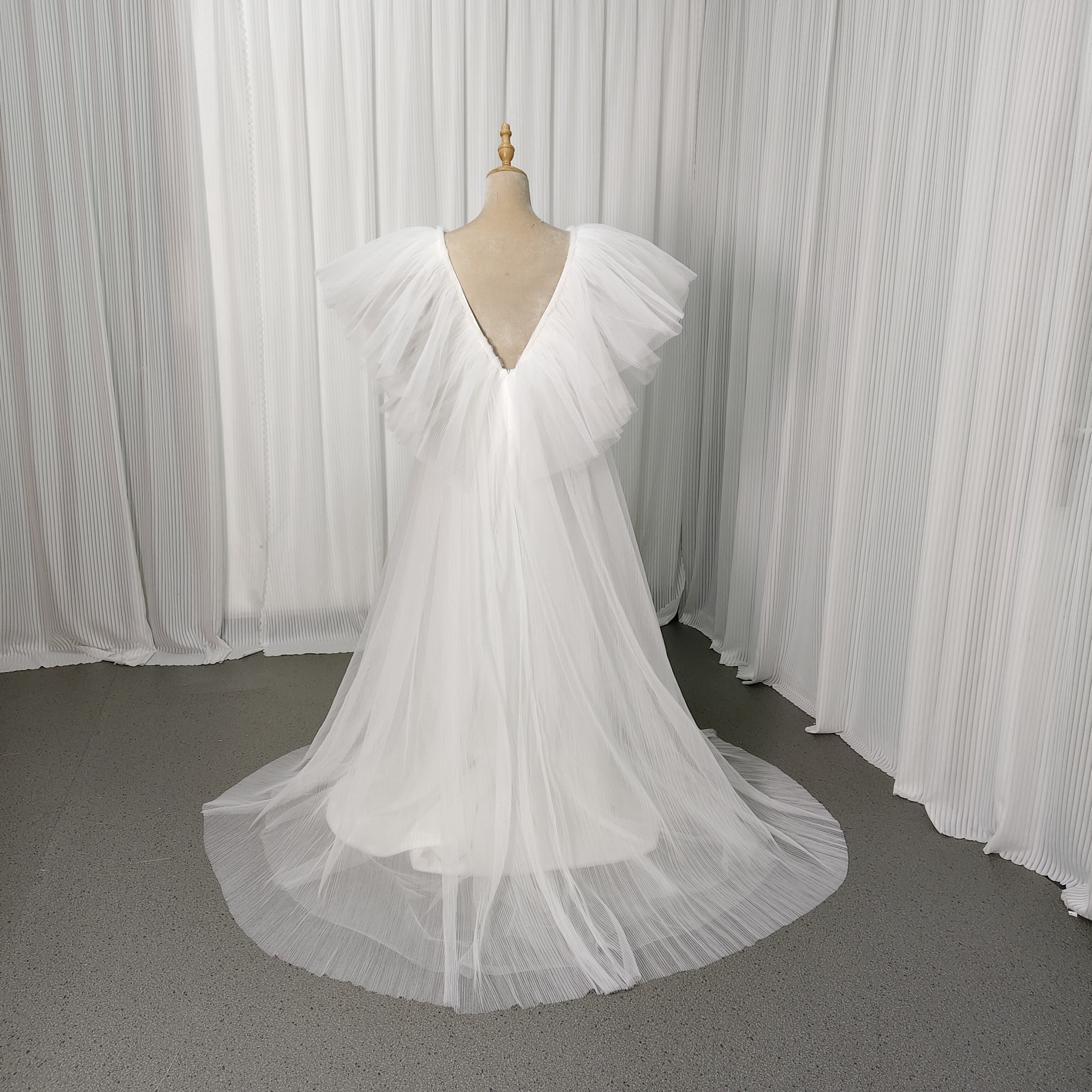美品!ウエディングドレス Vネック ソフトチュール /短トレーン 結婚式/披露宴