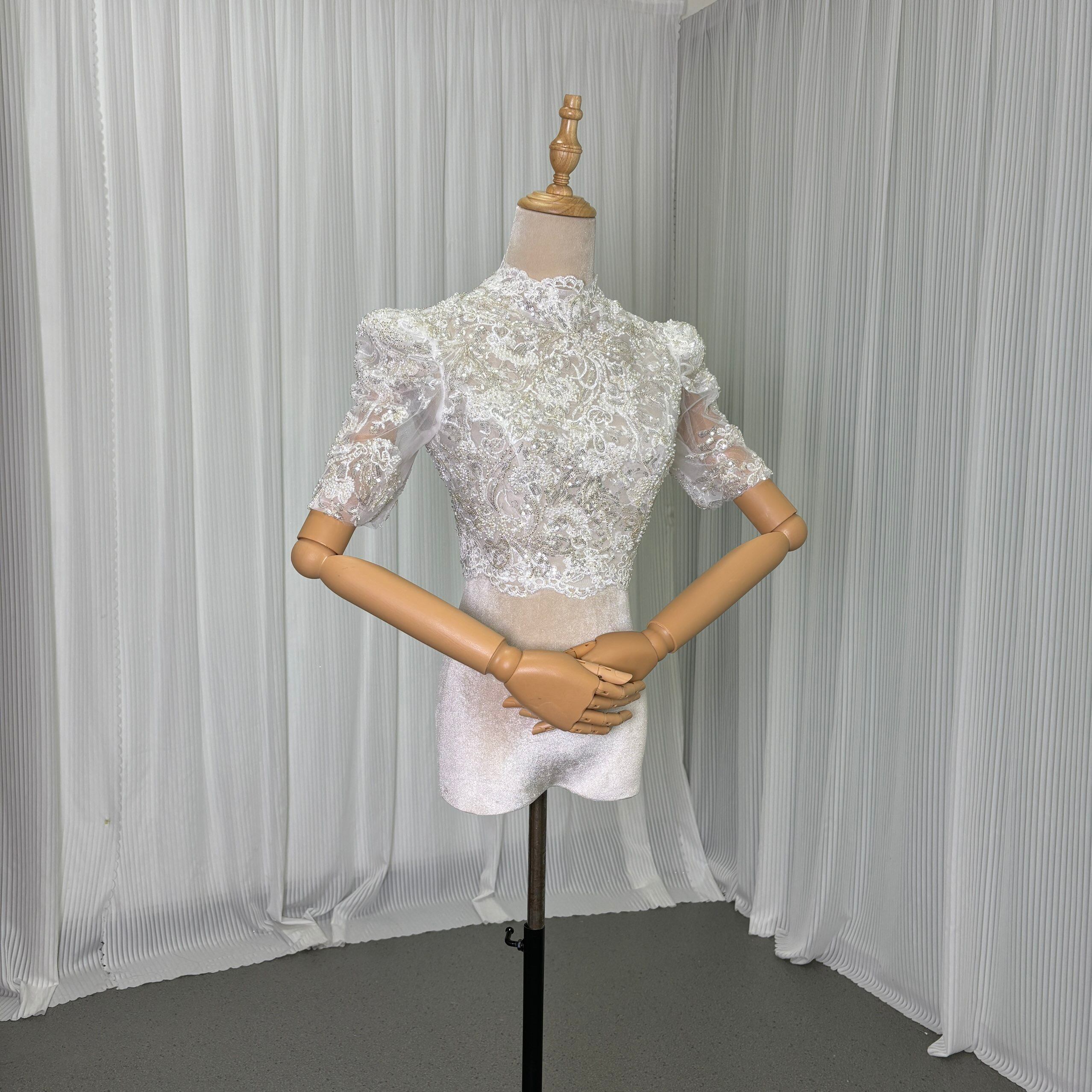 送料無料!抜群のおしゃれ見えボレロ キラキラスパンコール 短袖 上品レース トップス:ウエディングドレス