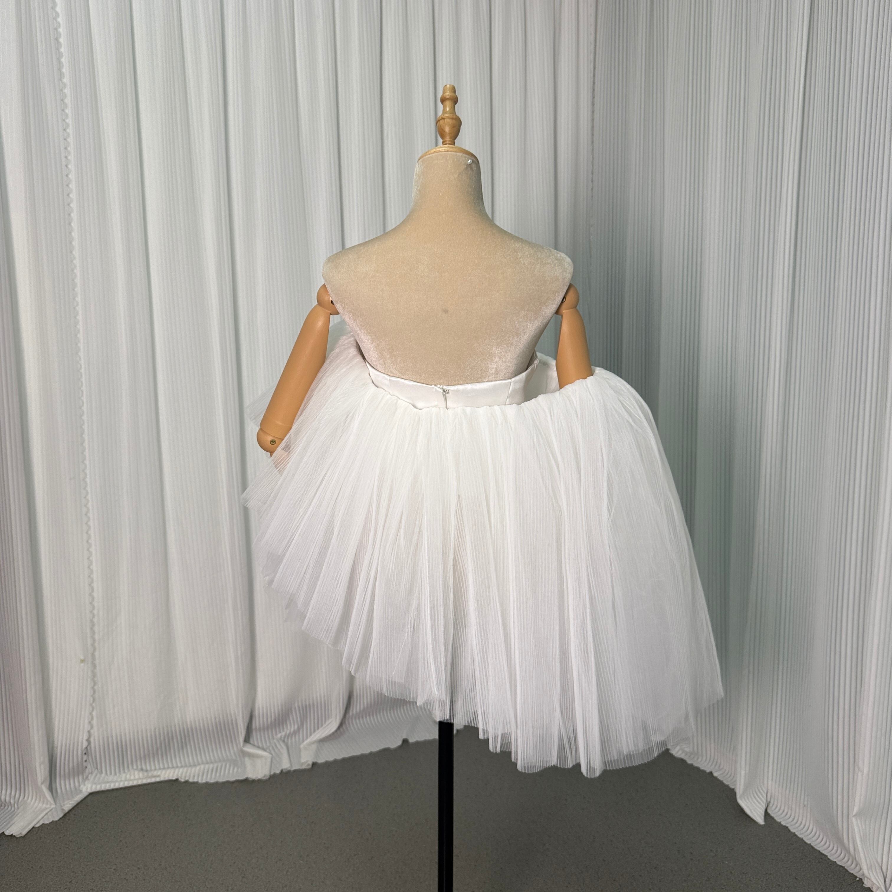 送料無料!オフホワイト 光沢サテン ベアトップ トップス ソフトチュールアシンメトリートップス