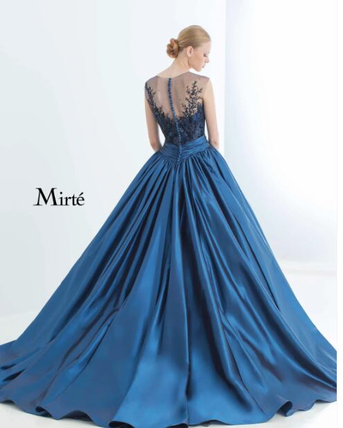 上品! ブルー 上品レース マット生地 カラードレス プリンセスライン 2次会 前撮り 花嫁 挙式